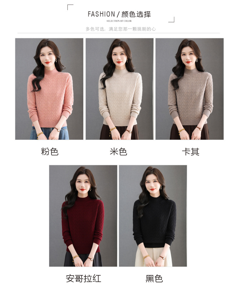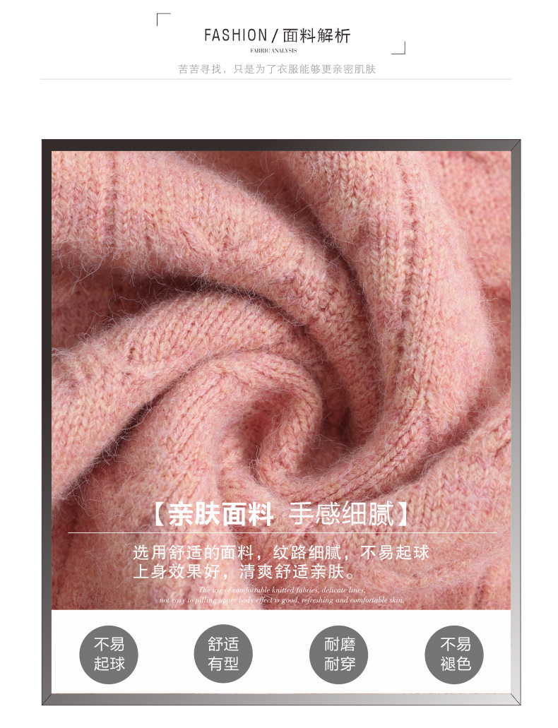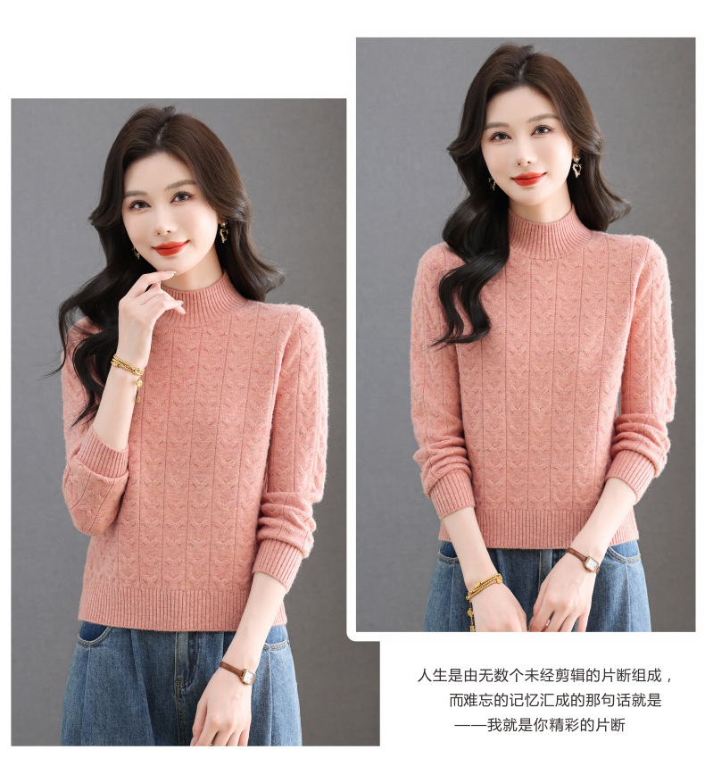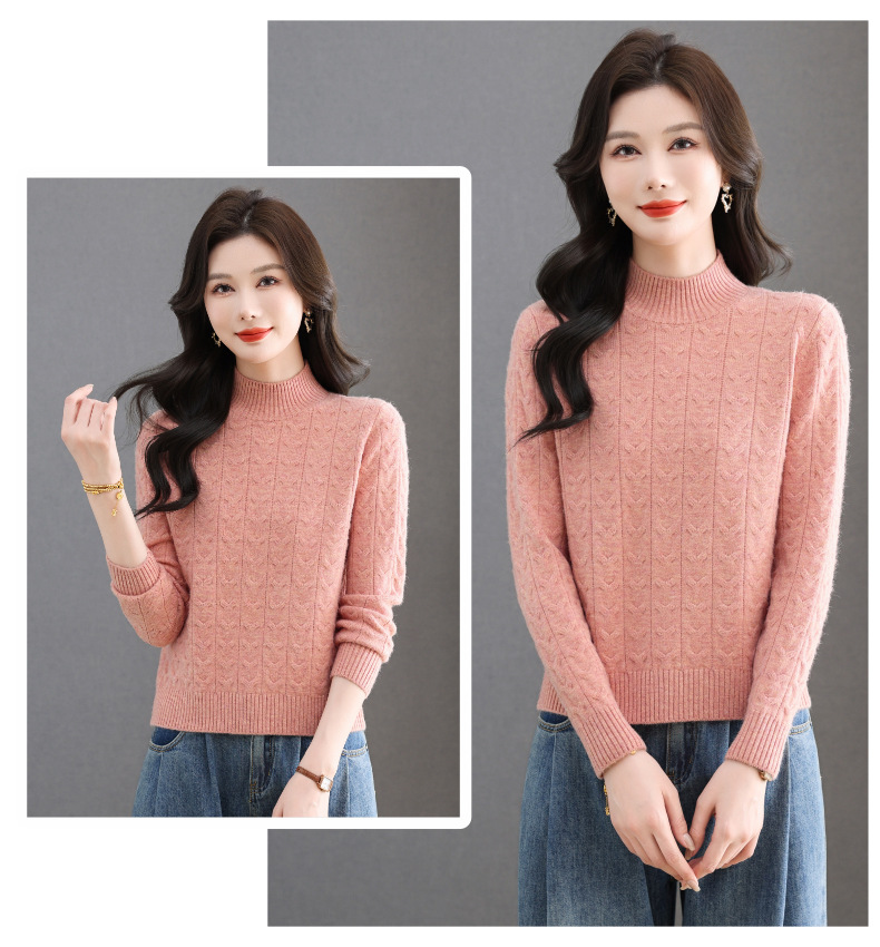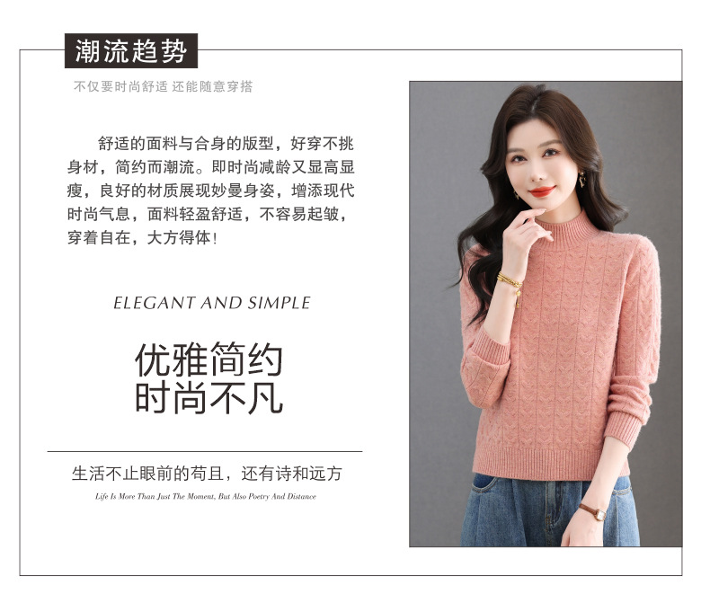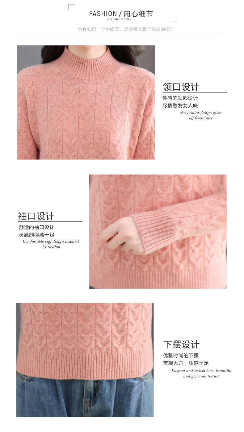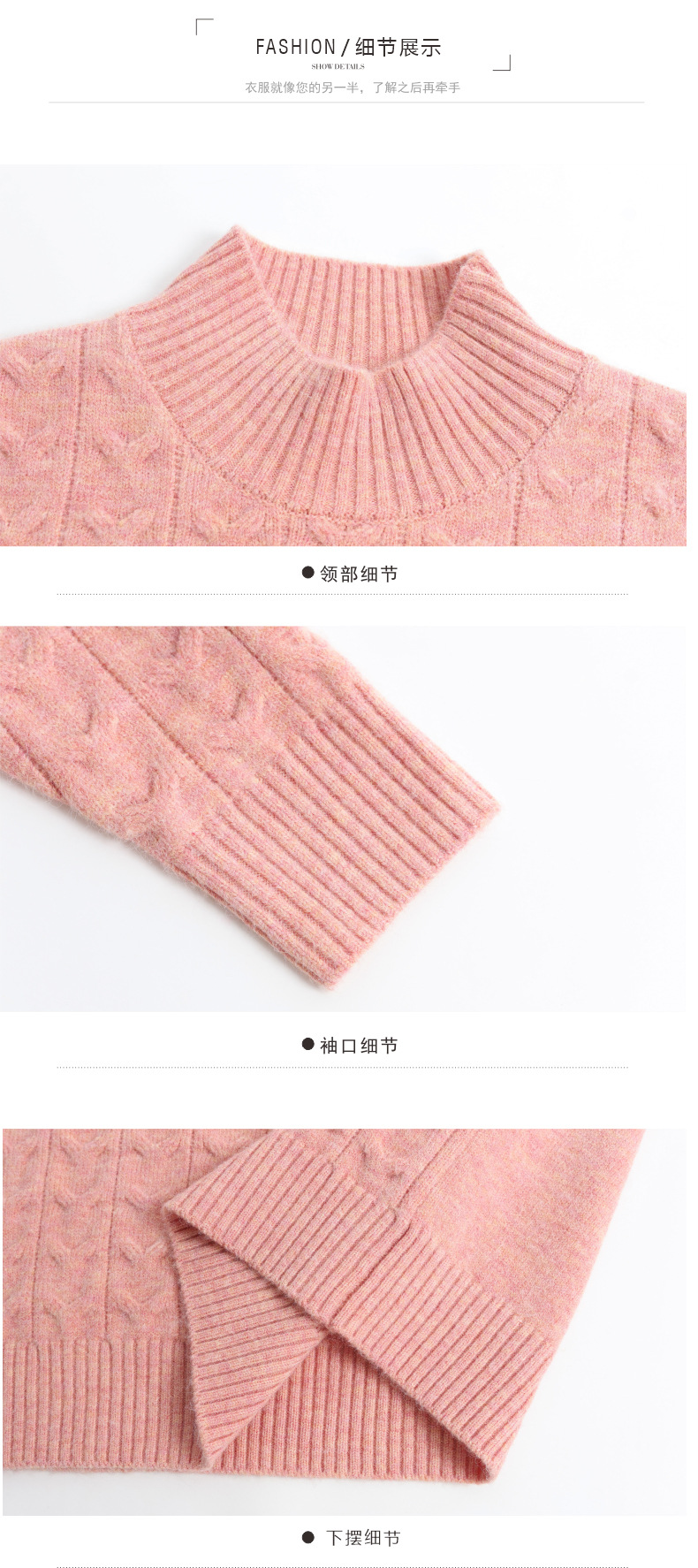 CC半高领套头毛衣女秋冬季厚款粉色麻花针织衫宽松百搭短款打底毛衣
