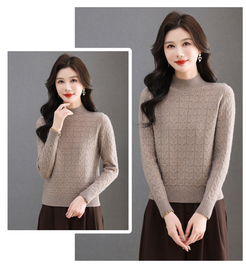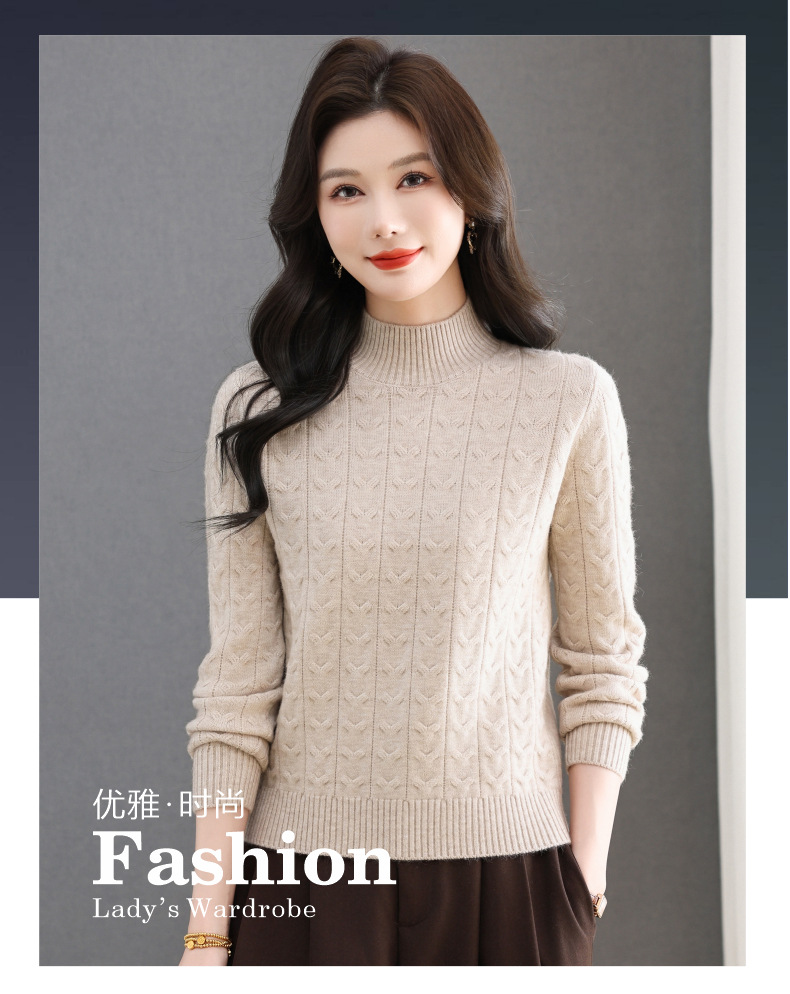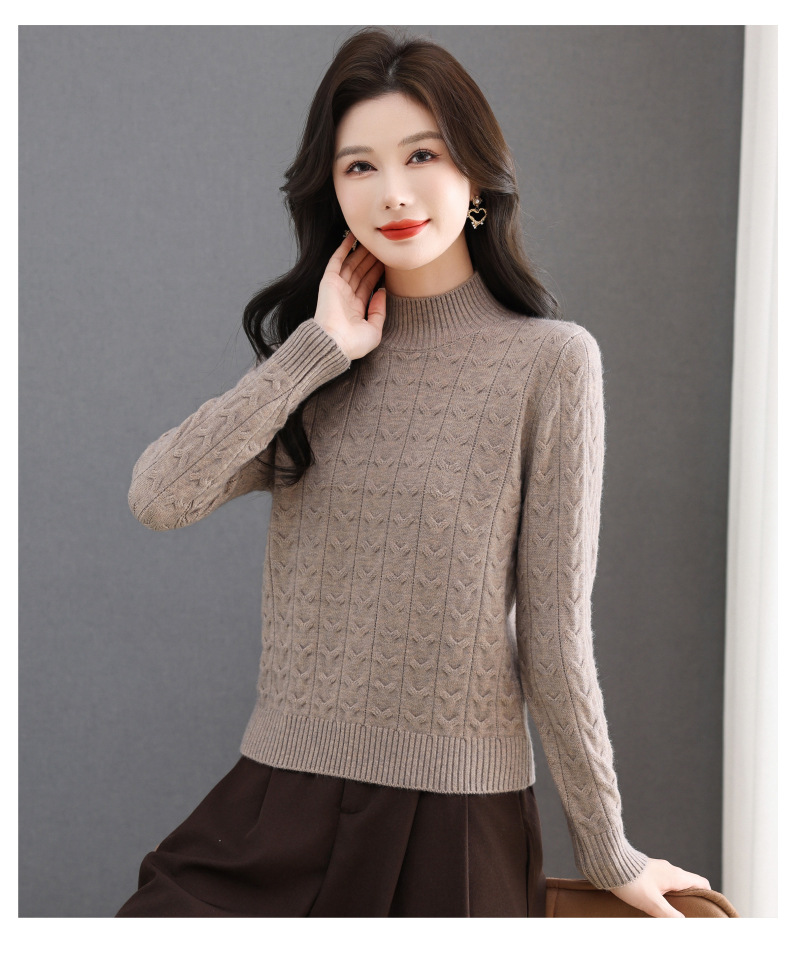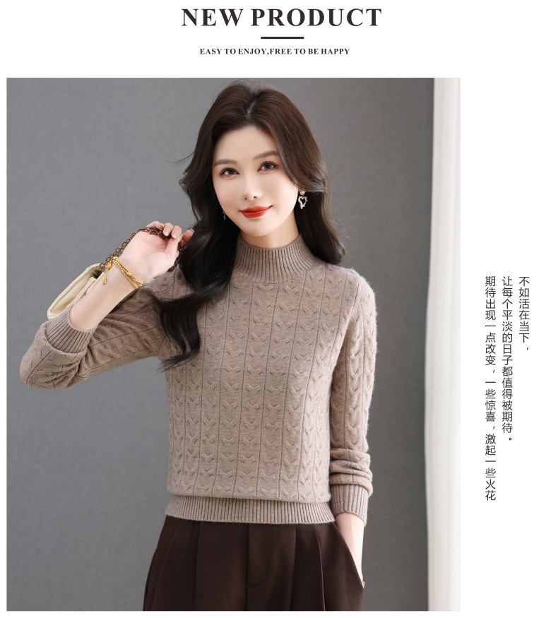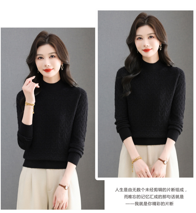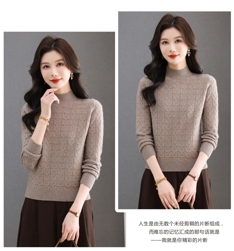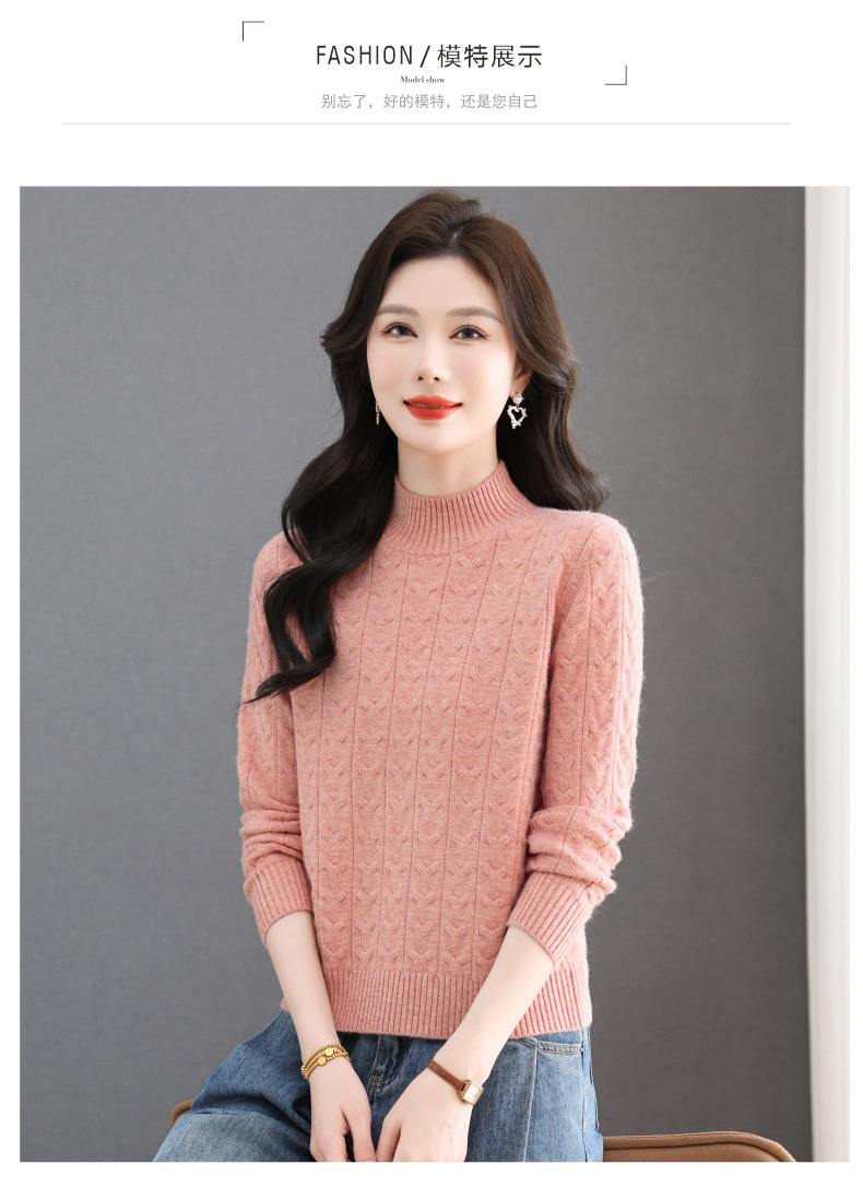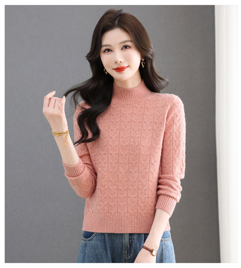 CC半高领套头毛衣女秋冬季厚款粉色麻花针织衫宽松百搭短款打底毛衣