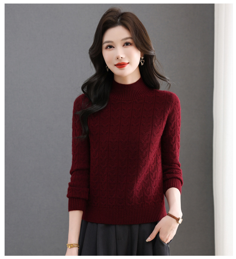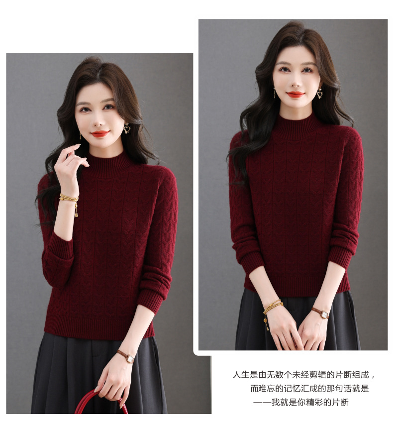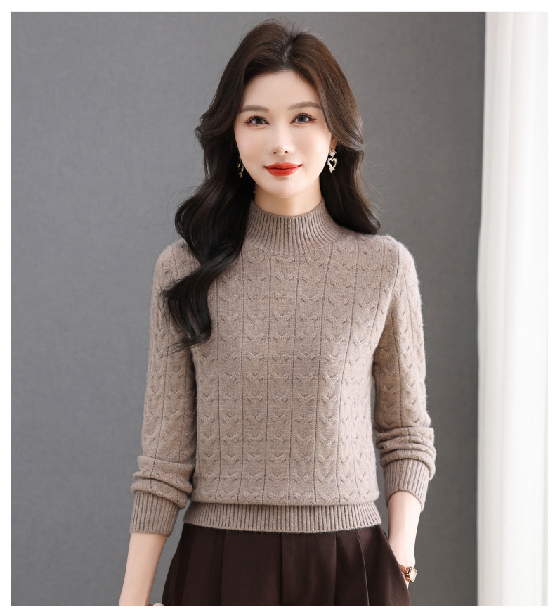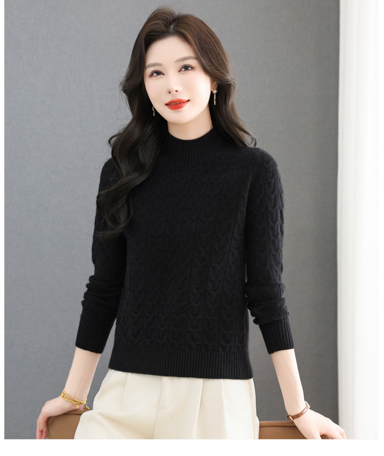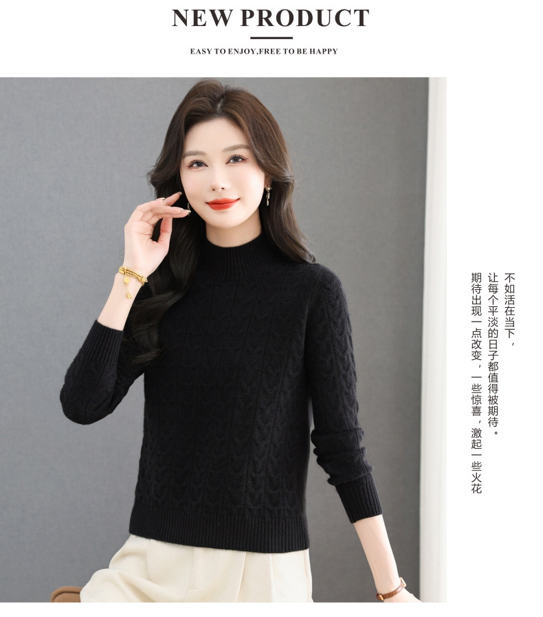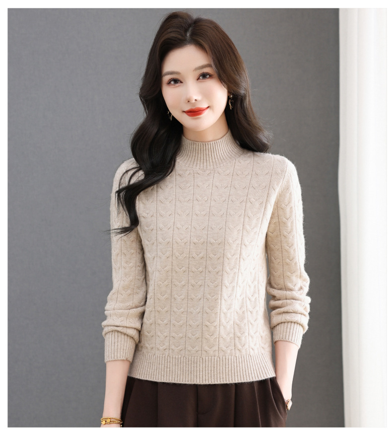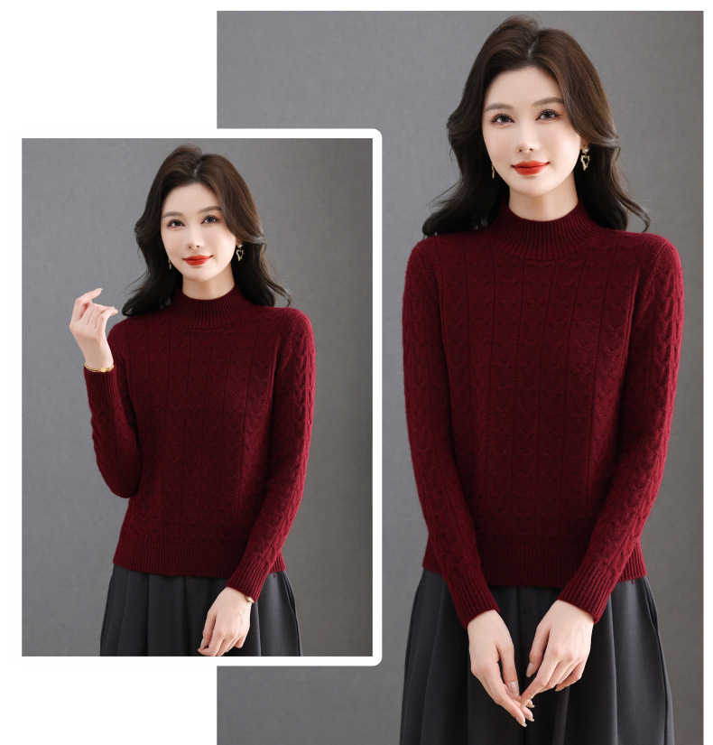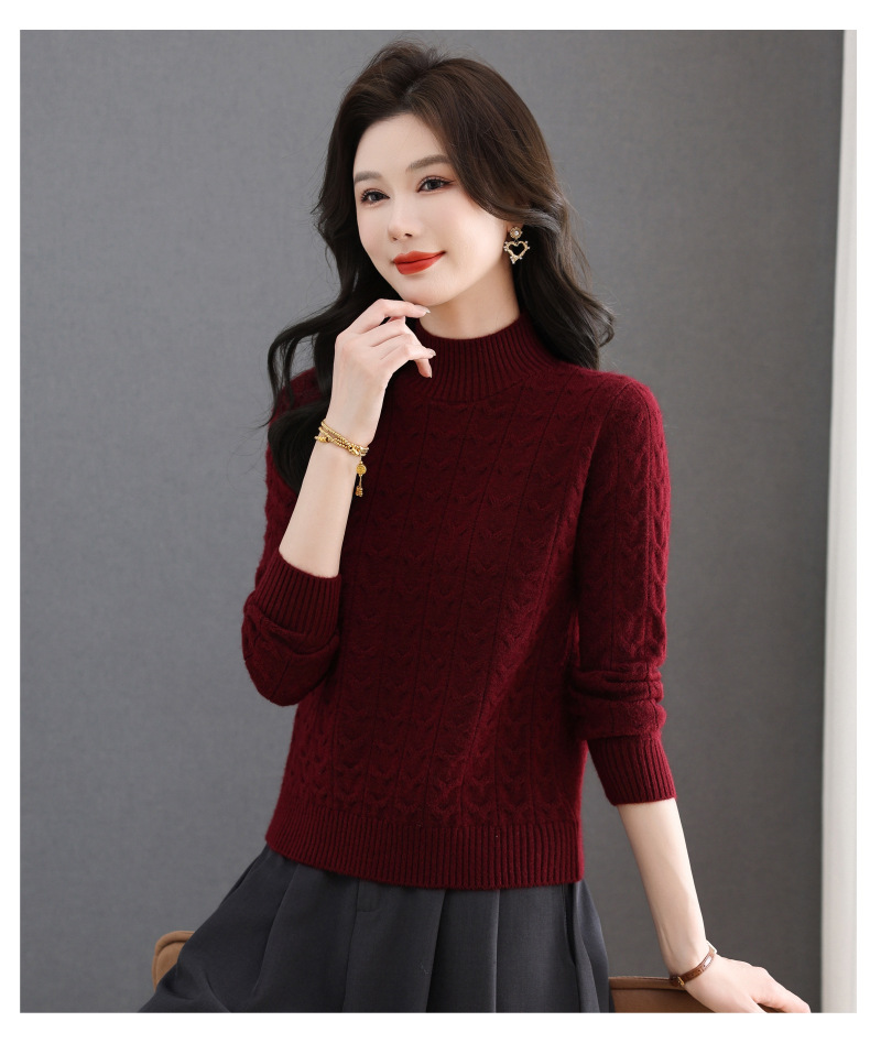 CC半高领套头毛衣女秋冬季厚款粉色麻花针织衫宽松百搭短款打底毛衣