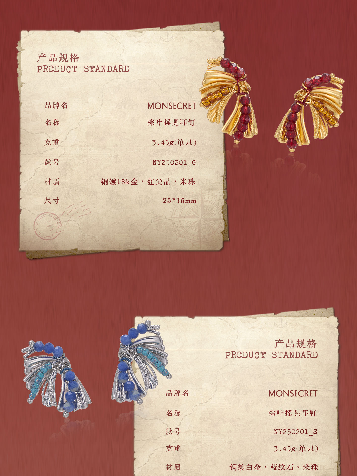 MONSECRET寻迹 棕叶烟花耳钉
