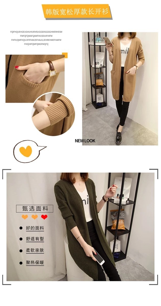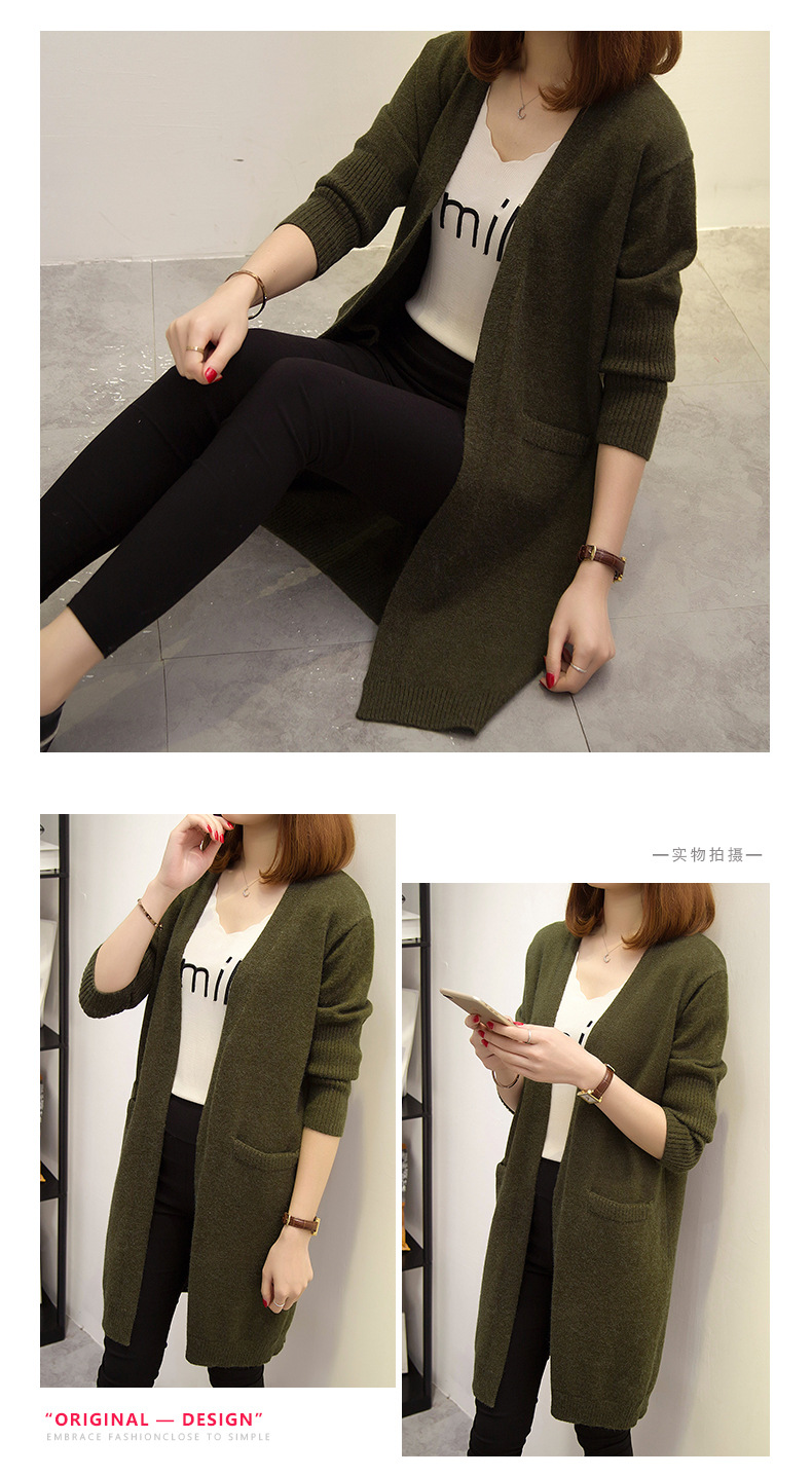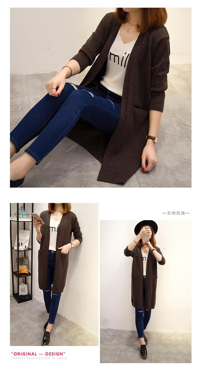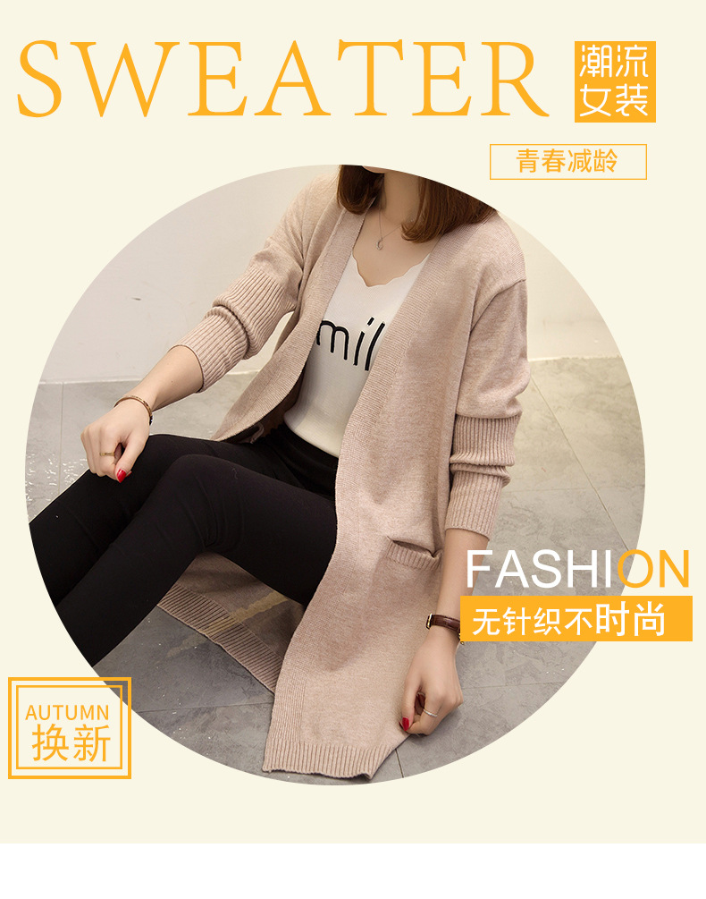 【特价款】LY-AY-007秋季新款韩版毛衣女纯色宽松口袋针织开衫