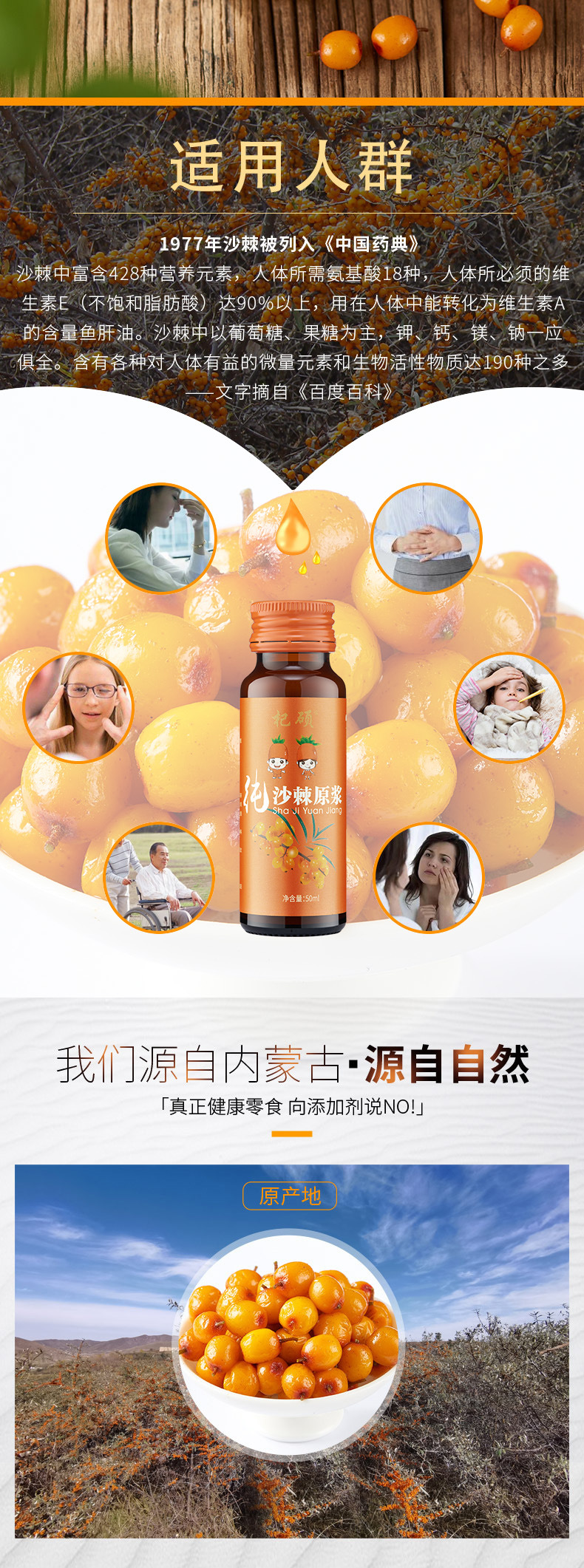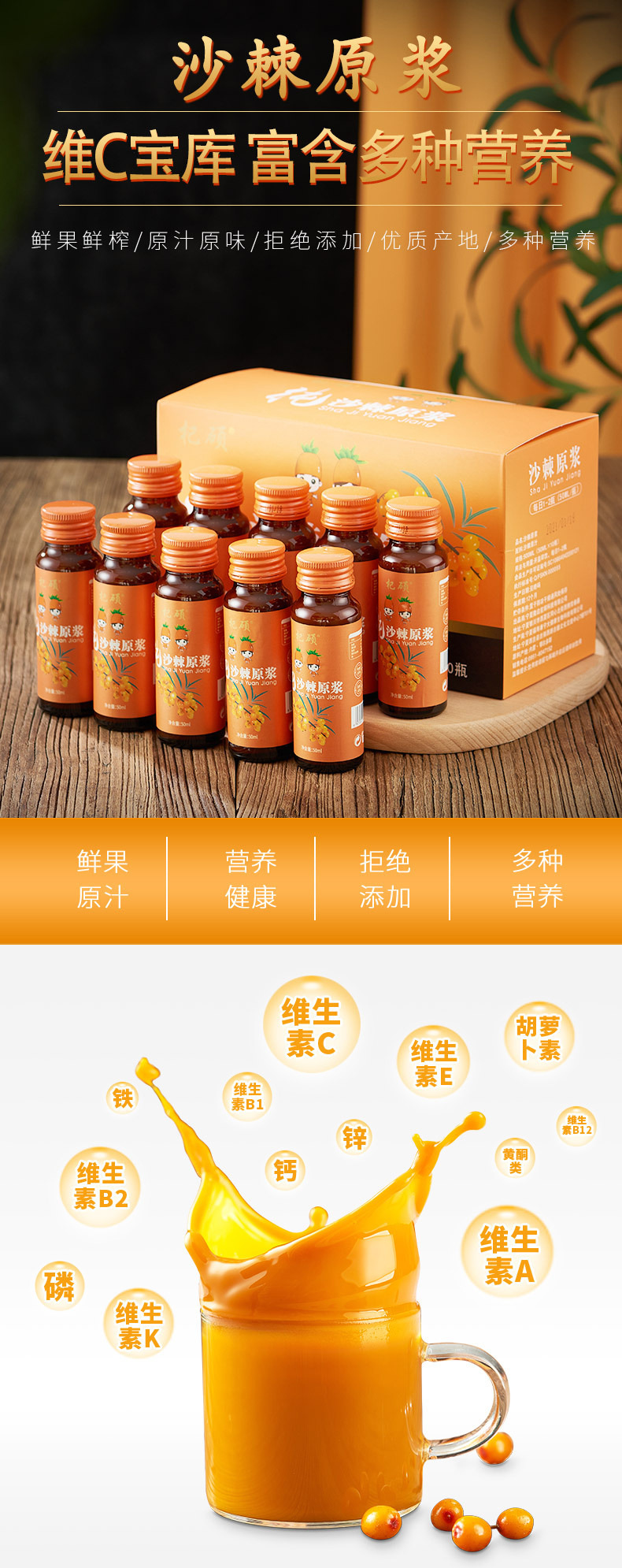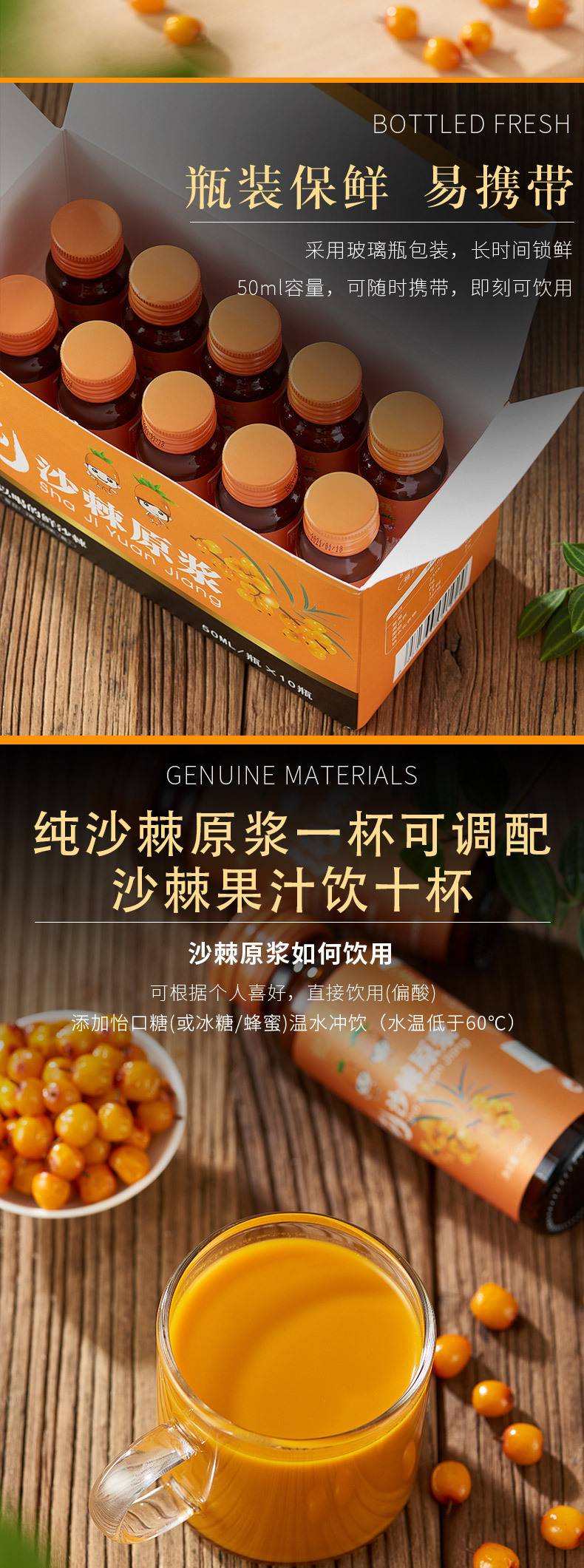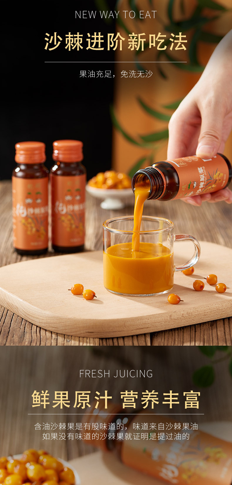 内蒙鲜沙棘果原浆 沙棘鲜果原液 500ml/盒(10支装)