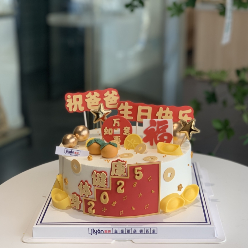 身体健康,万事如意,翻糖刻画,非常喜庆的祝寿蛋糕(长辈款)