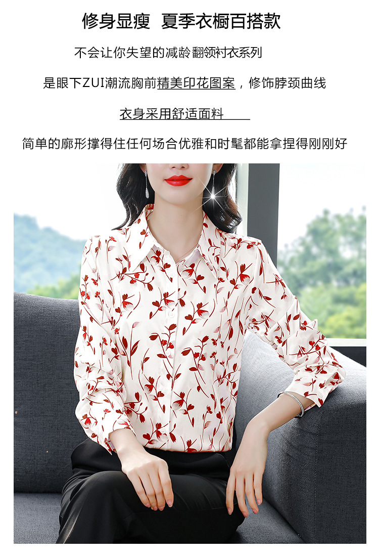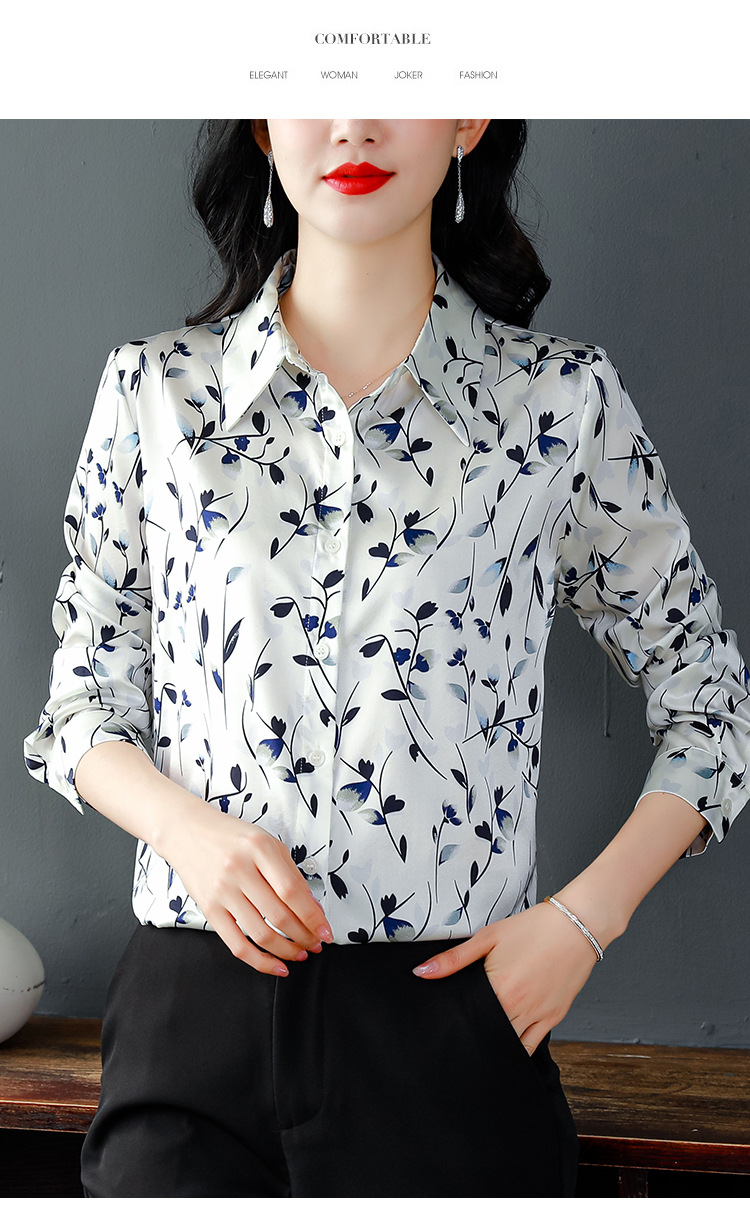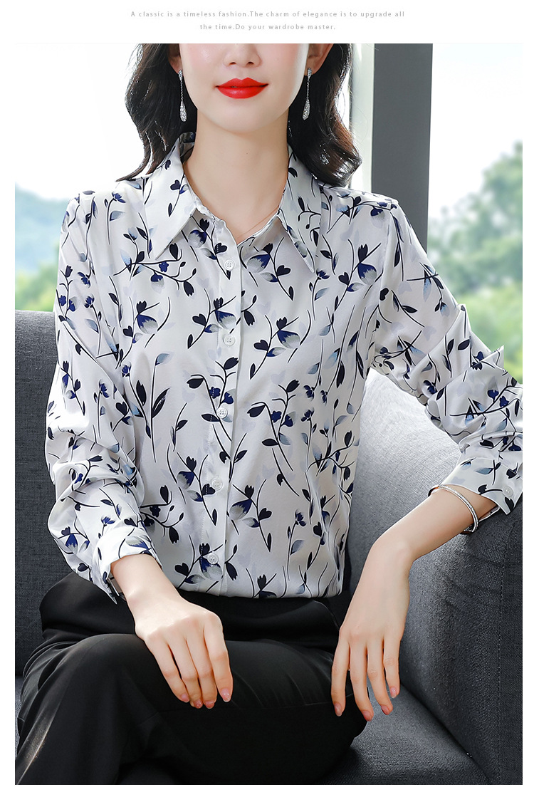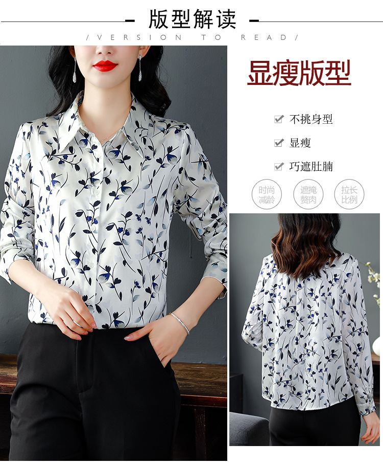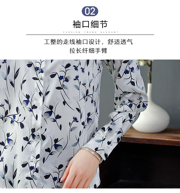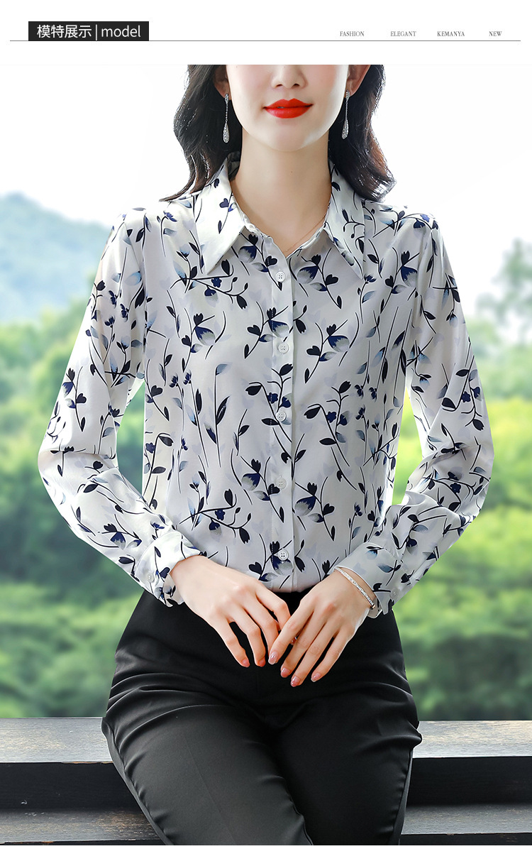 KQLA83N6938印花长袖时尚通勤仿真丝OL衬衫