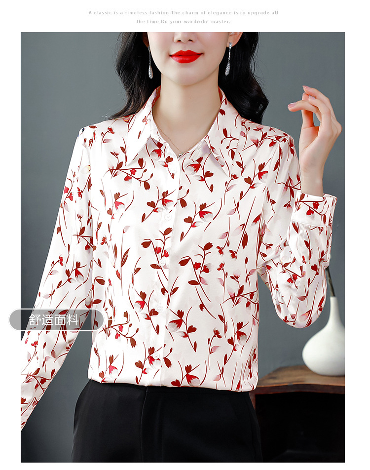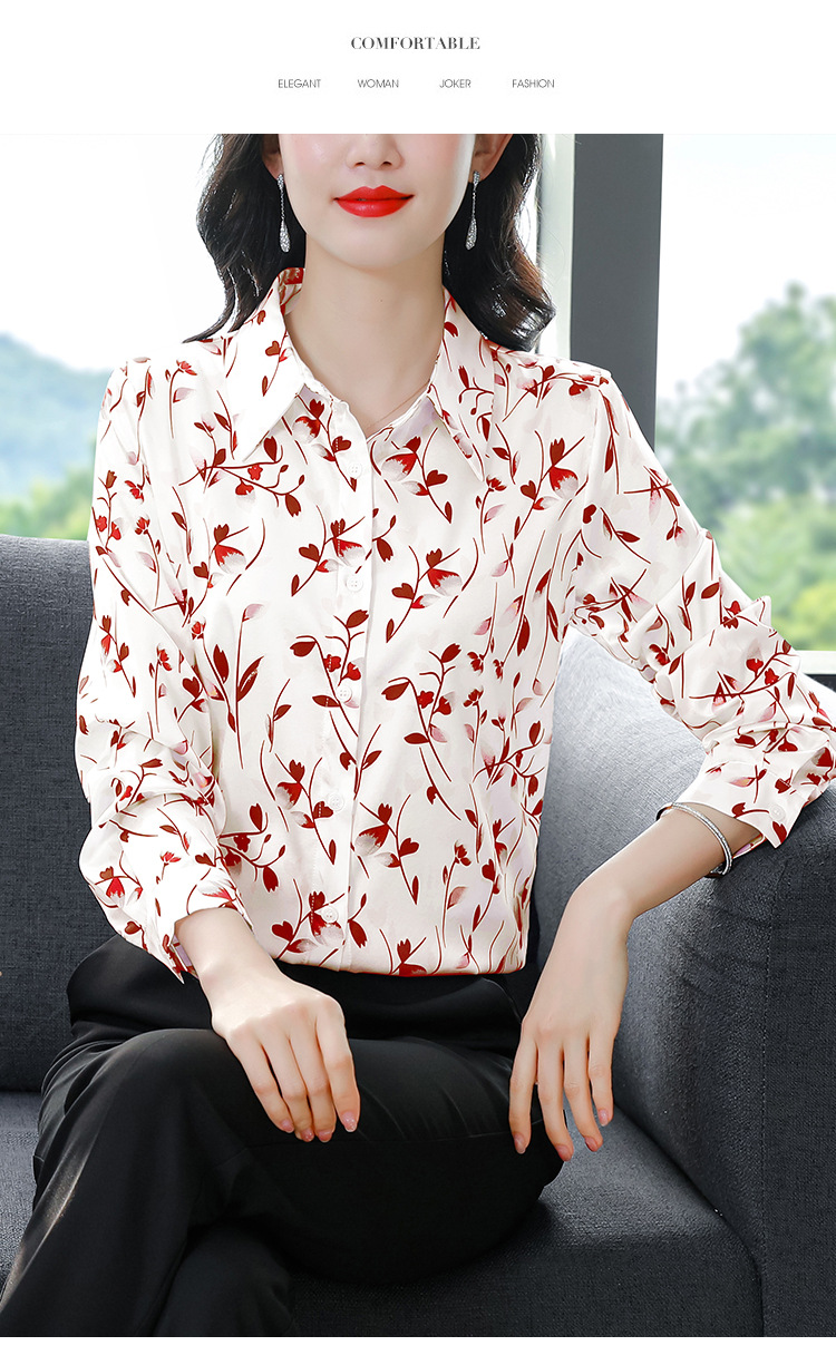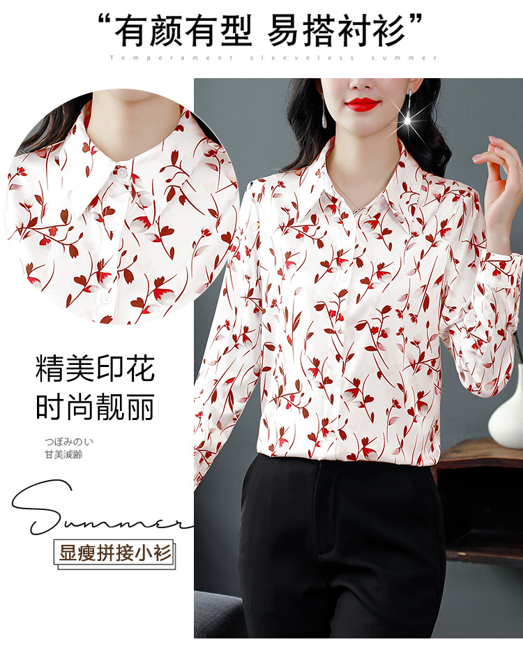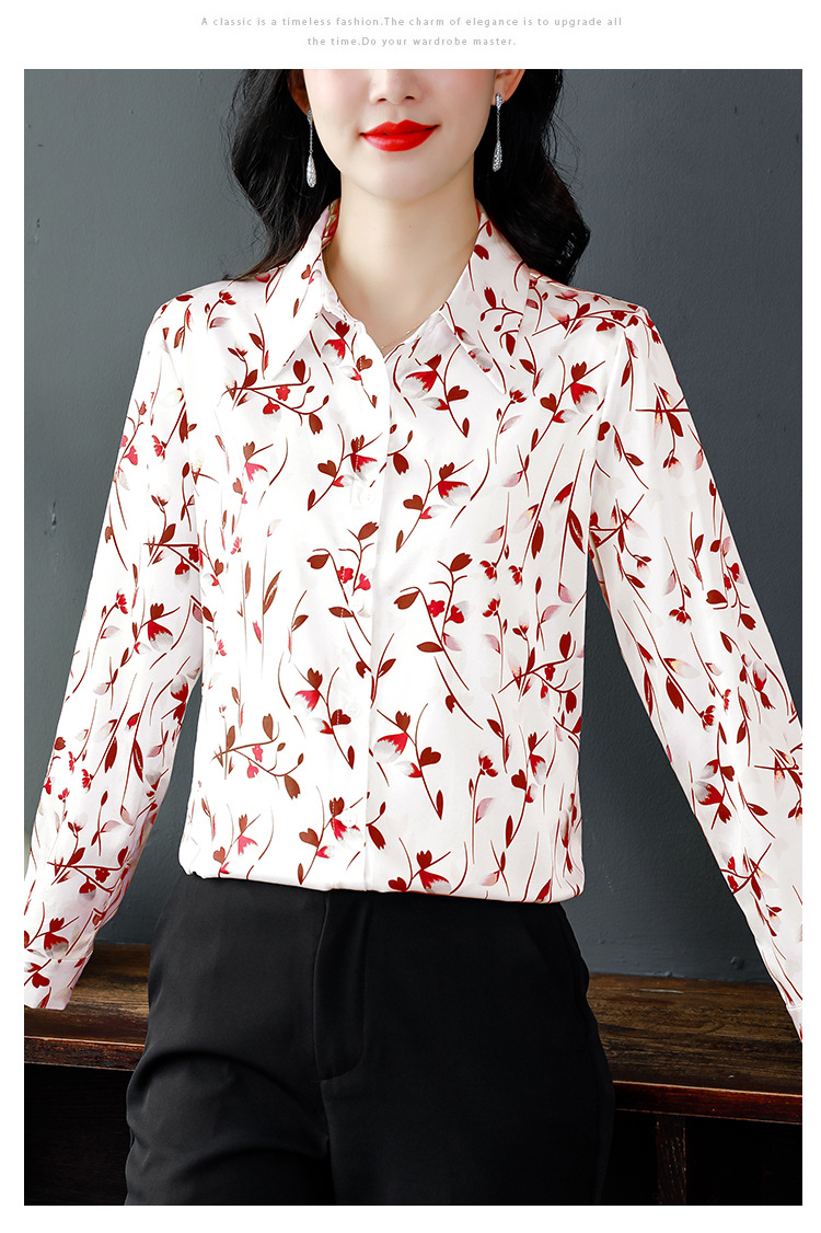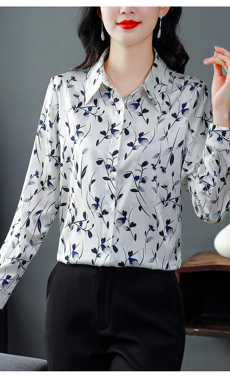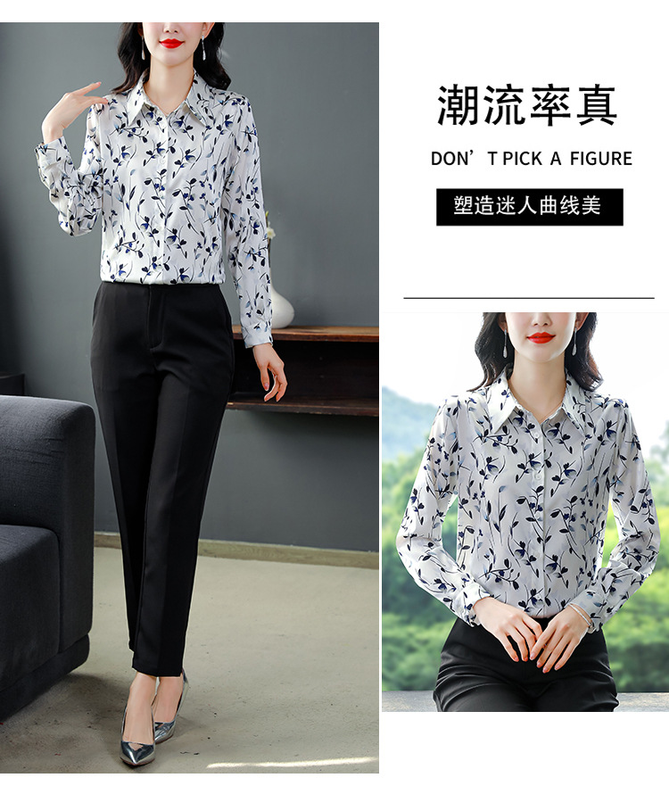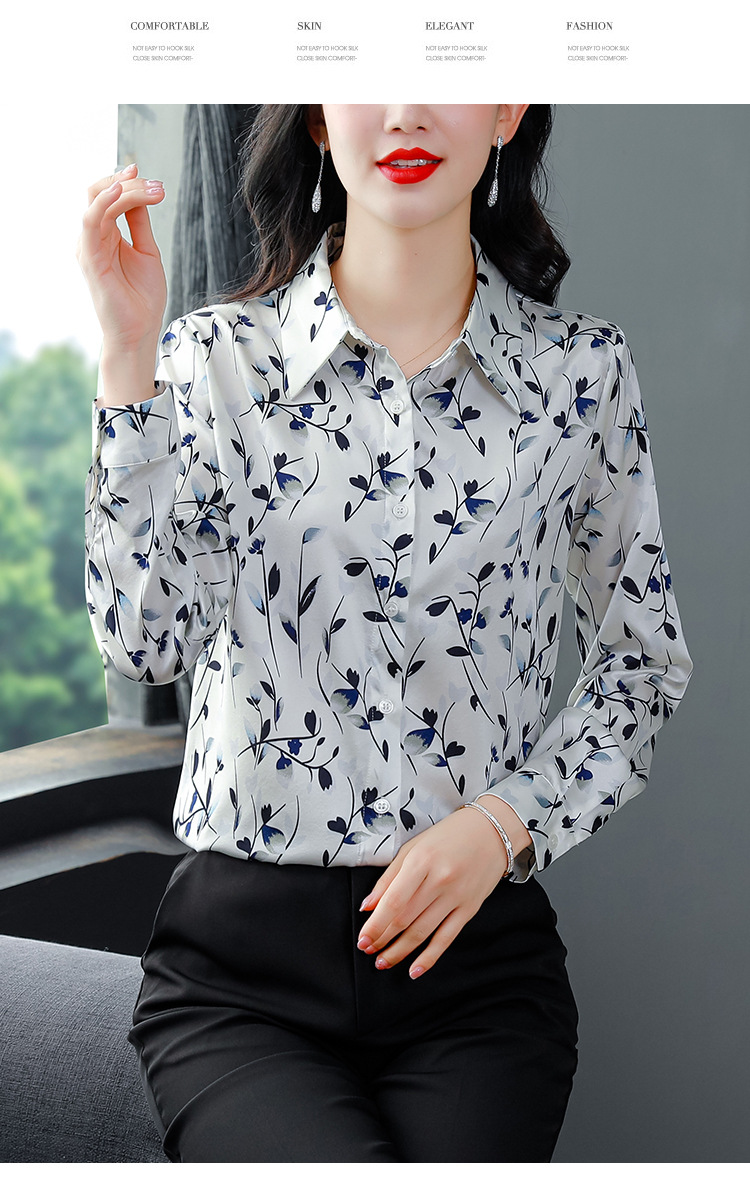 KQLA83N6938印花长袖时尚通勤仿真丝OL衬衫