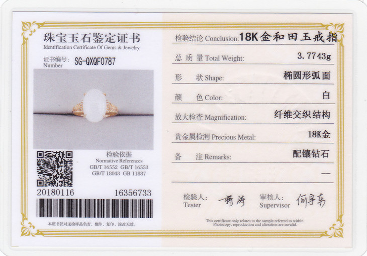 18K玫瑰金和田玉(白玉)镶钻戒指