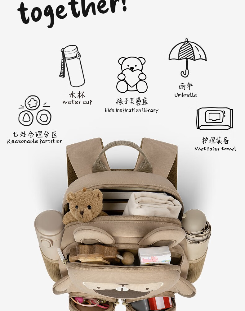 中国zoyzoii 茁伊乖巧龅牙兔B38 儿童书包背包可爱轻便透气舒适双肩包