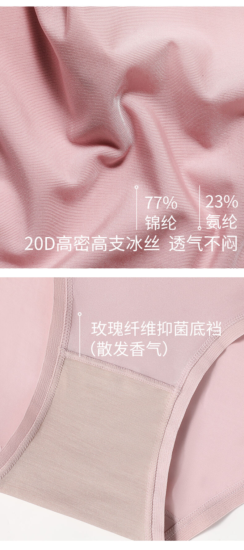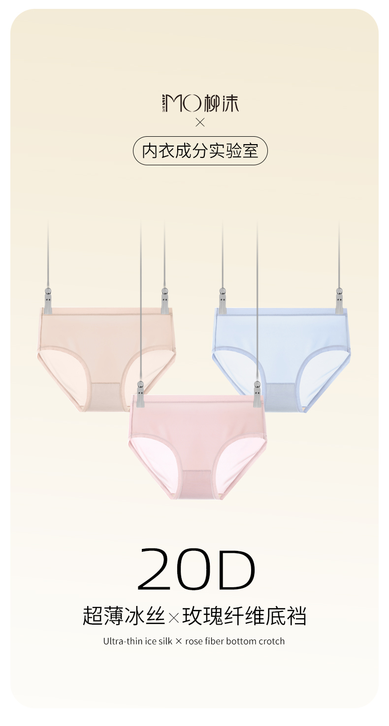 【LIUMO柳沫】20D超细冰丝女士内裤玫瑰纤维底裆中腰女内采用20D超细锦纶冰丝面料制作,手感超柔舒适,不易勾丝