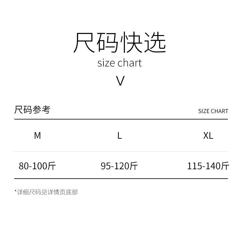 M 码(80-100斤) L码(95-120斤) XL码(130-155斤)