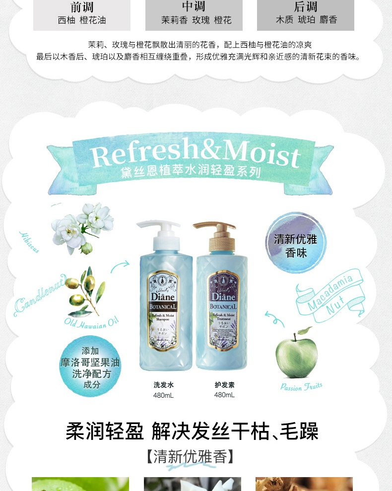 【黛丝恩】植萃洗发水 清爽柔顺型 480ml
