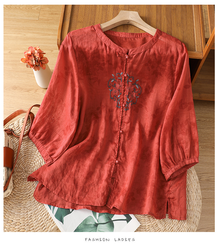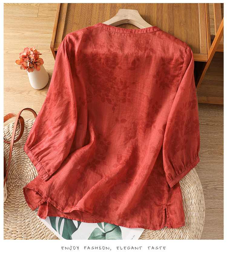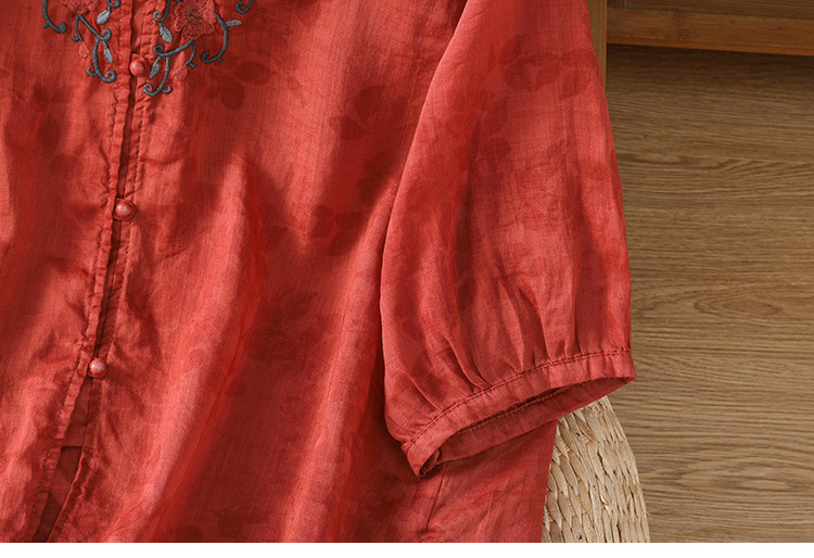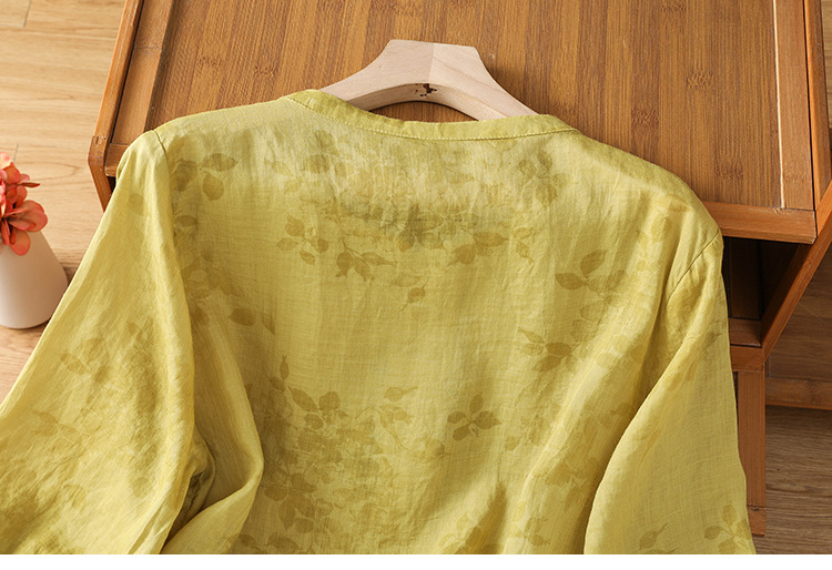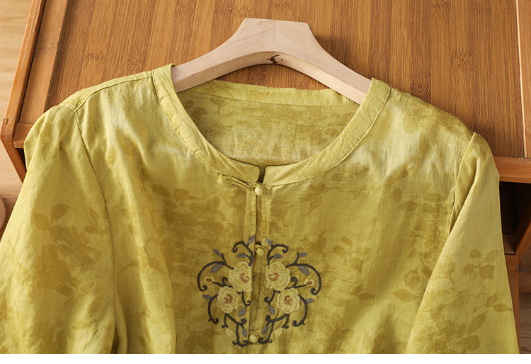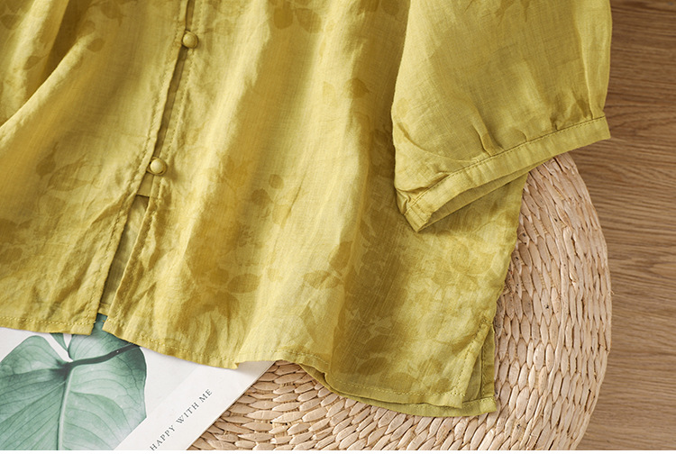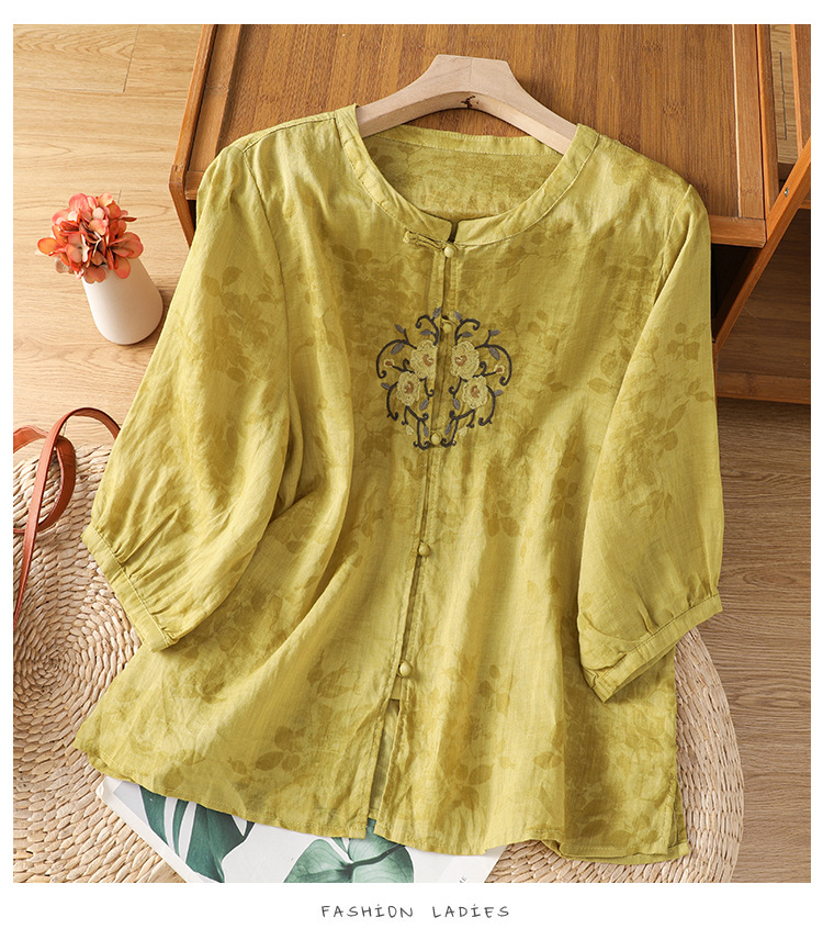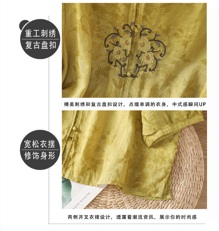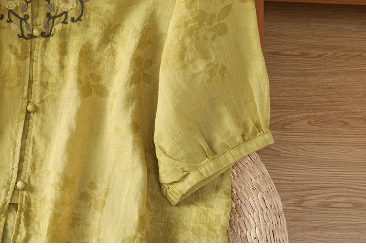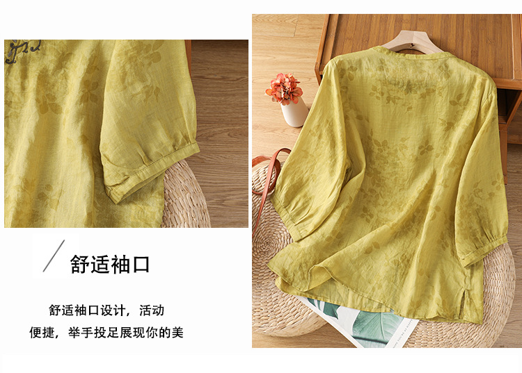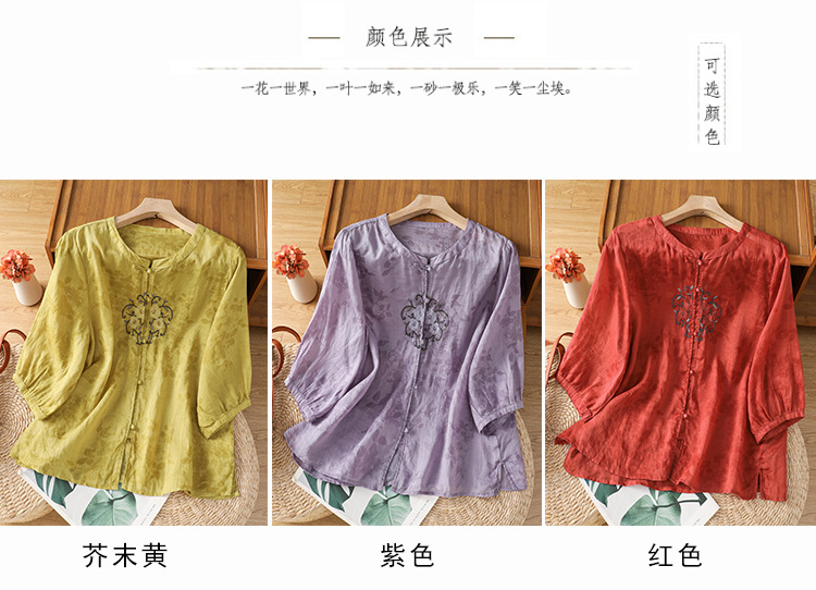 GYH B106-891休闲简约复古刺绣民族风不透肉暗纹印花中袖气质衬衣