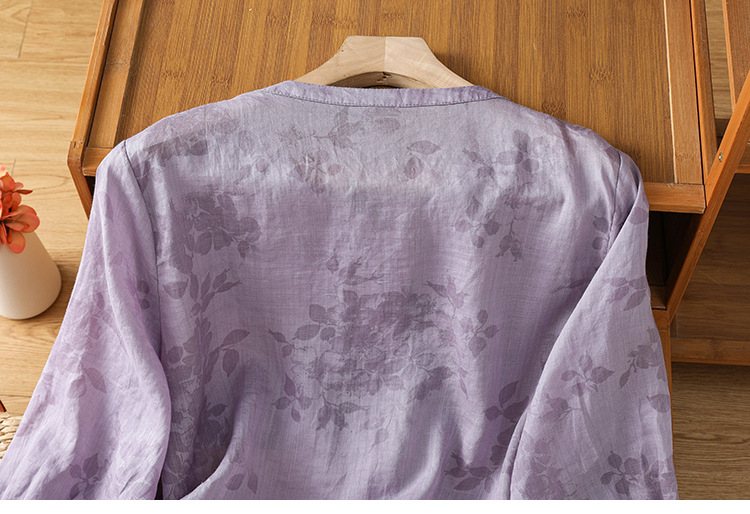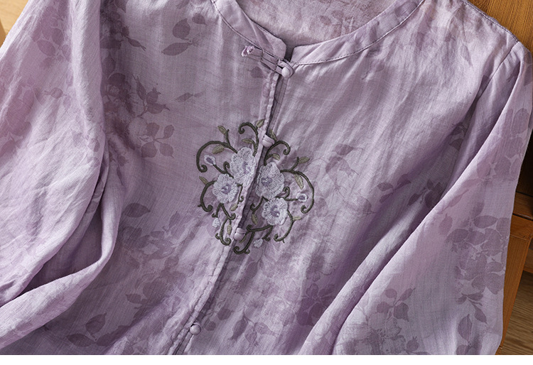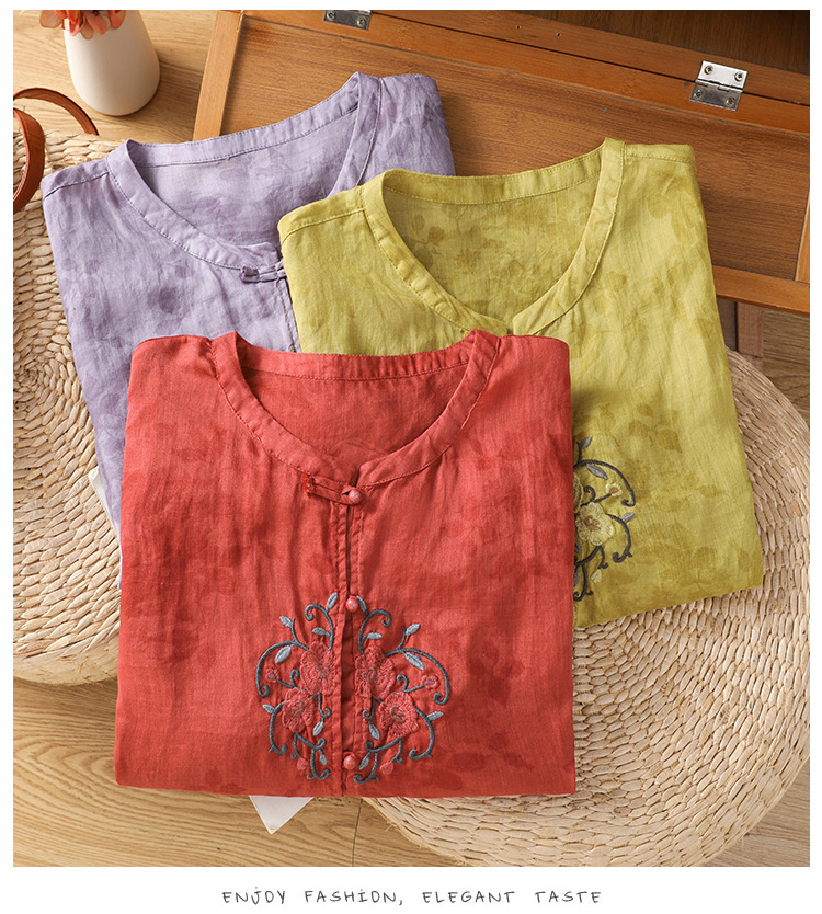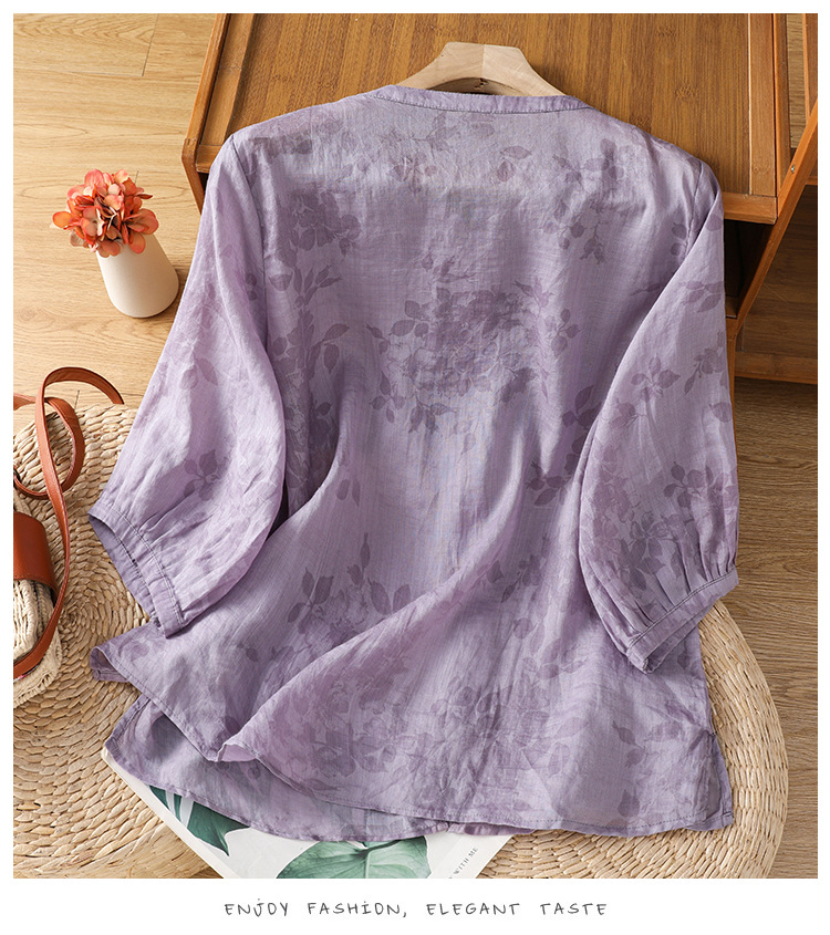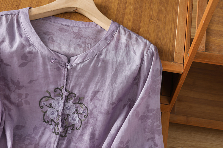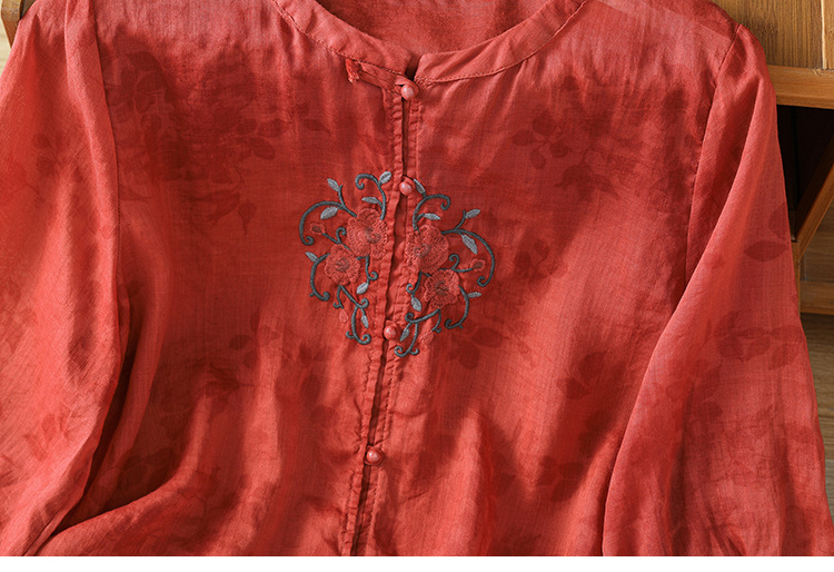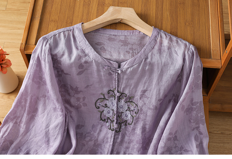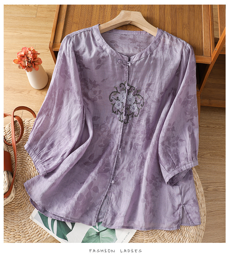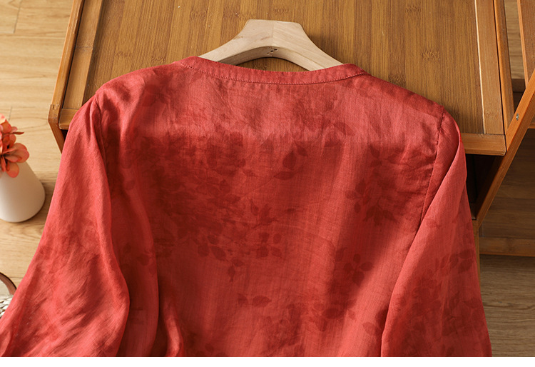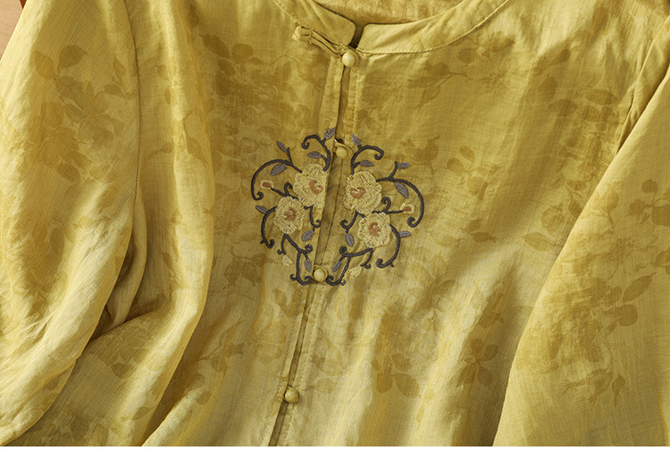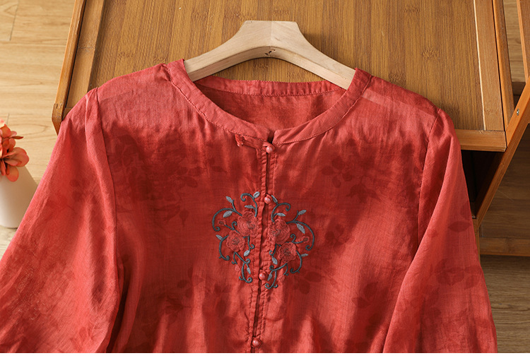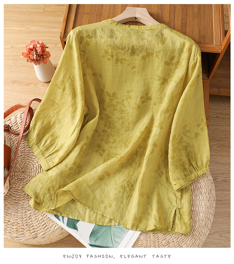 GYH B106-891休闲简约复古刺绣民族风不透肉暗纹印花中袖气质衬衣