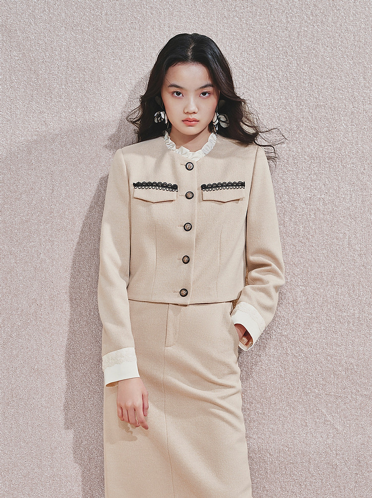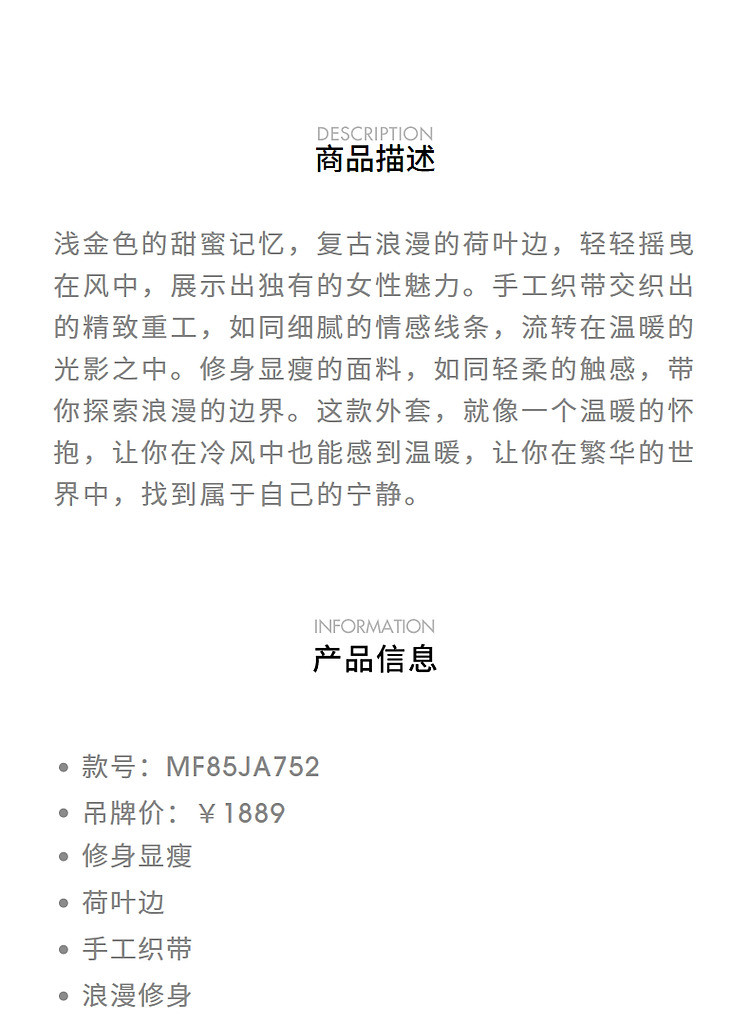 小香风钉扣短外套晚会穿搭2024秋冬女MF85JA752M40