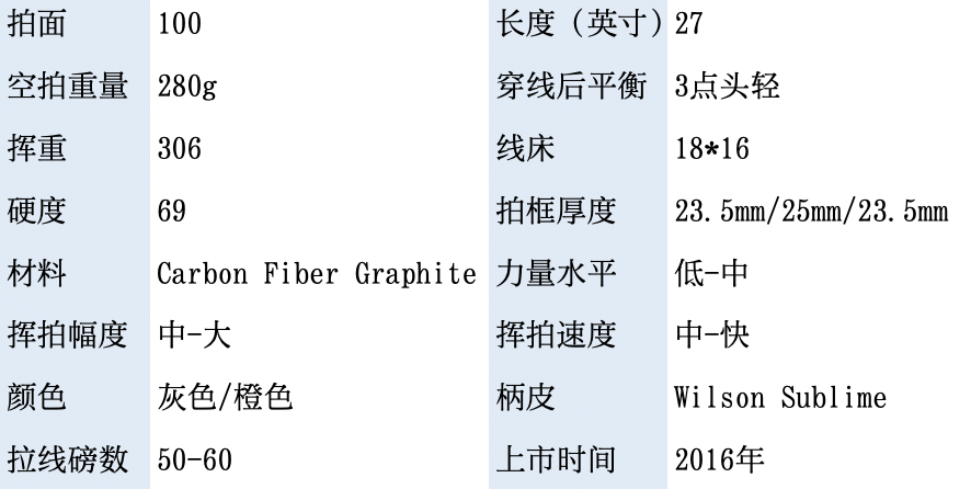 18*16线床,280克空拍重量,是一款能给你带出色旋转的网球拍。