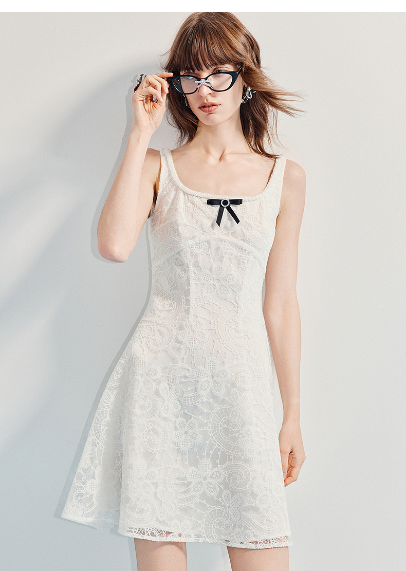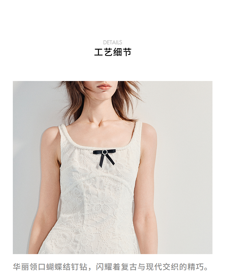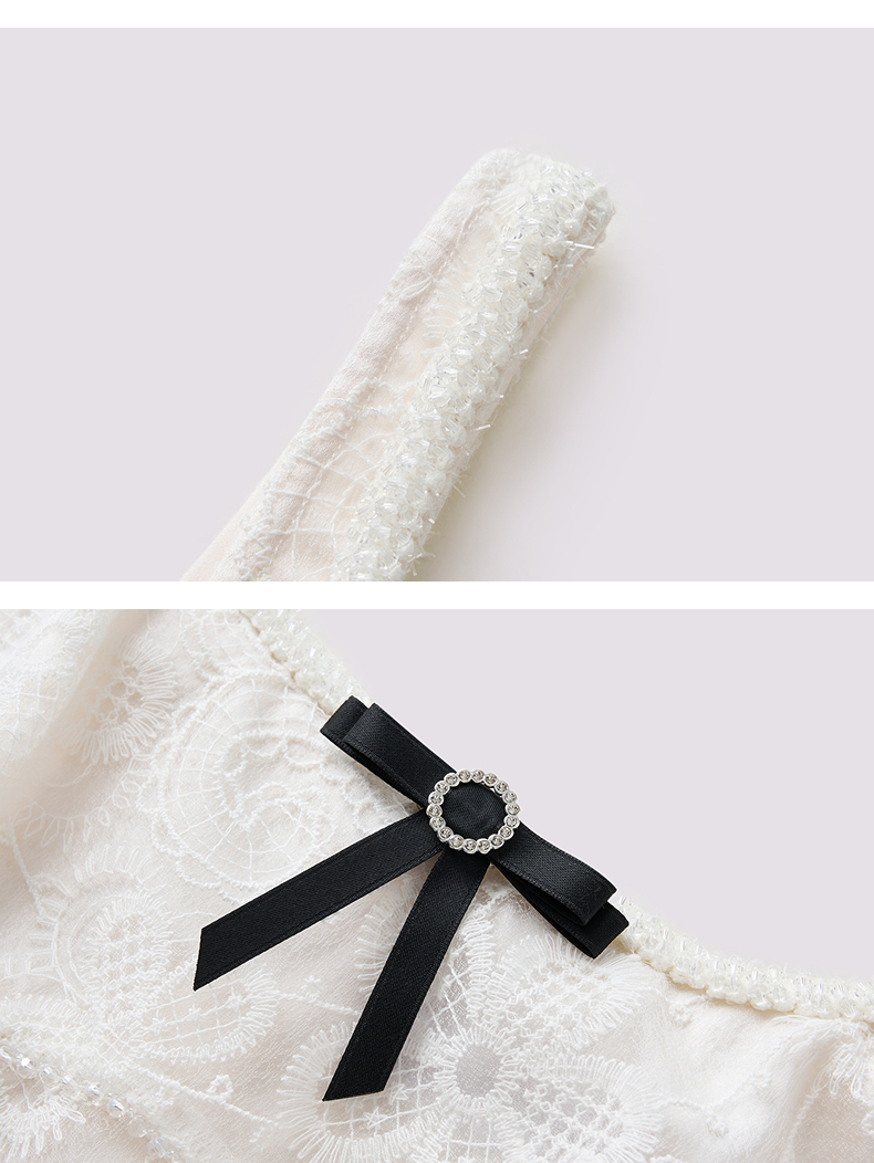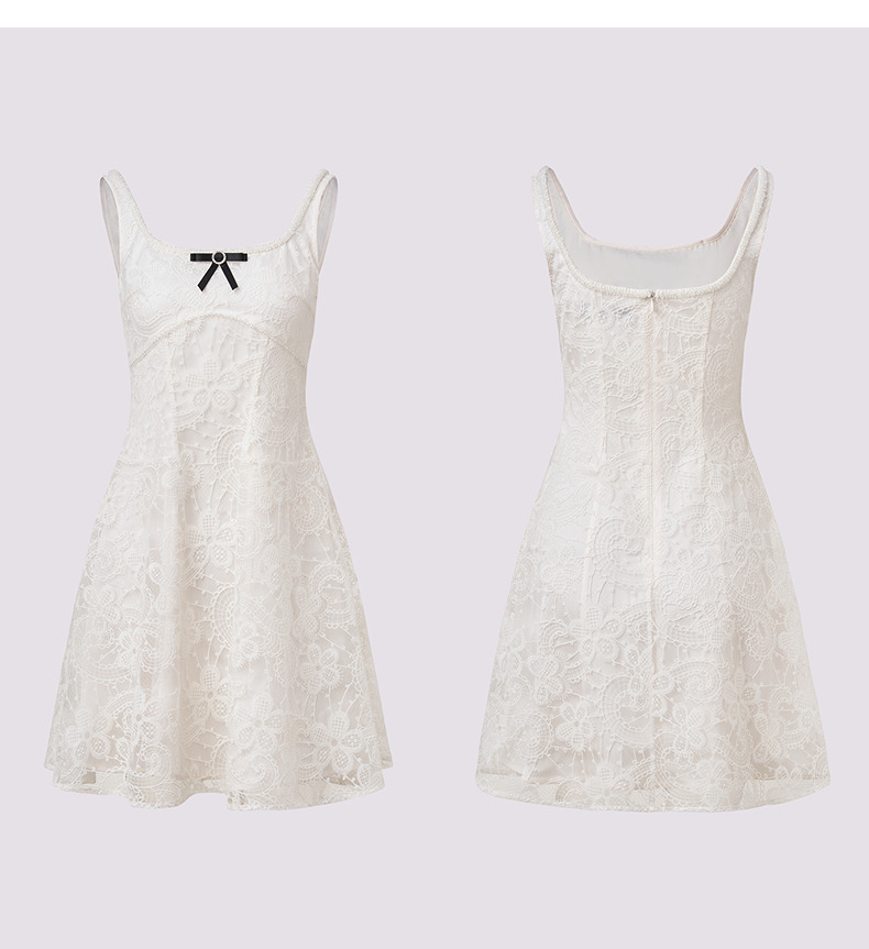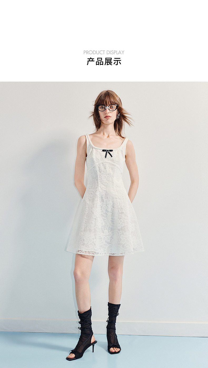 MAXRIENY2025年夏季新款蝴蝶结千金小香风花纱白色连衣裙(货号:MF86DR252)