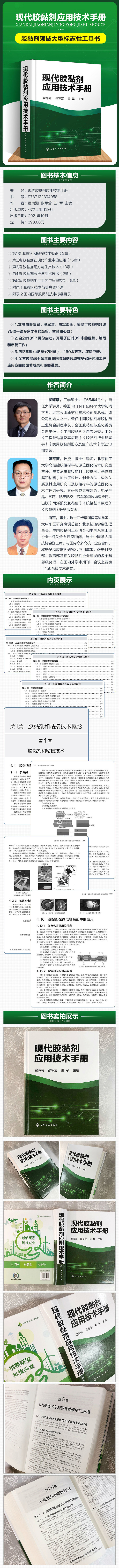 《现代胶黏剂应用技术手册》共5篇45章。第1篇 胶黏剂和粘接技术概论,概括介绍胶黏剂和粘接技术基本知识,胶黏剂的组成、分类、应用领域,胶黏剂的固化机理和粘接机理,影响胶黏剂成功应用的因素以及国内外胶黏剂的历史、现状与发展趋势。第2篇 胶黏剂在现代产业中的应用,详细介绍了胶黏剂在电子电器、汽车制造与维修、轨道交通车辆、船舶制造、新能源装备、医疗与美容、文化体育用品、土木与建筑、飞机制造、航天工业、木工家具、软包装及纸制品、纺织与服装、制鞋与箱包、机械设备制造与维修、农业生产、防伪、文物修复等领域的应用。第3篇 胶黏剂配方与生产技术,详细介绍了反应型环氧树脂胶黏剂、反应型聚氨酯胶黏剂(含密封胶)、有机硅胶黏剂(含密封胶)、硅烷化改性胶黏剂(含密封胶)、第二代丙烯酸酯胶黏剂、α-氰基丙烯酸酯胶黏剂、厌氧型胶黏剂、辐射固化型胶黏剂、酚醛与氨基树脂胶黏剂、聚硫密封胶和丁基密封胶、单组分溶剂型胶黏剂、水基型胶黏剂、热熔型胶黏剂、压敏型胶黏剂、无机胶黏剂、耐高温有机胶黏剂、天然胶黏剂、功能型胶黏剂的组成、实用配方及生产工艺。第4篇 胶黏剂分析与测试技术,主要介绍胶黏剂的测试方法、胶黏剂的鉴别、测试表征与配方剖析。第5篇 胶黏剂施工工艺与质量控制,详细介绍了胶黏剂的选用、粘接接头设计、被粘接材料及表面处理、胶黏剂的涂覆与固化及所用设备、粘接质量控制和无损检测、胶黏剂职业危害的分析与控制。附录介绍了胶黏剂技术与信息资料源、国内国际胶黏剂技术标准目录。