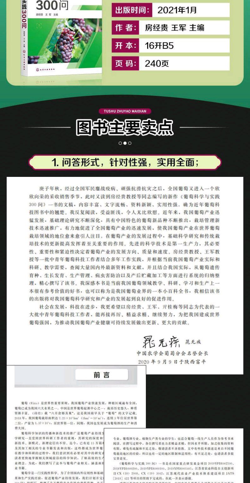 葡萄科学与实践300问 房经贵 王军 葡萄高产栽培技术大全书籍 优