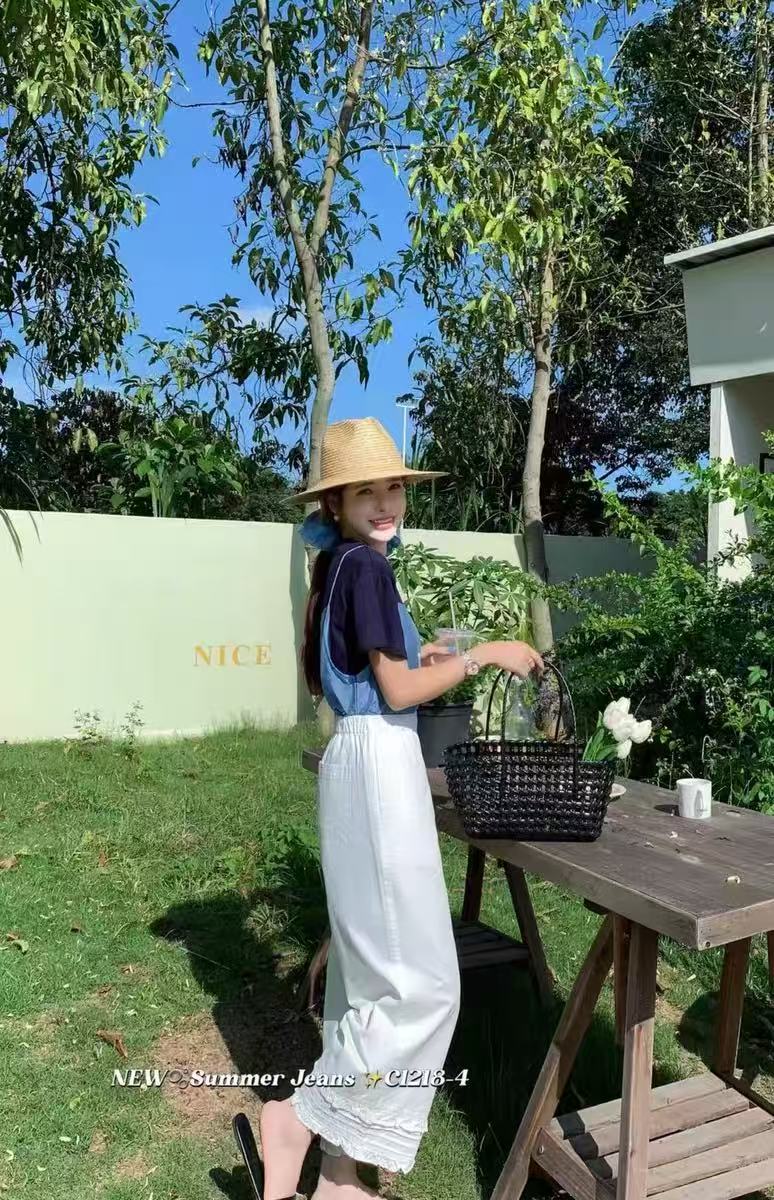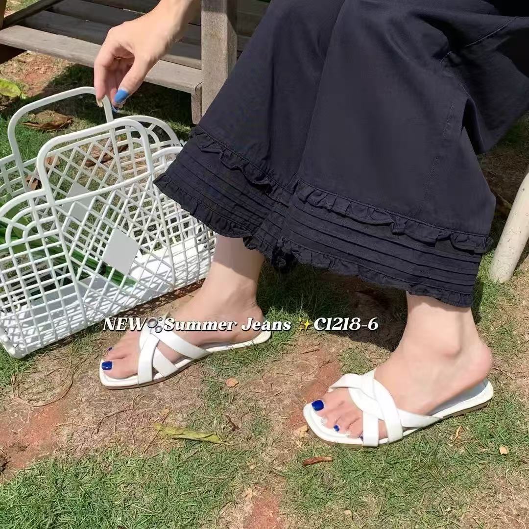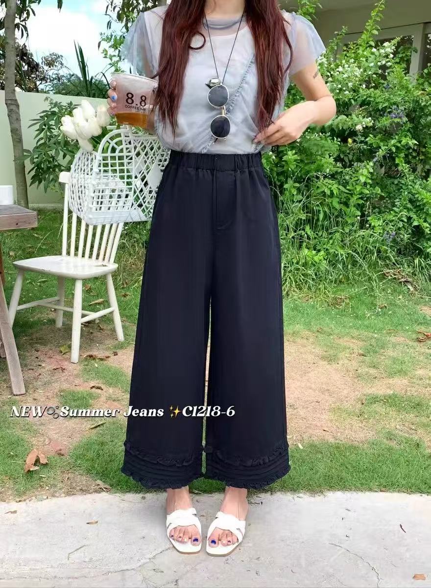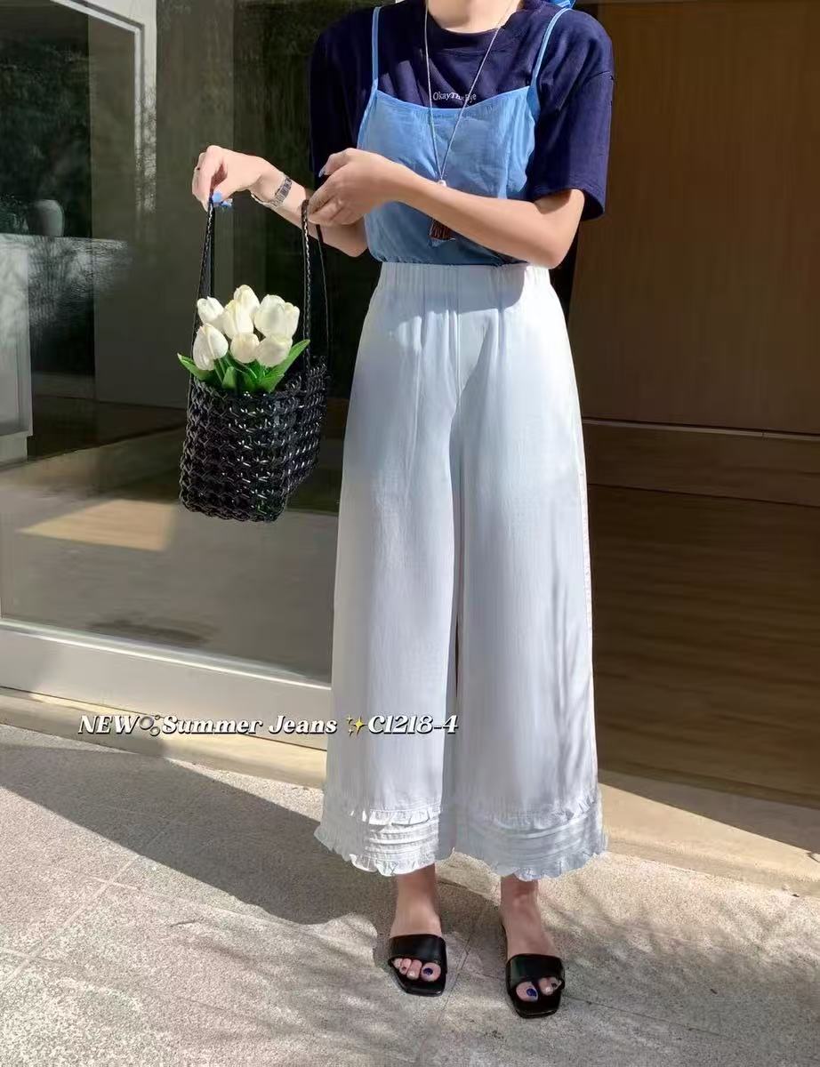 爆款{休闲裤2025}3296/1218天丝棉~木耳边挺括直筒裤九分-喜出