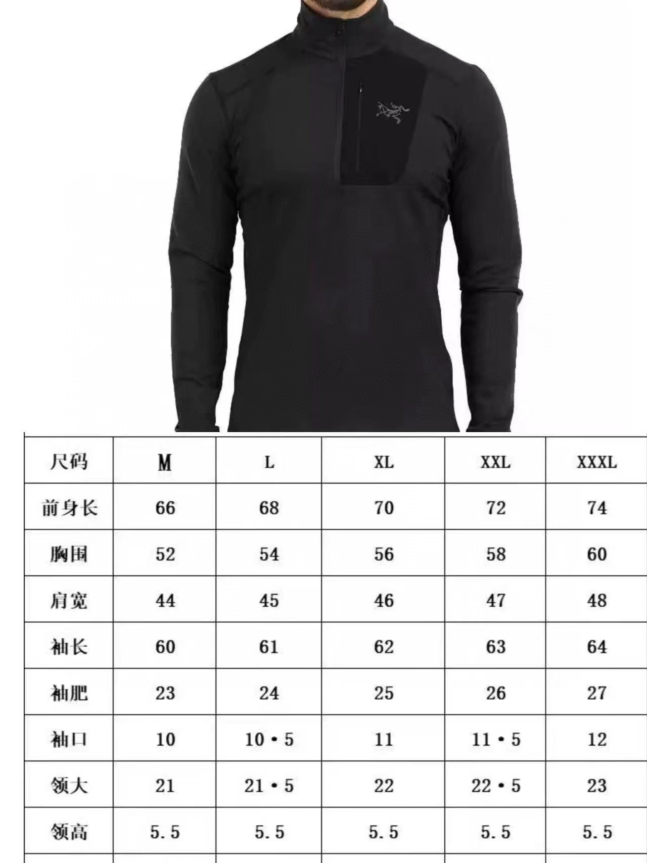 官网同款Arcteryx始祖鸟Rho LT Zip半拉链男士微粒绒长袖。