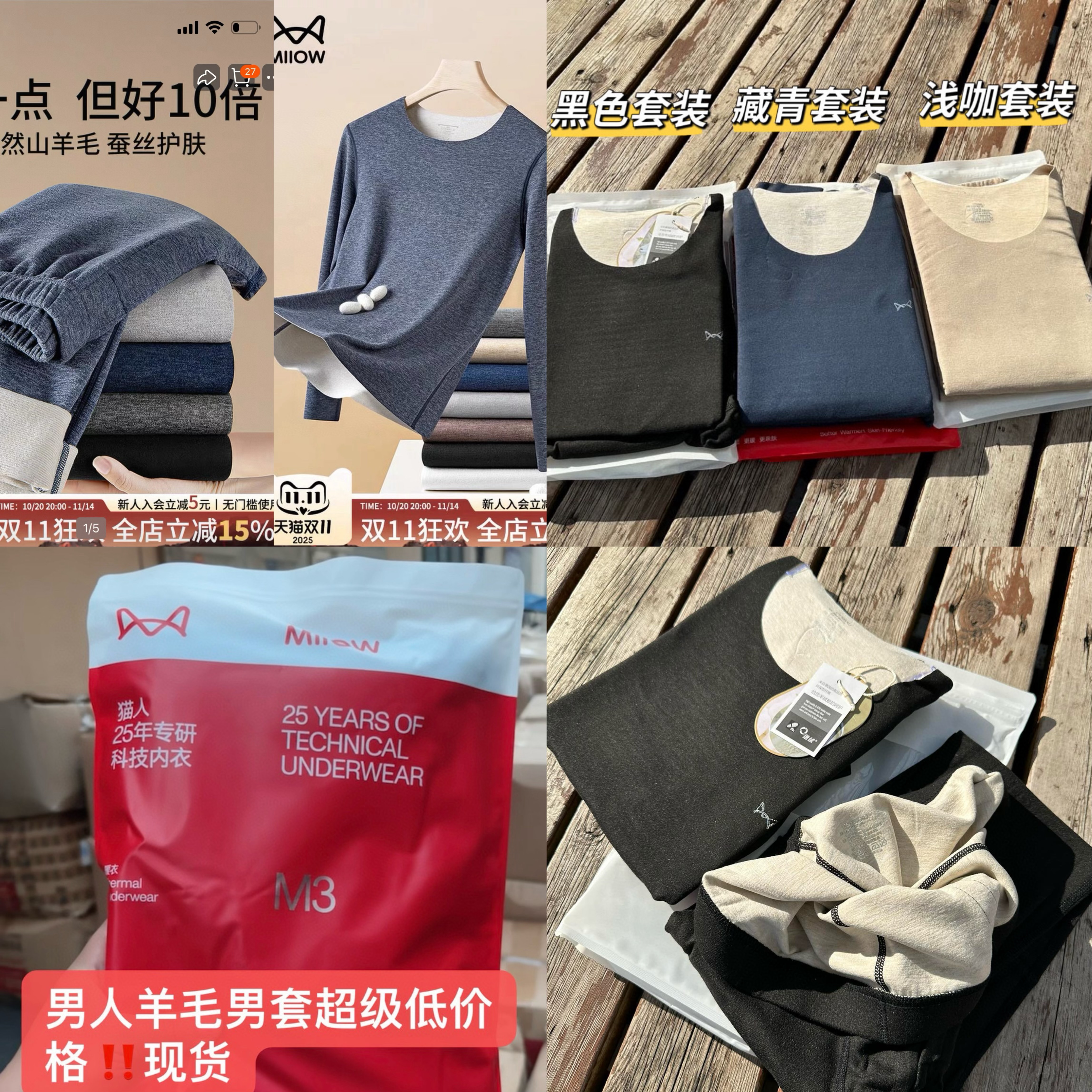 💯zheng品‼️ 品牌方清仓 ❤️猫🐱人男士羊毛套装超级低价来炸‼️ 细节必须说!成分里含有3%羊毛+6%桑蚕丝➕粘纤36.8,既有羊毛的保暖锁温,又有粘纤的柔滑亲肤,回弹超棒,不变形。