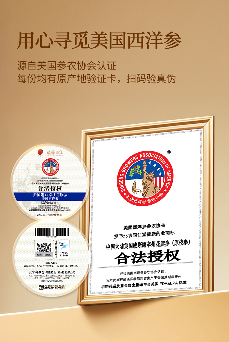 【正宗同仁堂品牌】 北京同仁堂 造养青年 西洋参-2#贰面 100克SY