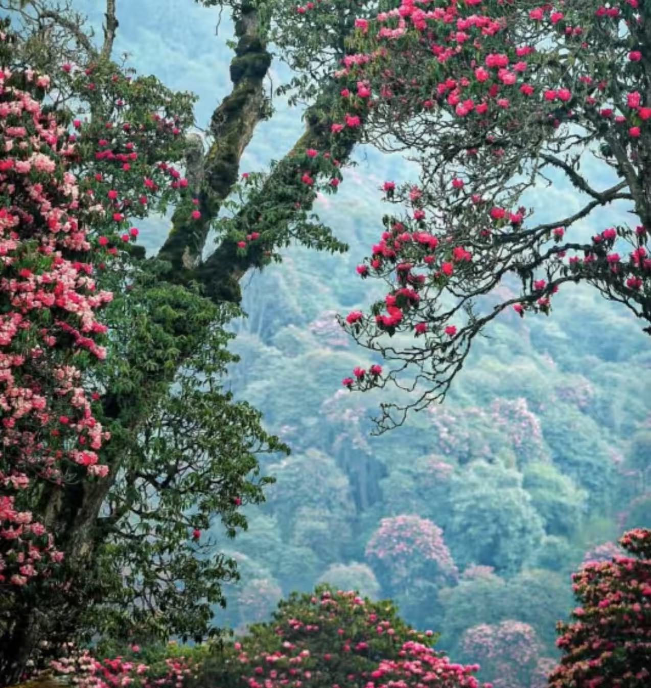 1919年英国生物学家、传教士傅礼士乔治在高黎贡山,寻找到他梦想中的的宝藏大树杜鹃。锯下标本带回英国,标本至今还陈列在大英博物馆。树龄约800多年高27米的杜鹃,是迄今记载的最大的大树杜鹃,堪称大树杜鹃王。