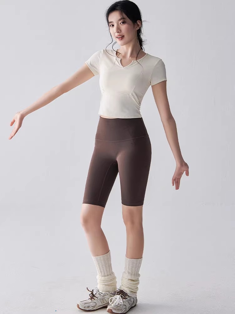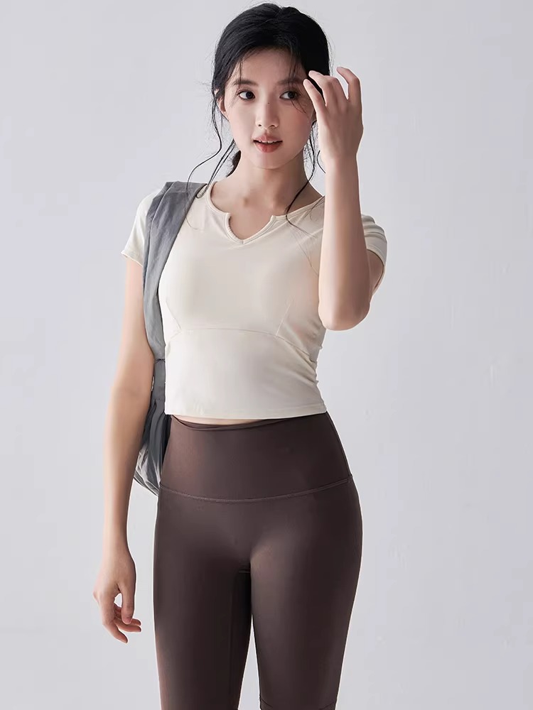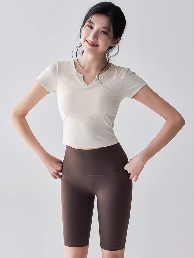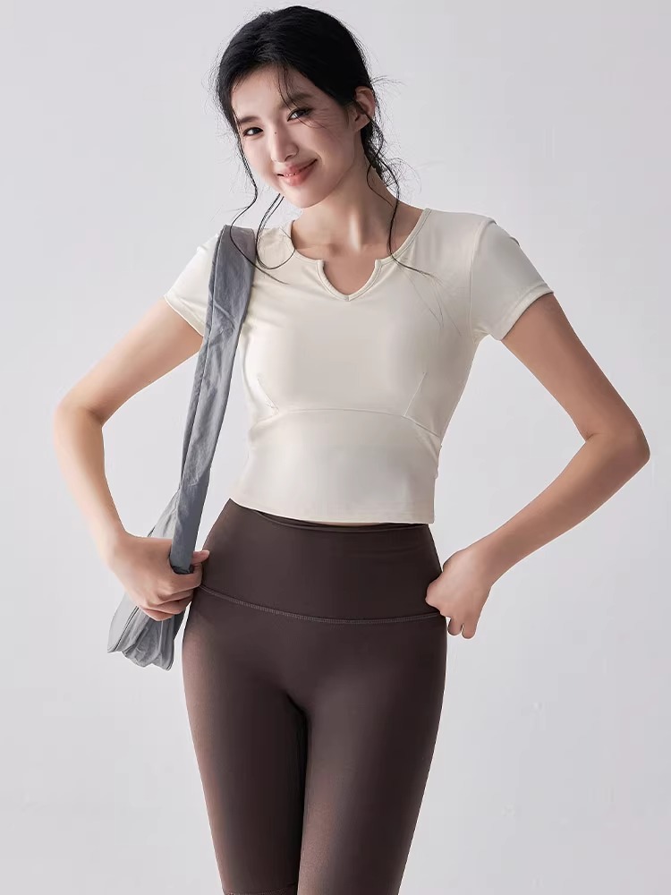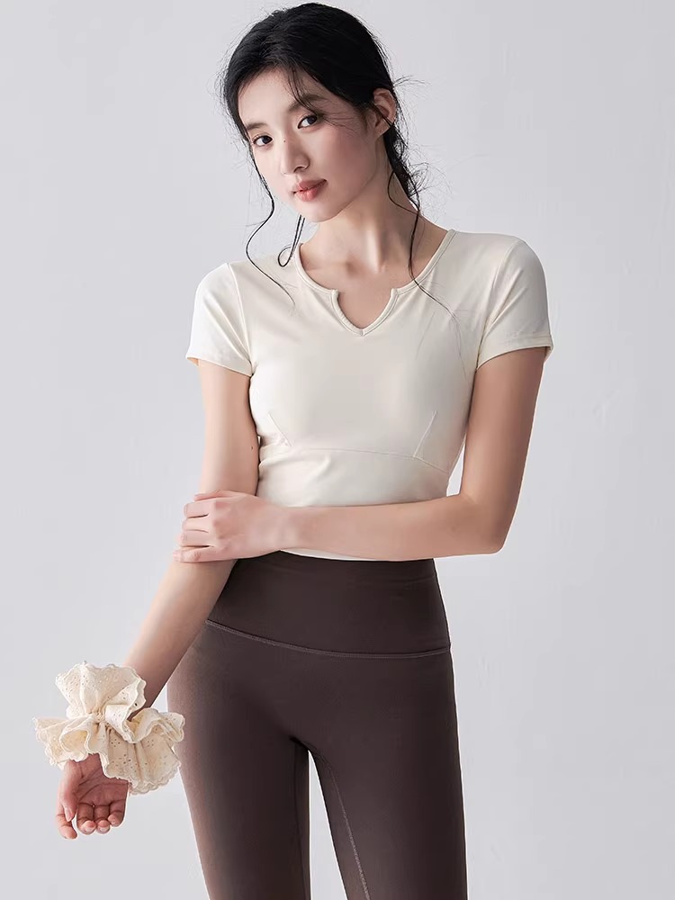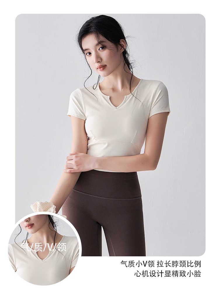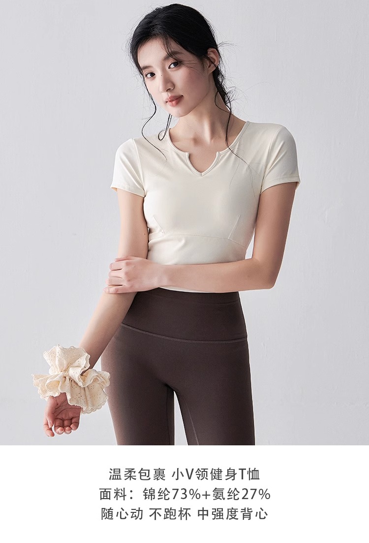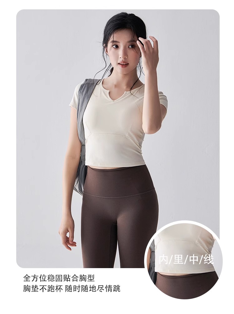 【限时秒】YOGACODE【火树银花系列】新款瑜伽服短袖T恤女带胸垫修身显瘦运动短袖DWY115018