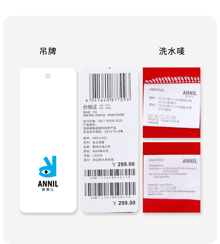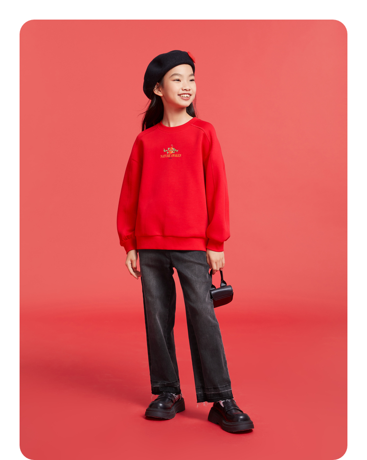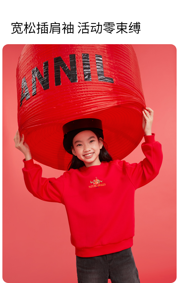 男女童圆领长袖卫衣春季新款安奈儿童装实体店同款AM511563