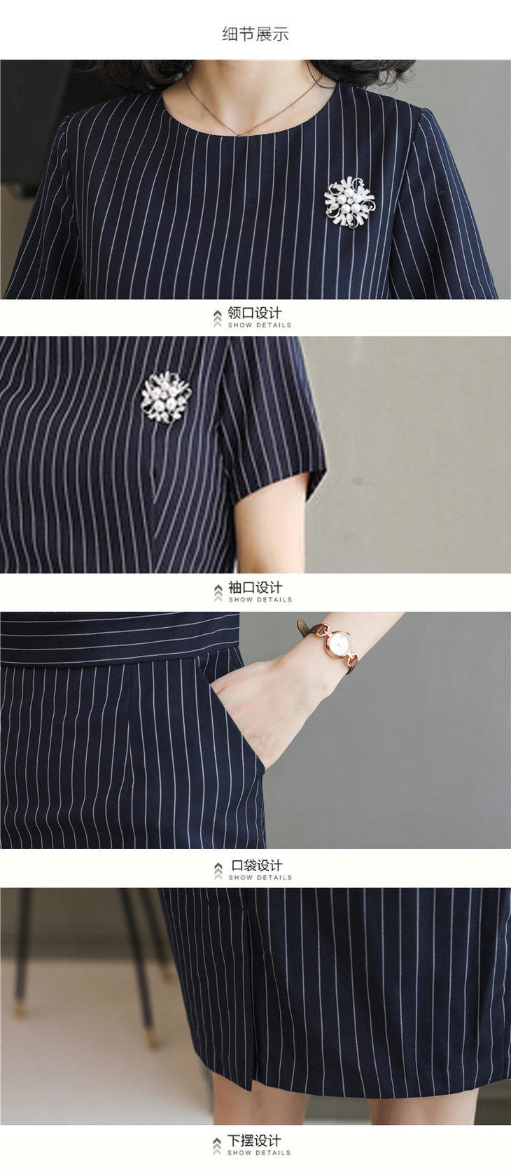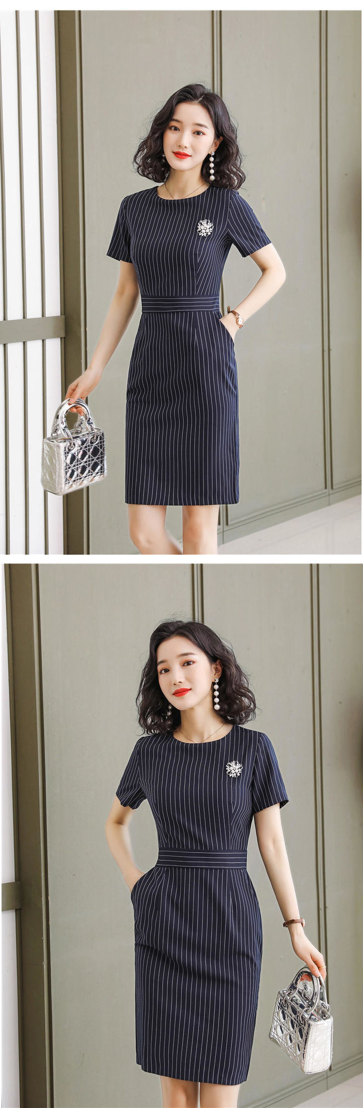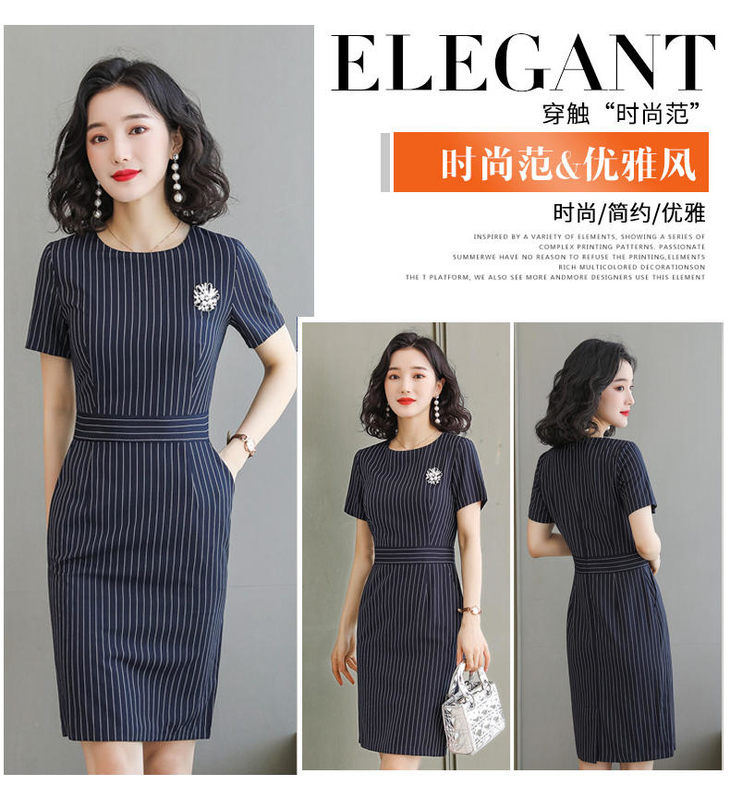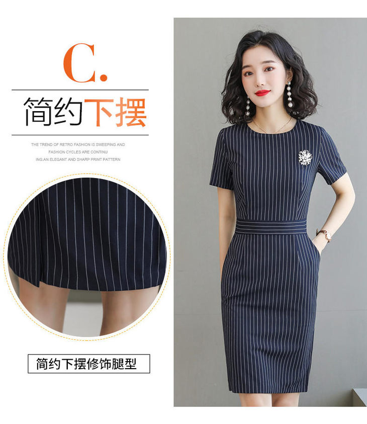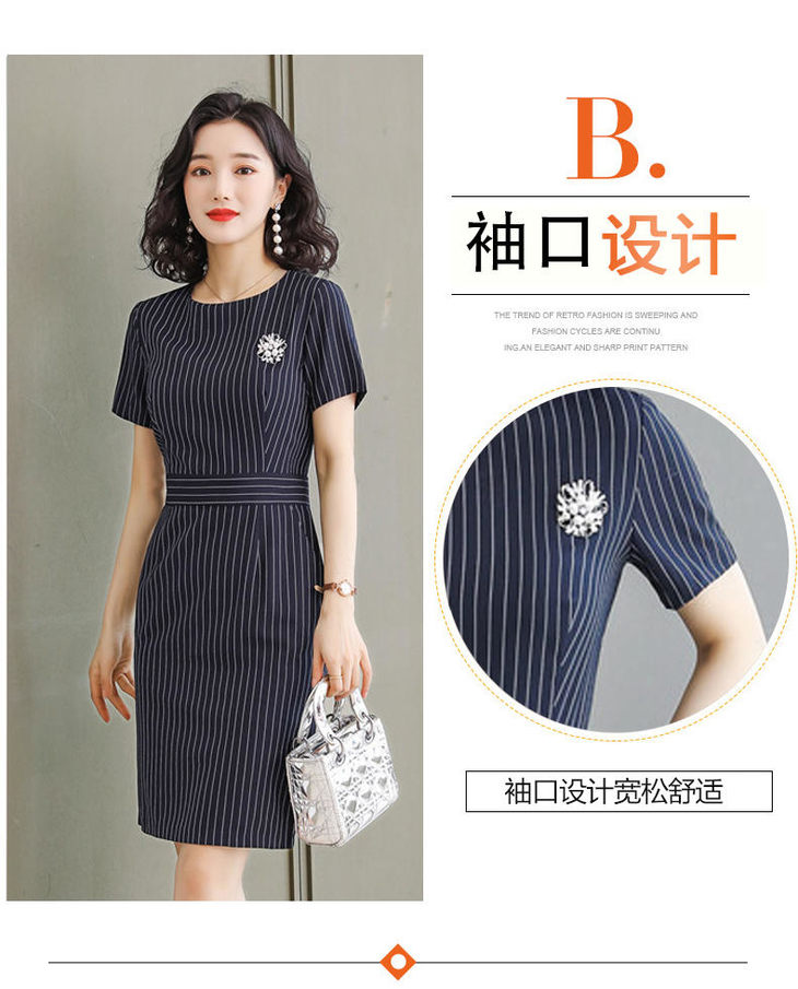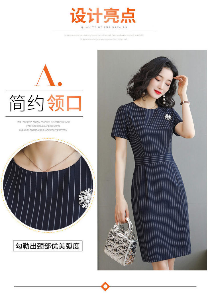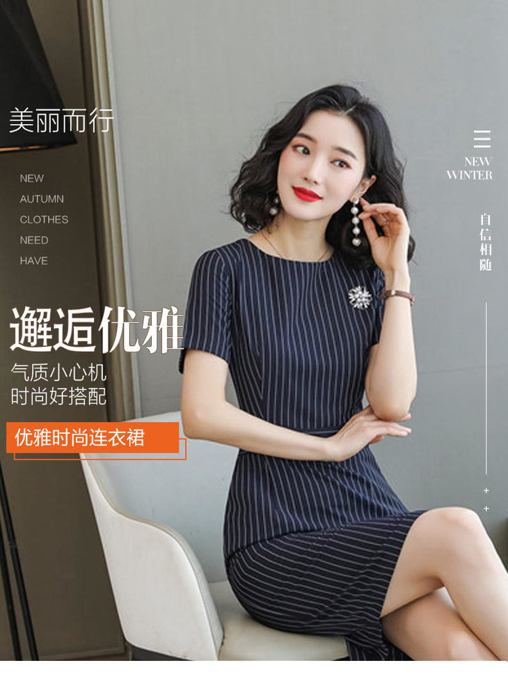 XZ8121时尚韩版修身简约条纹OL职业连衣裙(不带胸针)
