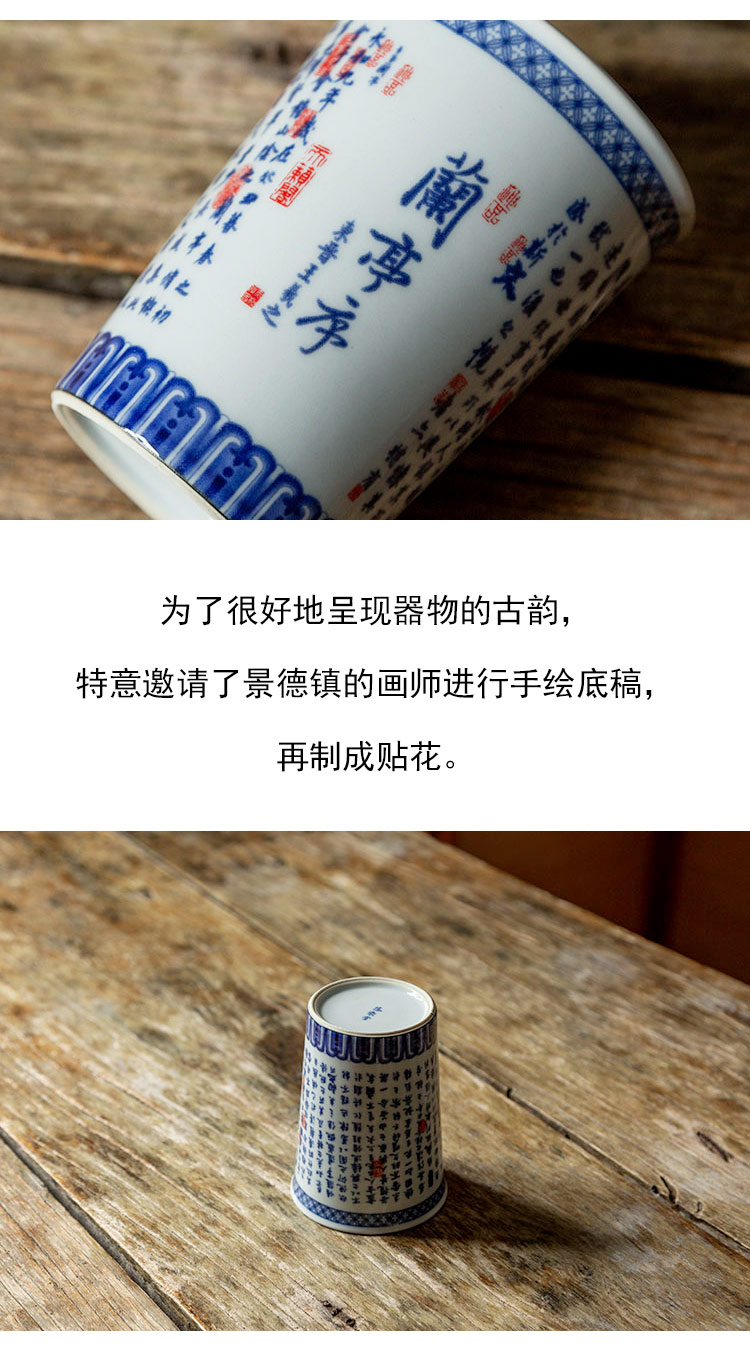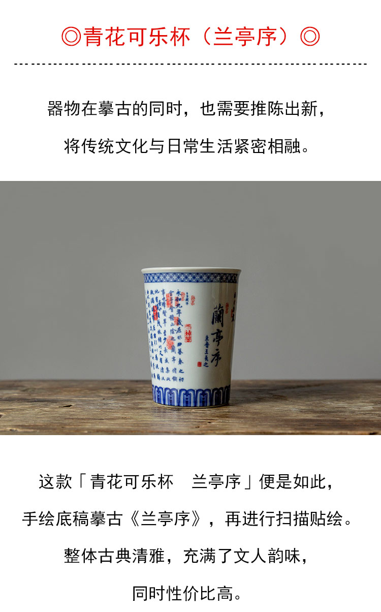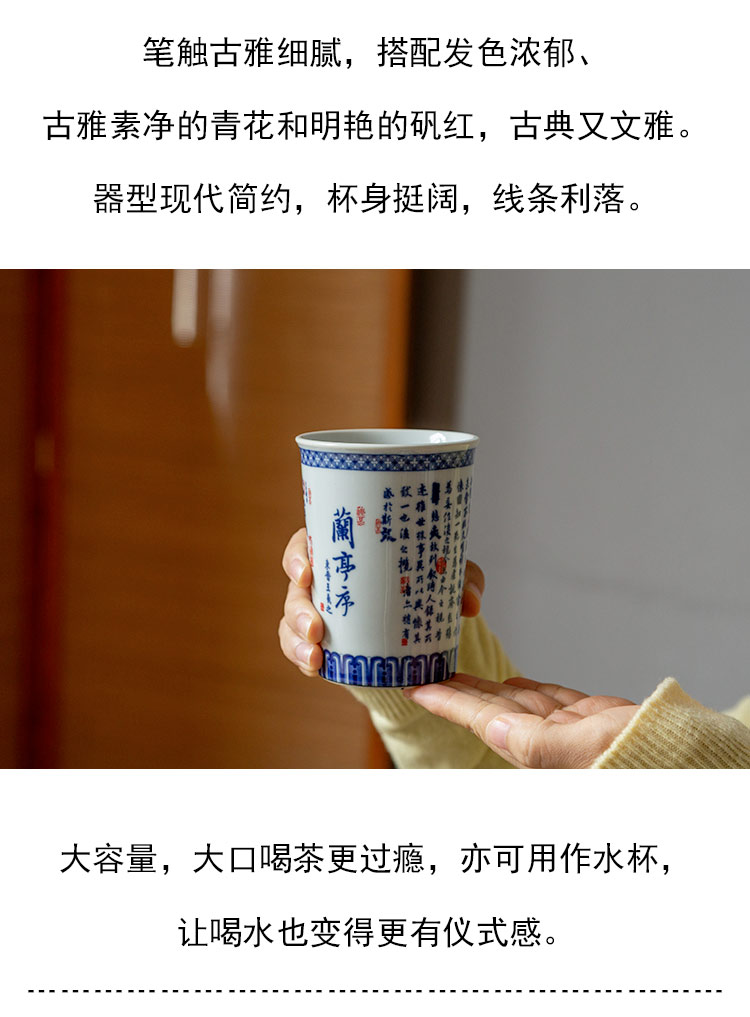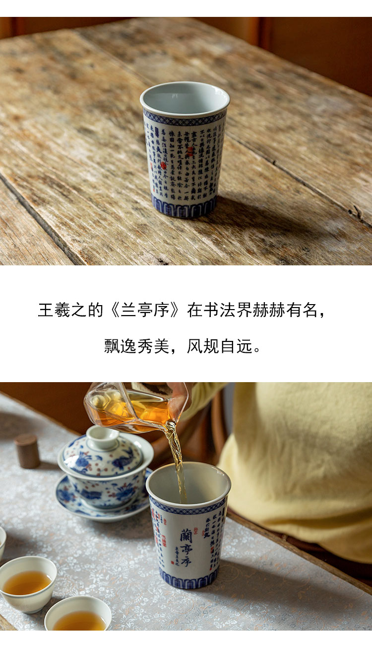 茶香记 落染堂青花可乐杯300ml兰亭序陶瓷茶杯多用复古文雅喝水