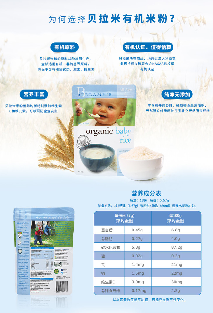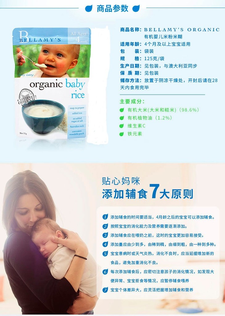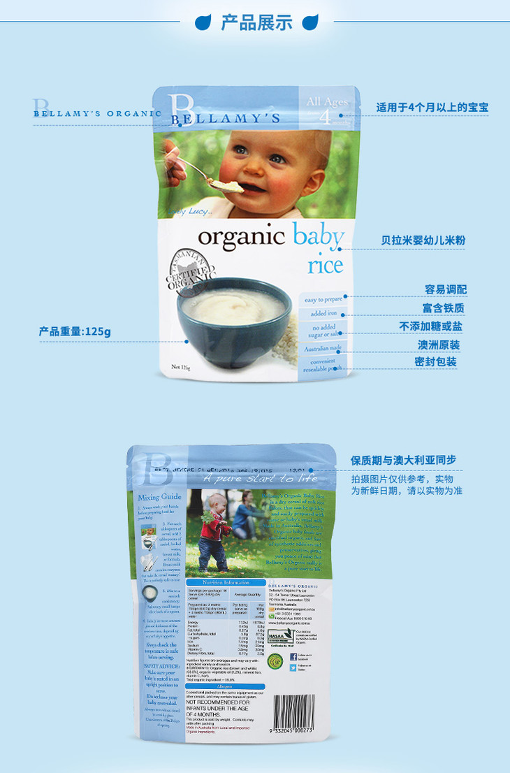 澳大利亚贝拉米Bellamy's米粉4+段125g