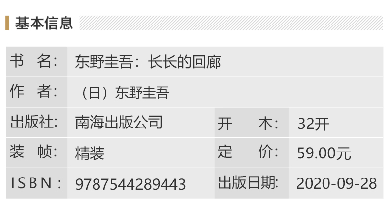 《长长的回廊》是日本作家东野圭吾的长篇推理小说,这一次,东野圭吾让一个死去的人精心策划,亲手复仇。阅读时不知不觉便会掉进作者设下的圈套里,读到结尾你以为已经知晓真相,其中却另有玄妙!