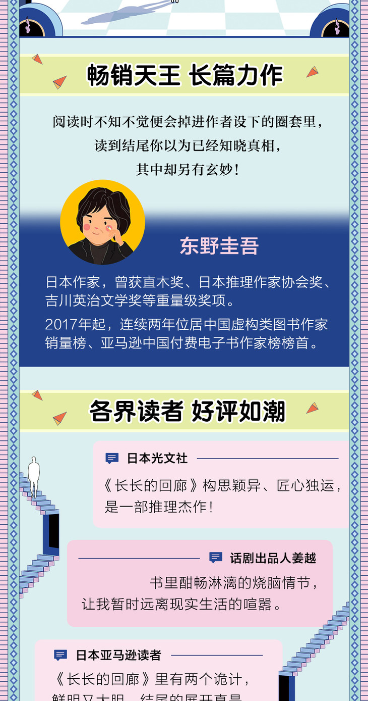 《长长的回廊》里有两个诡计,写得鲜明又大胆。故事***吸引人读下去,想尽快知道凶手是谁。结尾的展开真是意想不到。——日亚读者