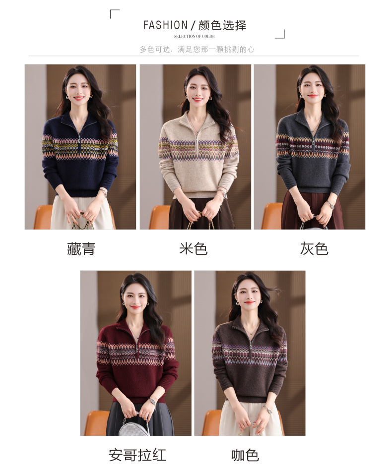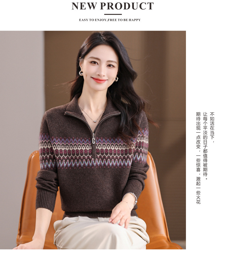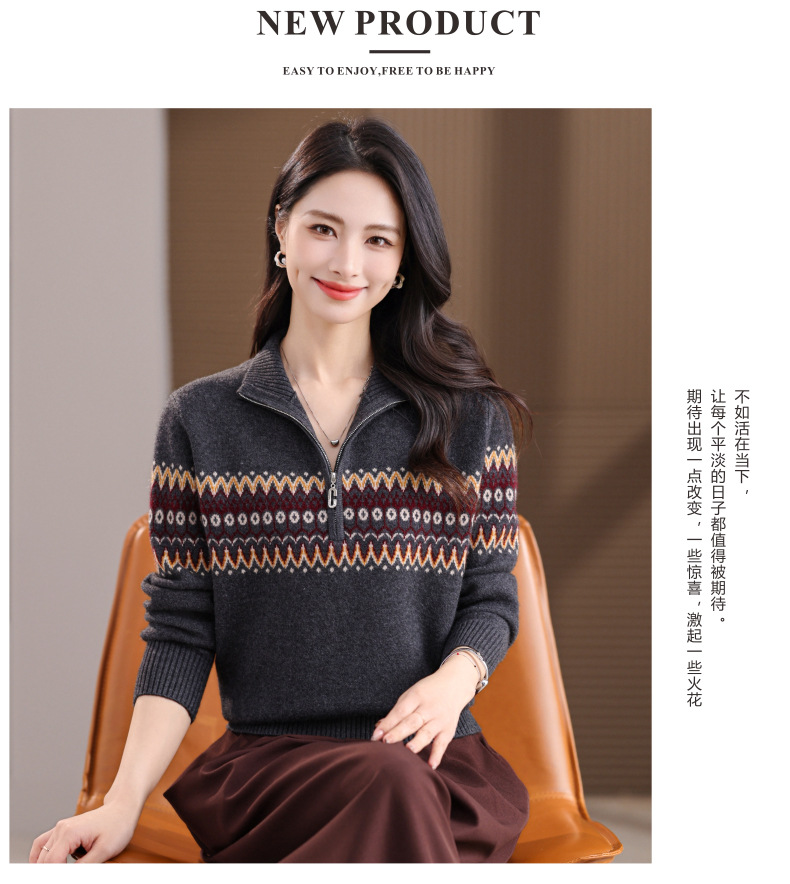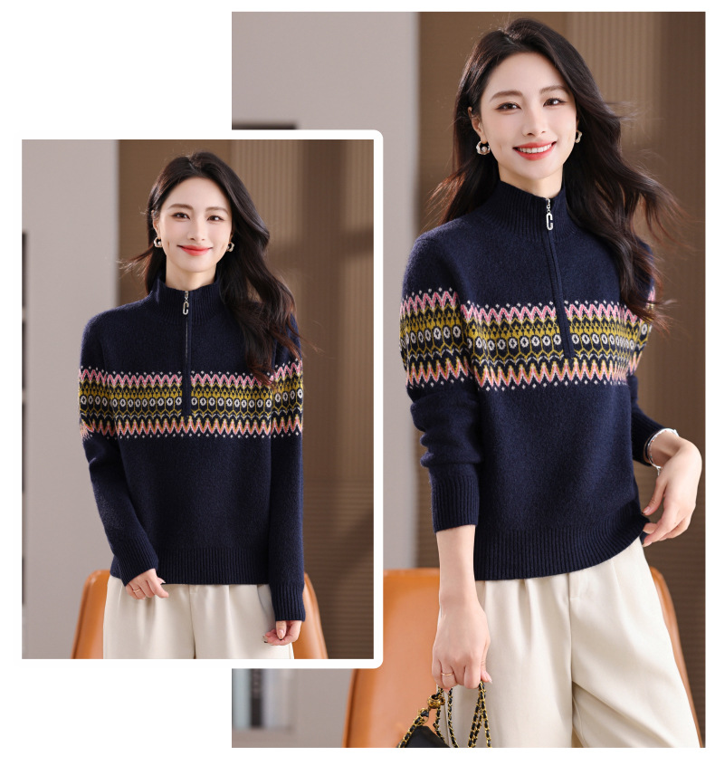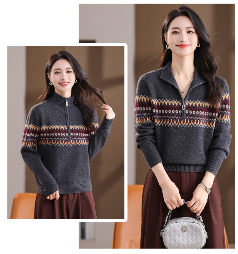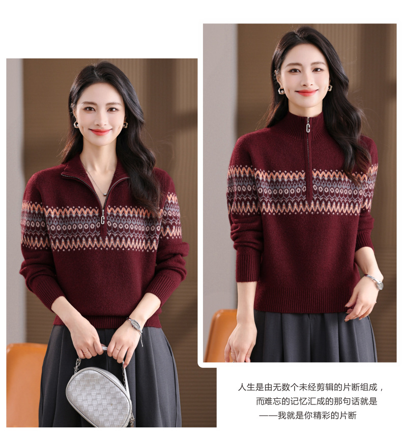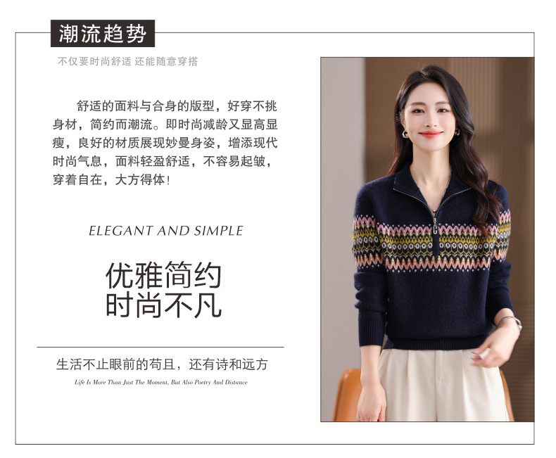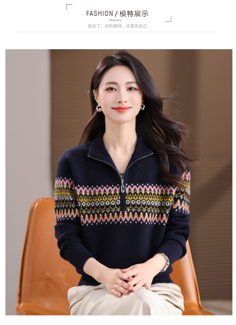 CC半高领拉链打底衫漂亮减龄洋气提花保暖针织衫上衣2025新款上衣女