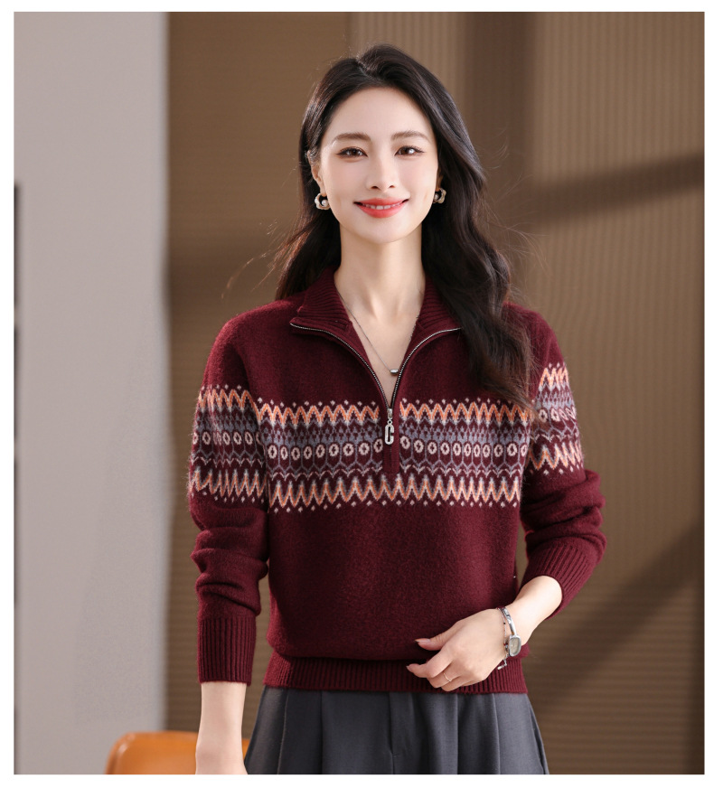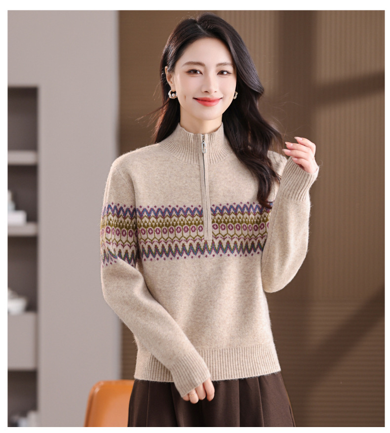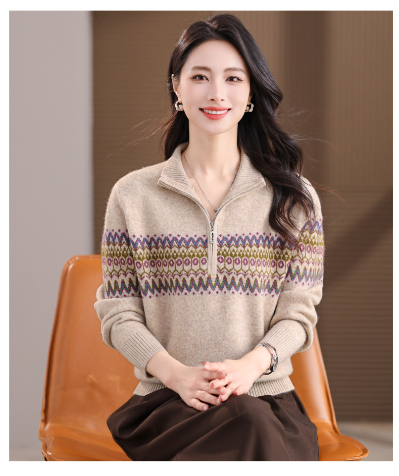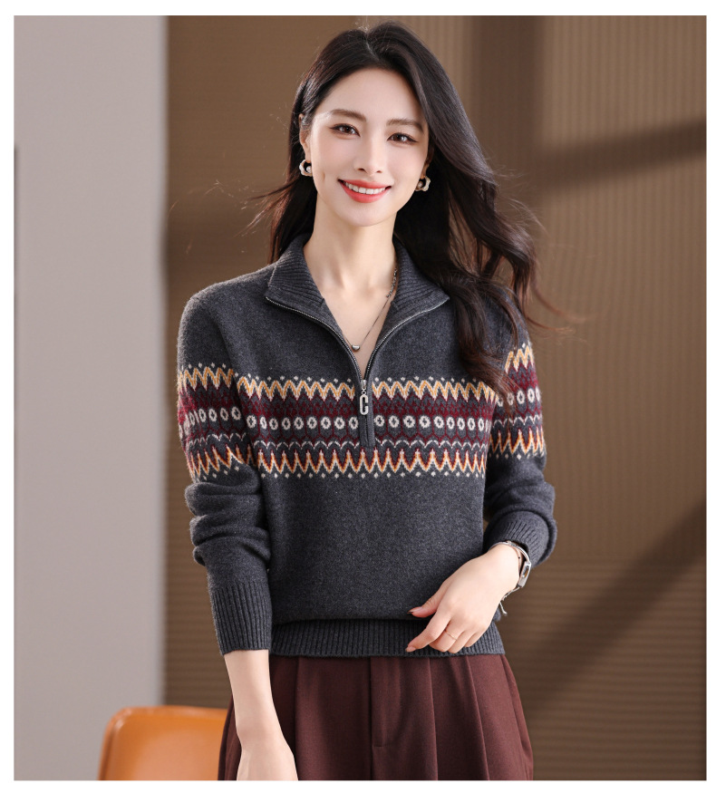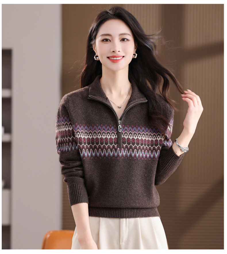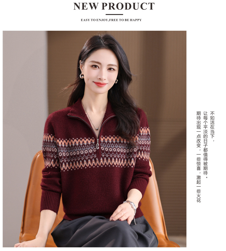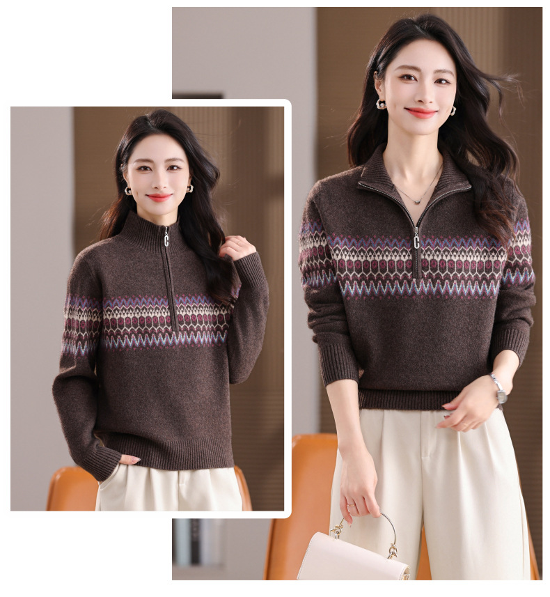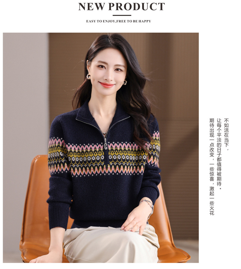 CC半高领拉链打底衫漂亮减龄洋气提花保暖针织衫上衣2025新款上衣女