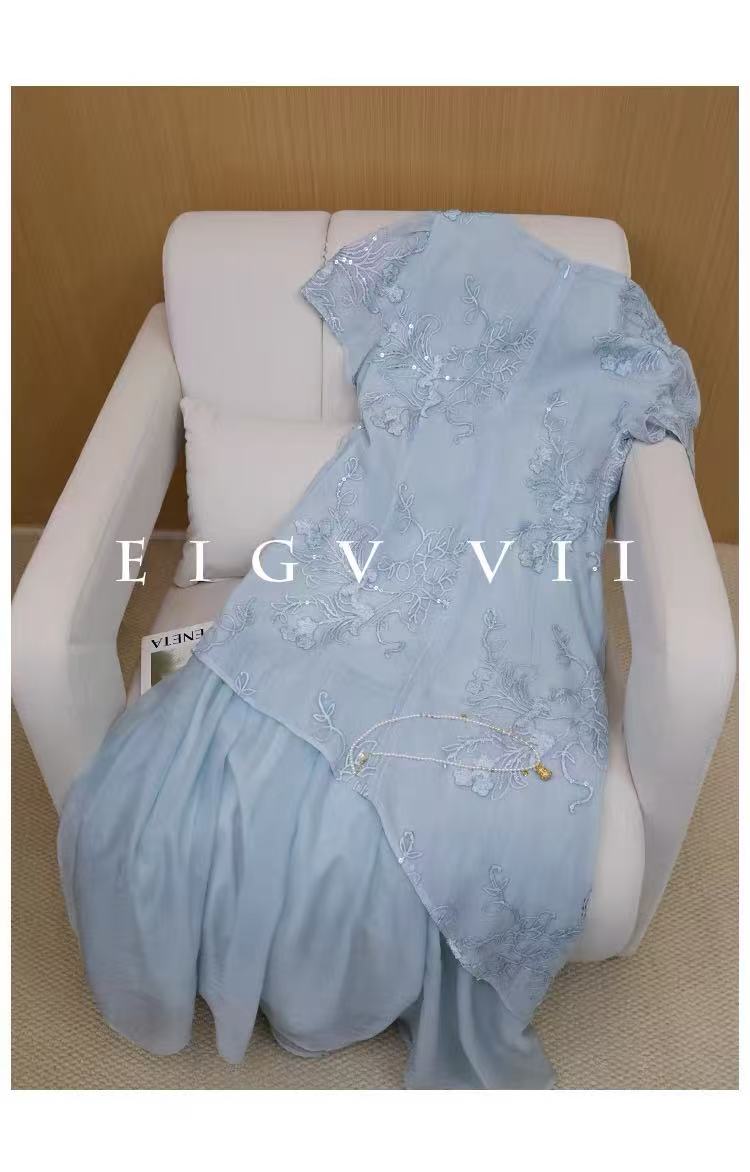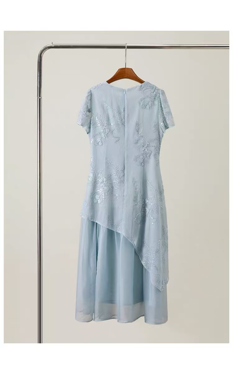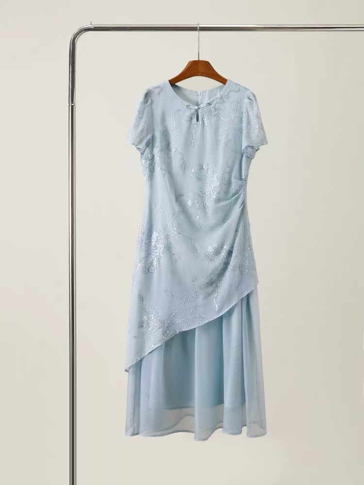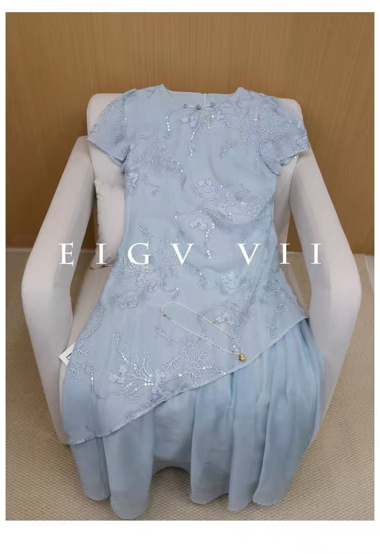 11.11最后促,不参与退货清仓处理!卡芙蒂妮694新中式假两件重工绣花短袖连衣裙-喜出