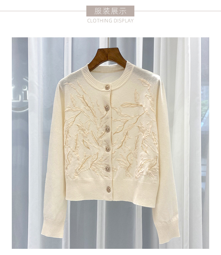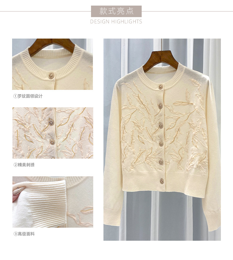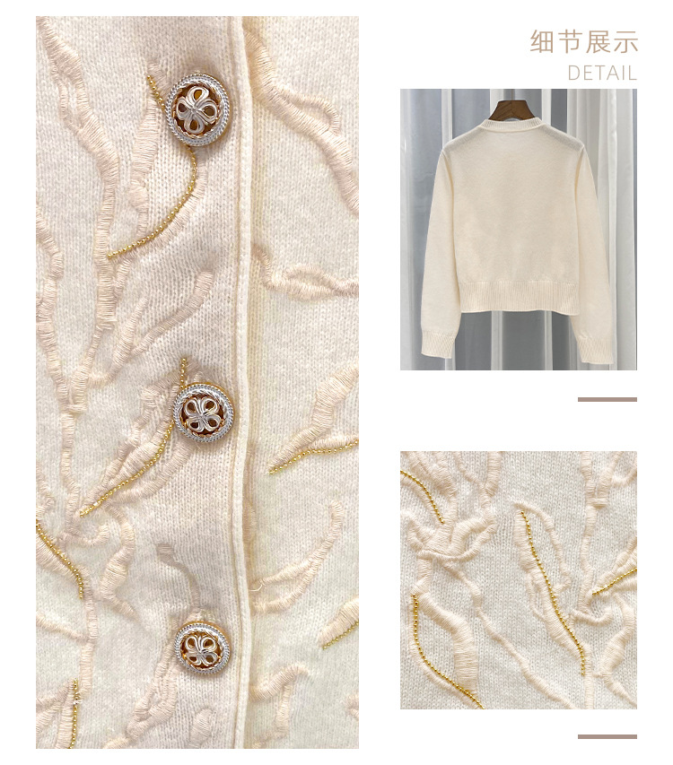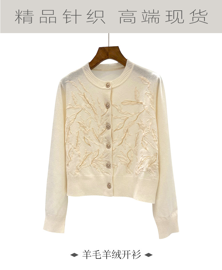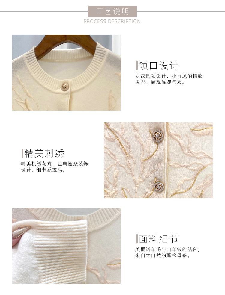 丁摩 山羊绒羊毛高品 软糯重工刺绣小香风花卉针织开衫810051