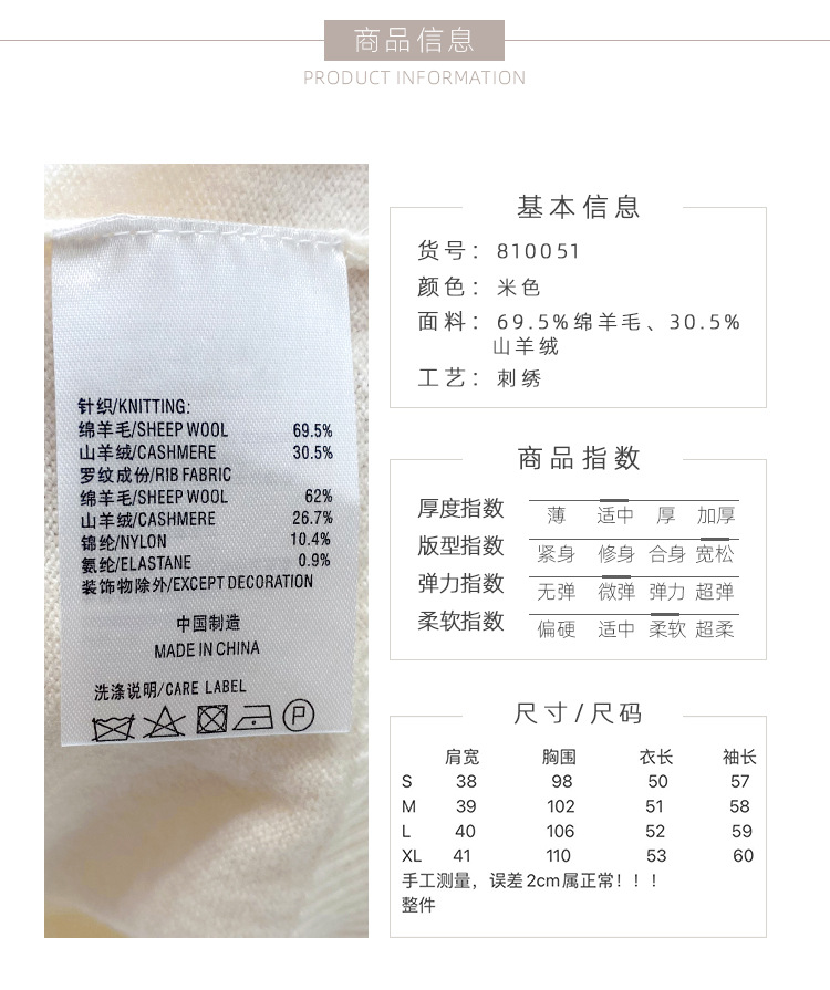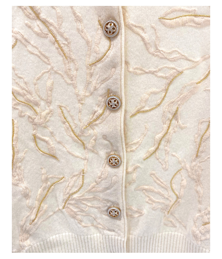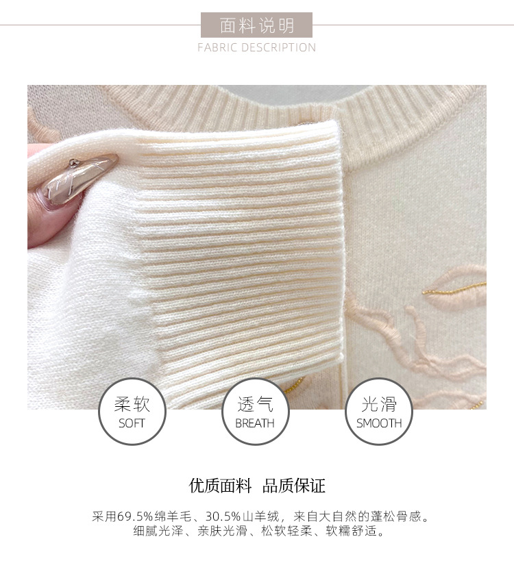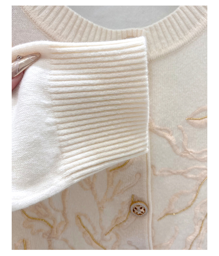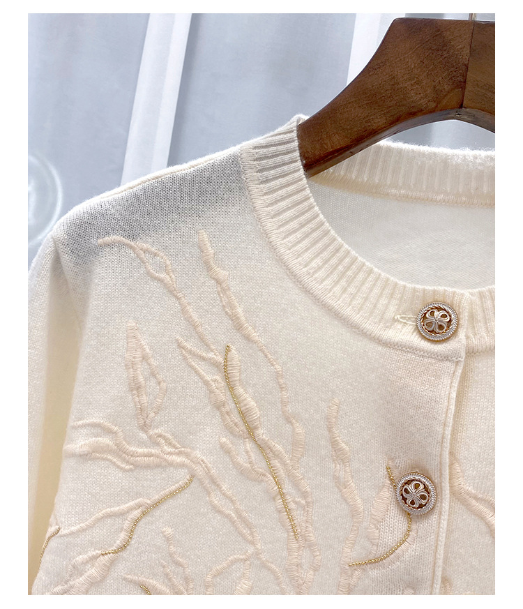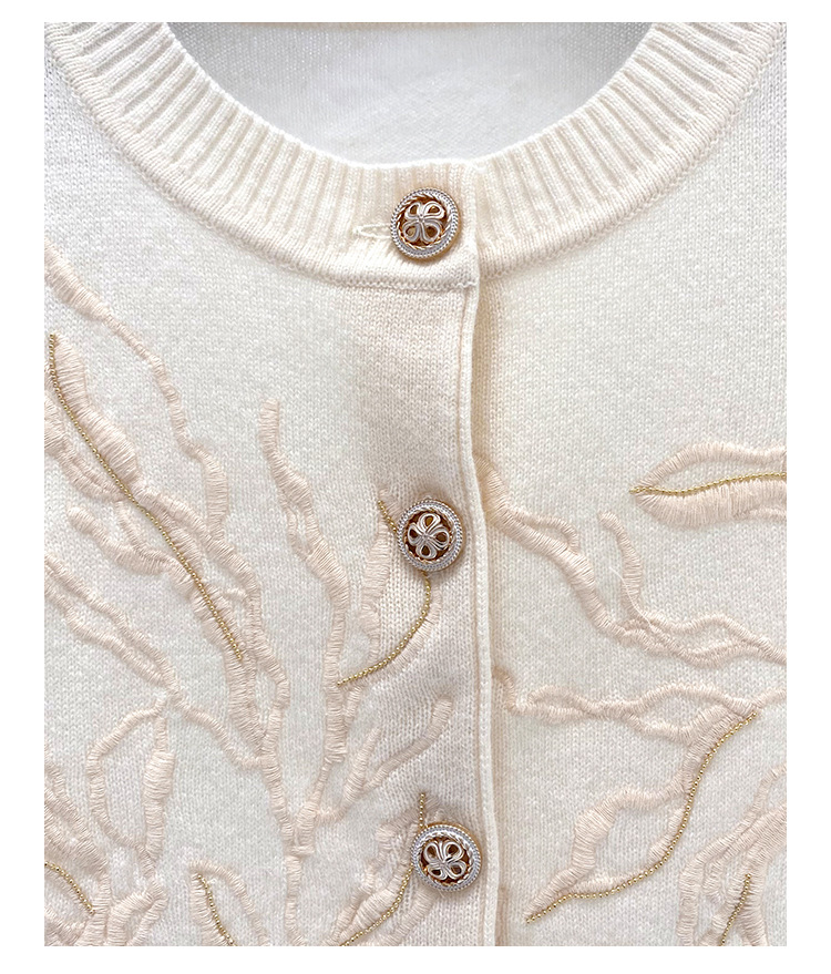 丁摩 山羊绒羊毛高品 软糯重工刺绣小香风花卉针织开衫810051