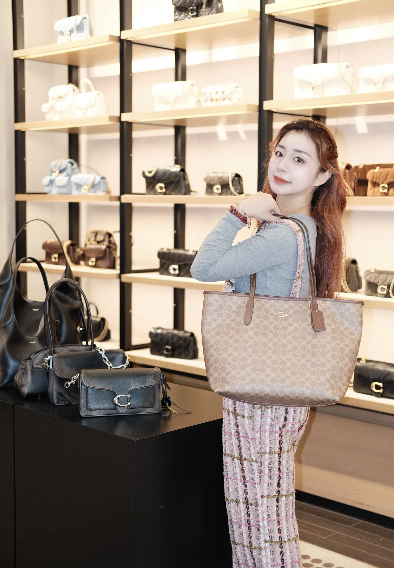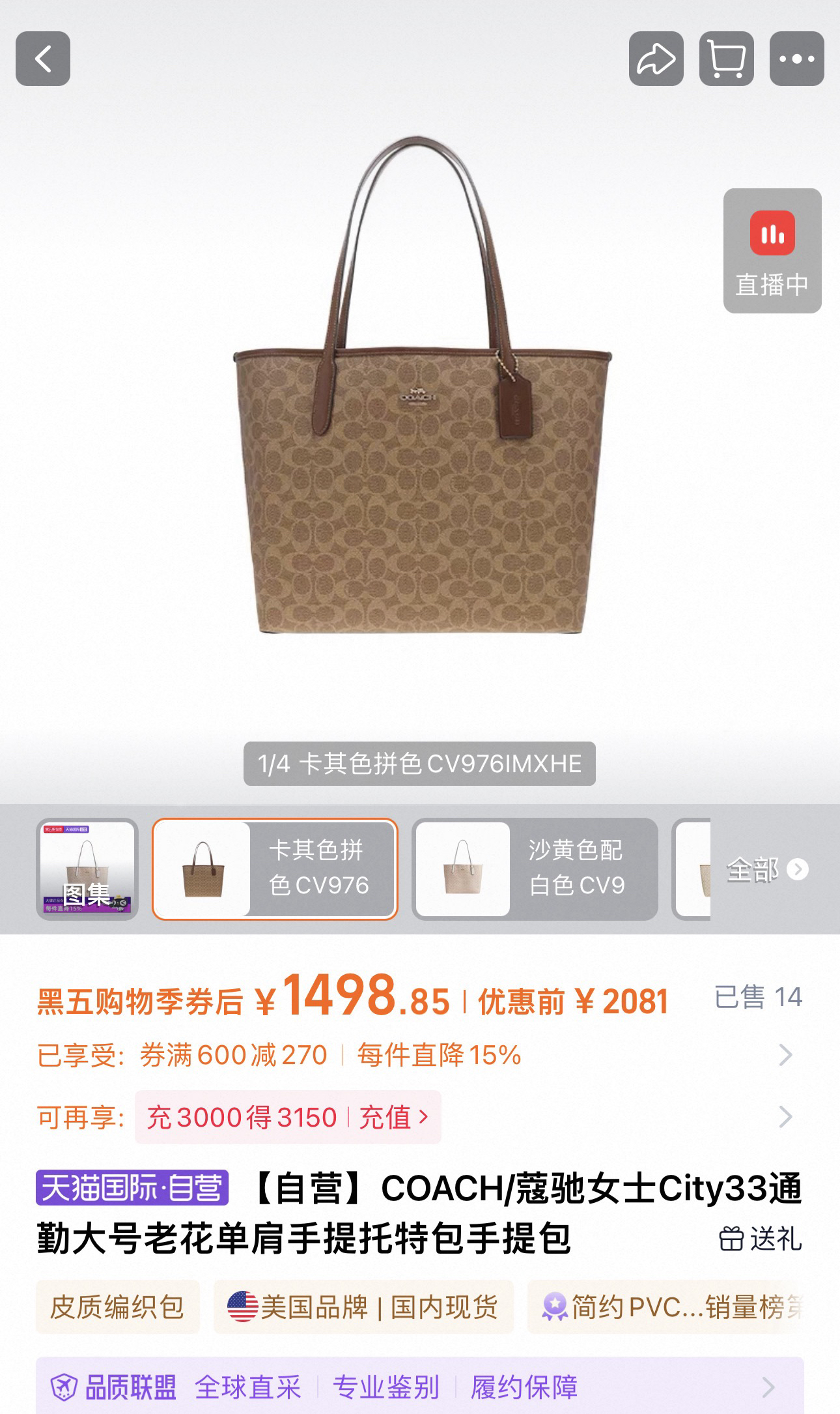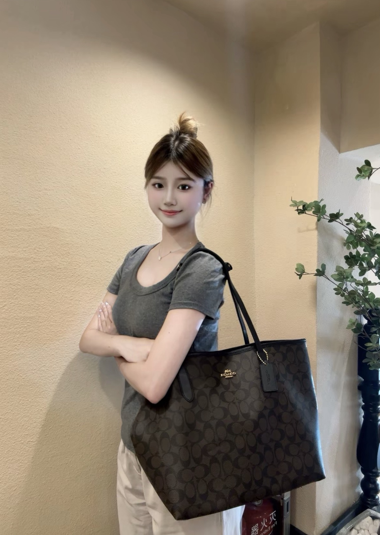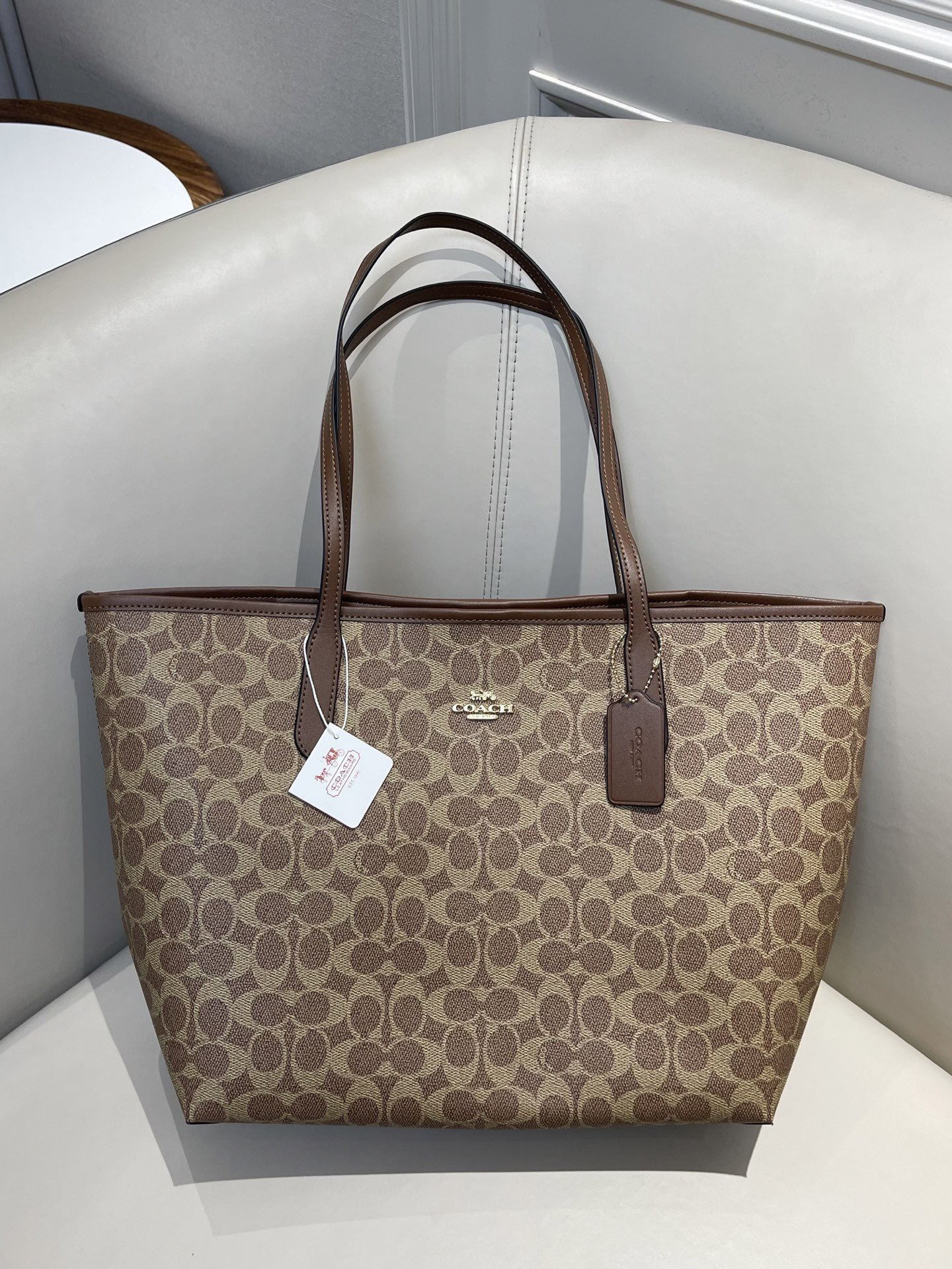 💰189顺丰包邮 已入库 奥莱订单 极致性价比 寇*City33系列女士老花托特包大号~官网原价2000➕ 同步三色 今日福利款🎁 自留款 可直接送人!