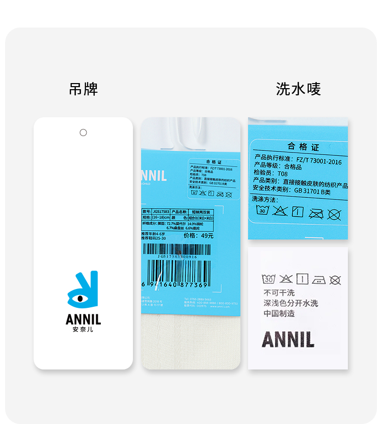 女童短袜两双装春季新款安奈儿童装实体店同款JG517583