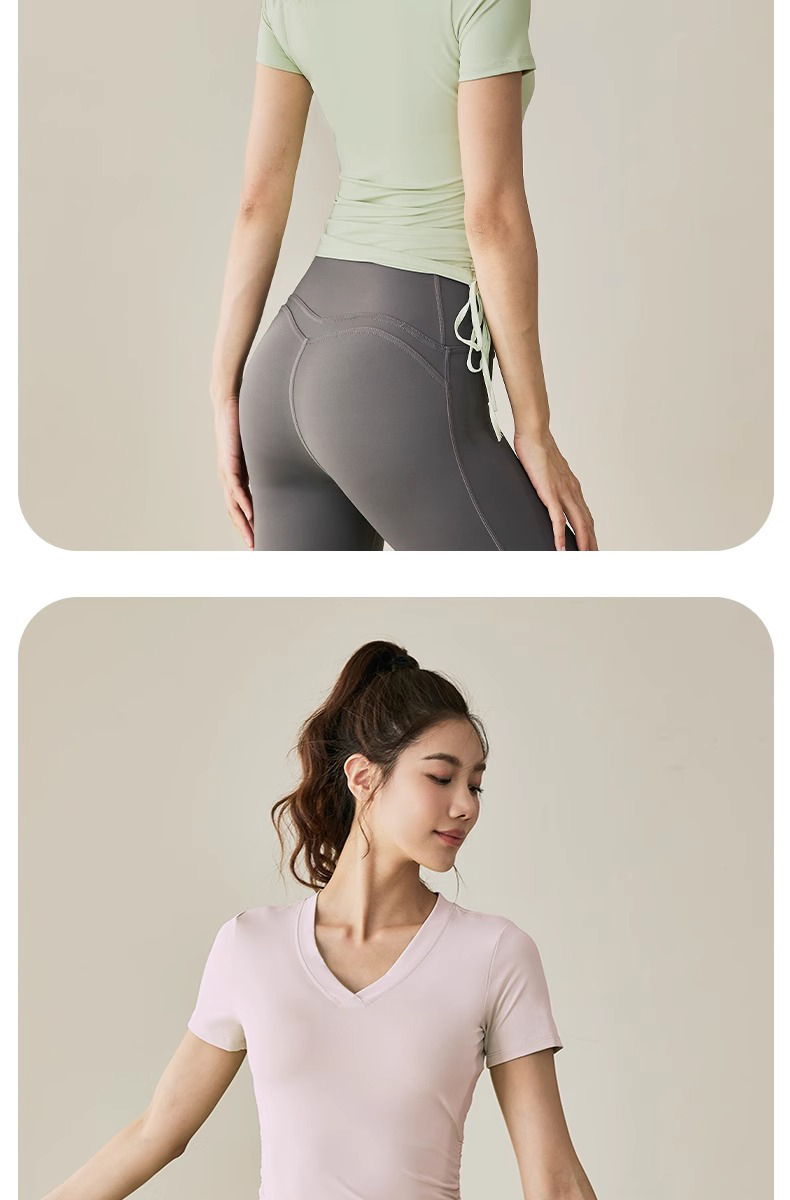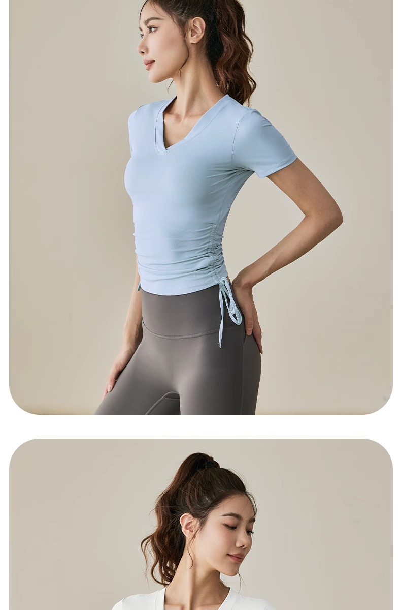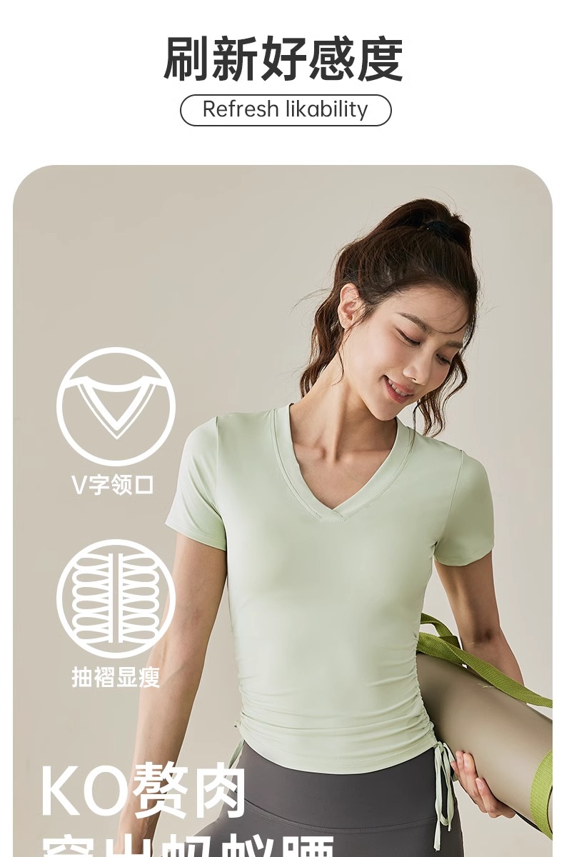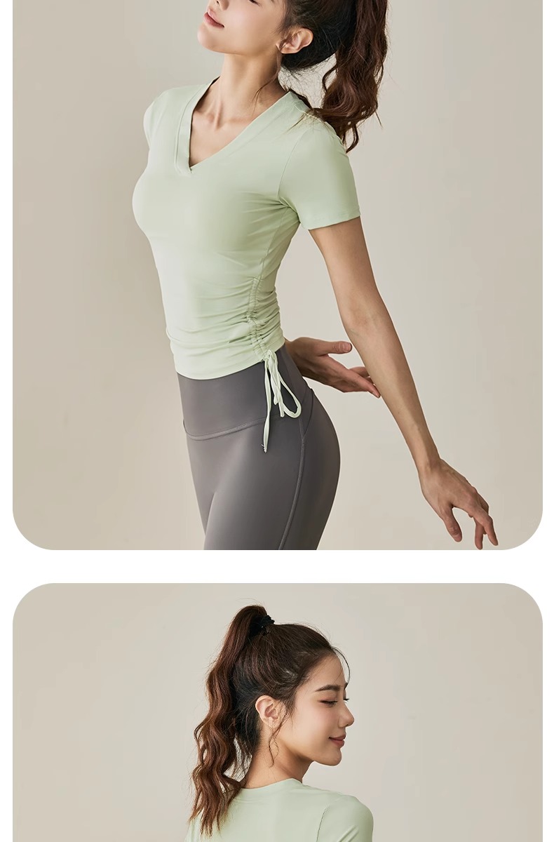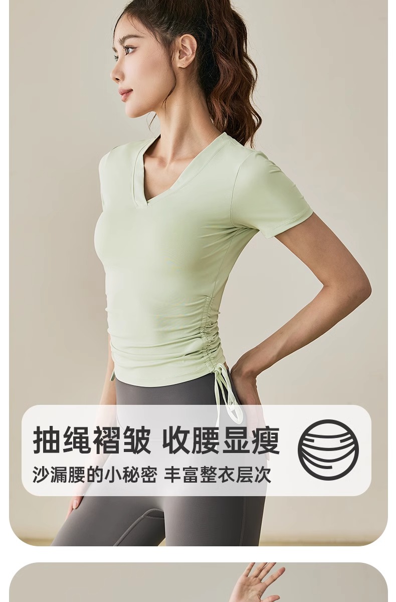 【限时秒】YOGACODE【火树银花系列】2024 春夏瑜伽服上衣短袖褶皱收腰休闲运动上衣 DST802