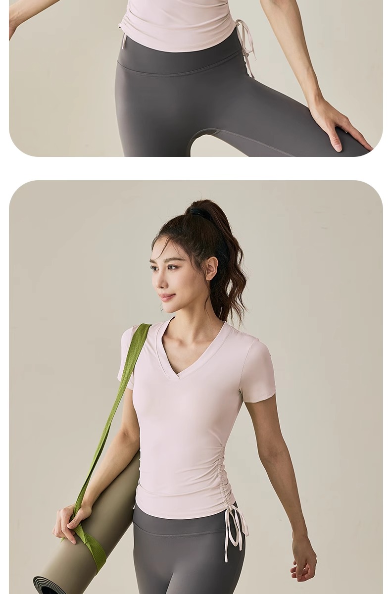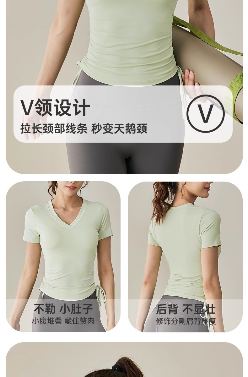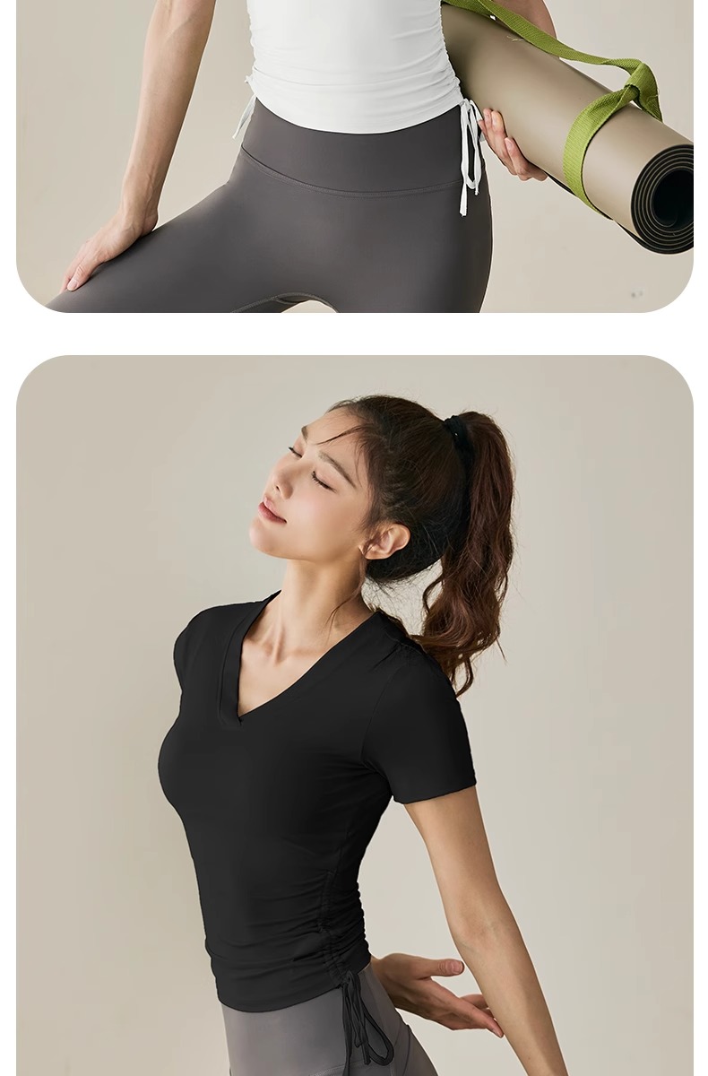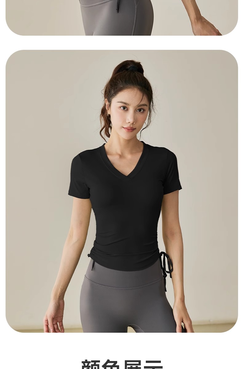 【限时秒】YOGACODE【火树银花系列】2024 春夏瑜伽服上衣短袖褶皱收腰休闲运动上衣 DST802