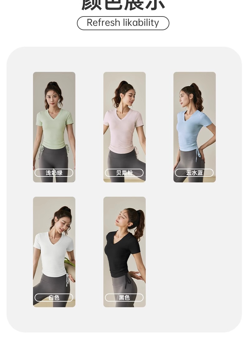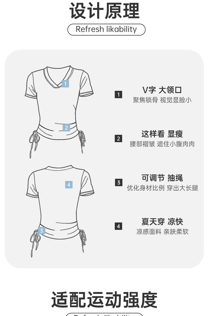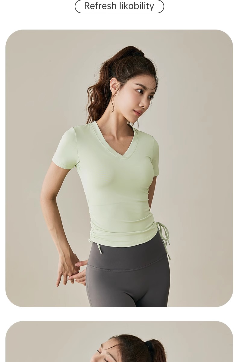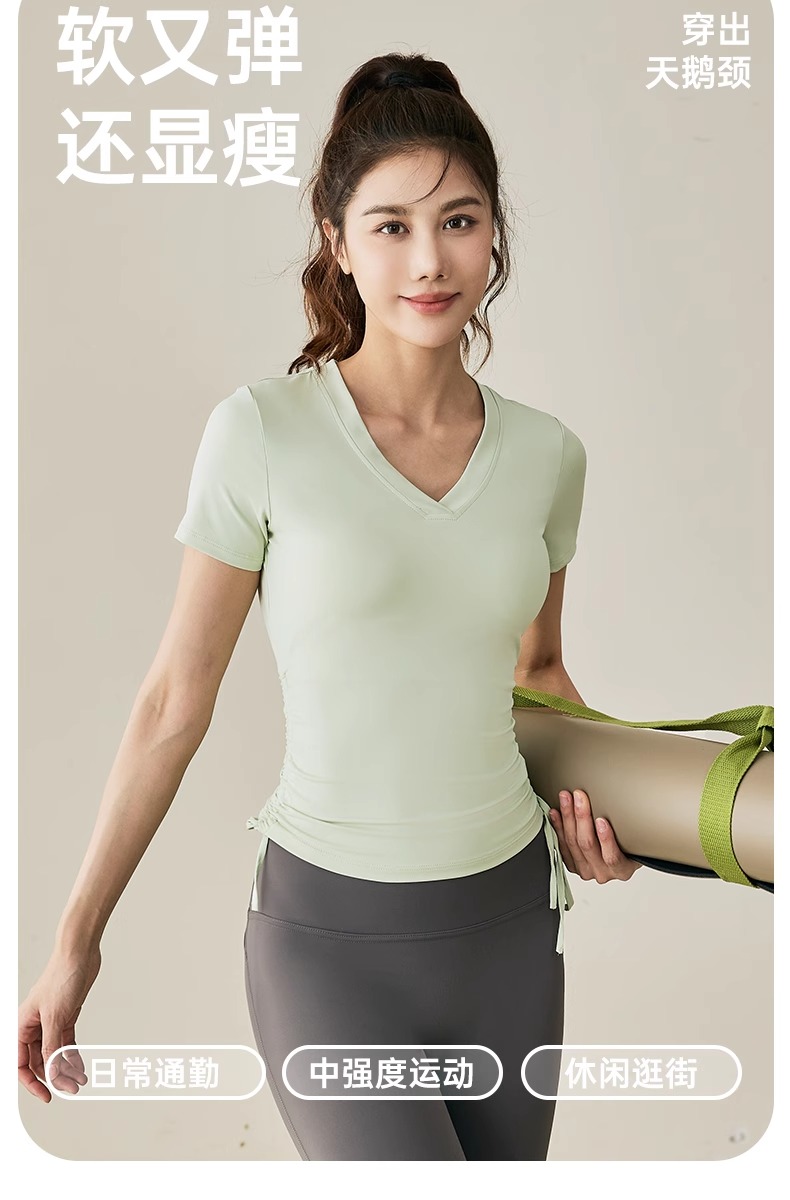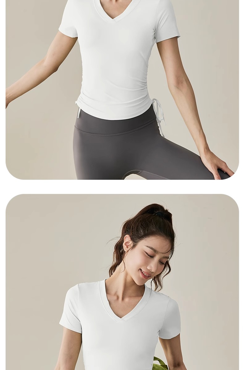 【限时秒】YOGACODE【火树银花系列】2024 春夏瑜伽服上衣短袖褶皱收腰休闲运动上衣 DST802