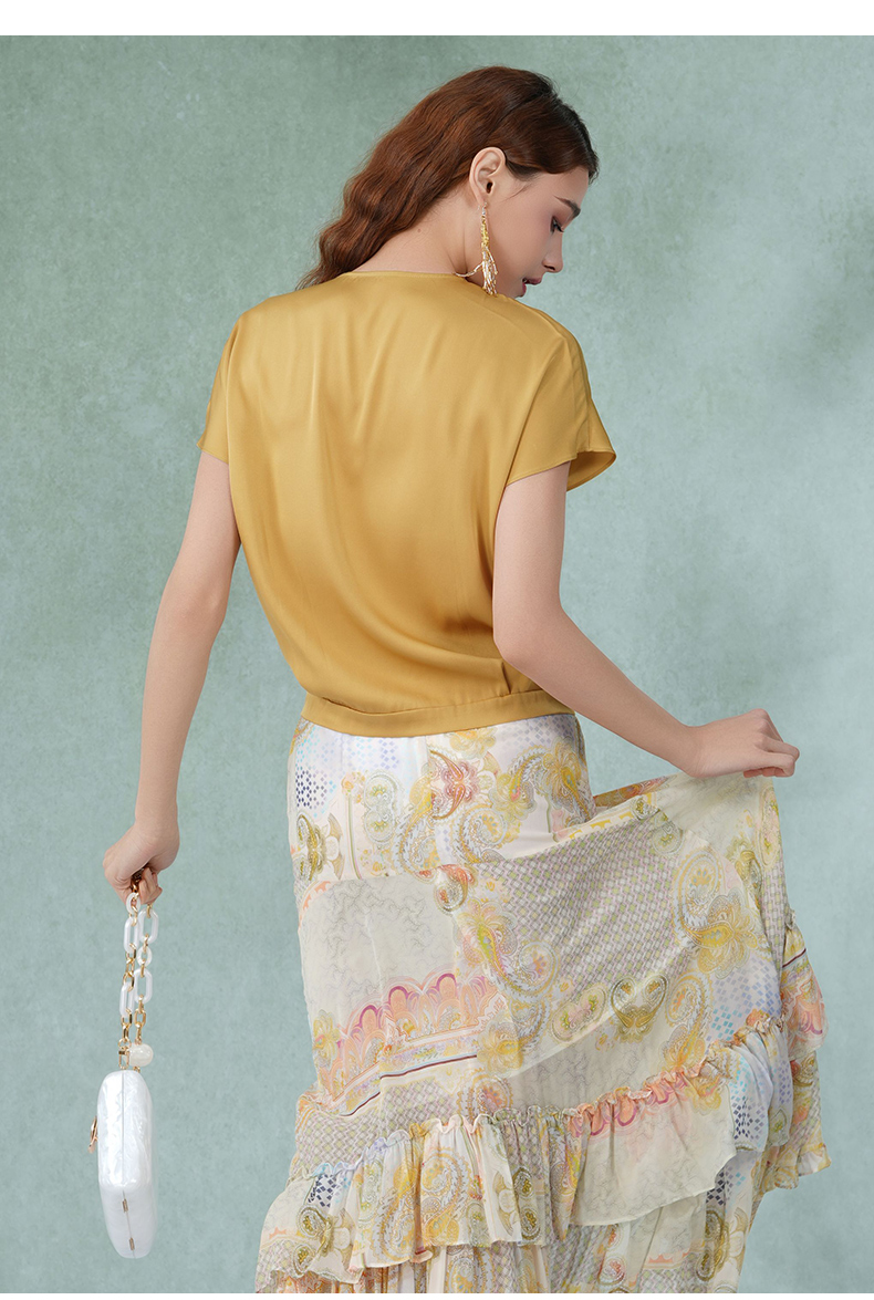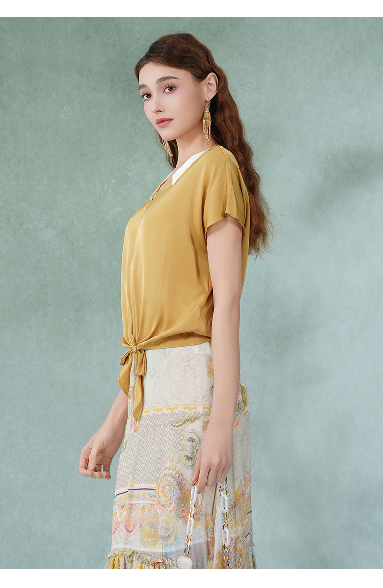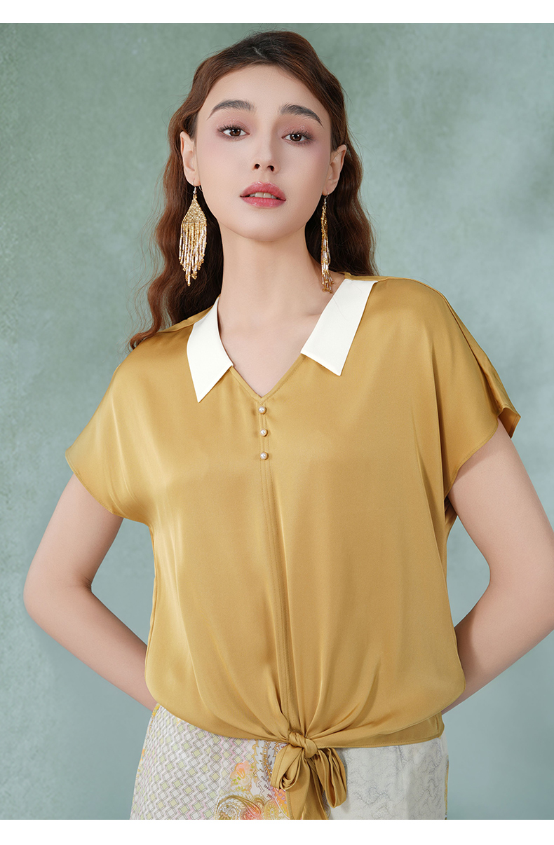 乔万尼真丝桑蚕丝衬衣v领撞色设计感小衫EI2C875