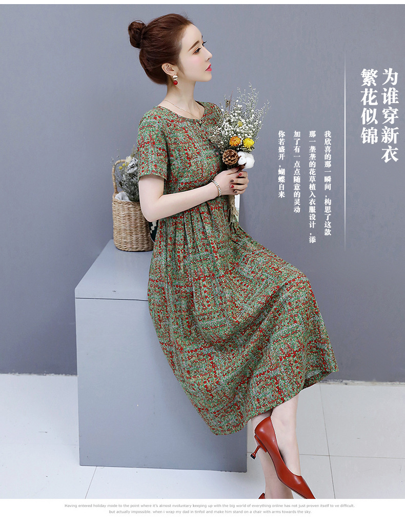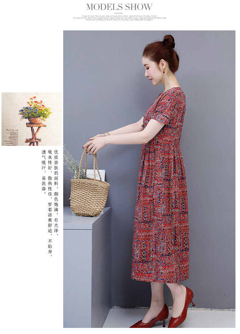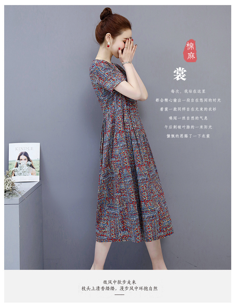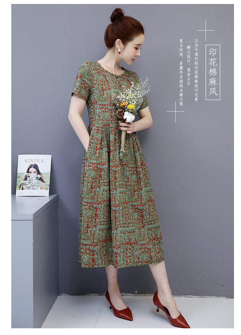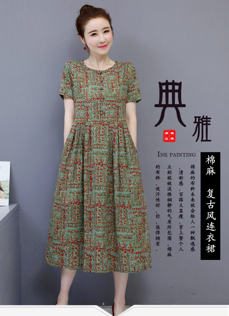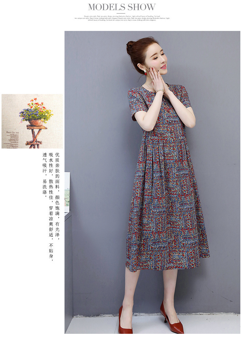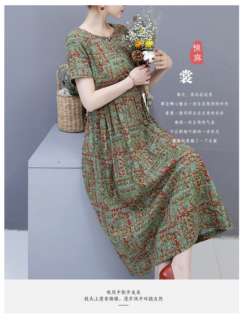 WZNH-NYMYZ621棉麻中长款气质亚麻碎花复古连衣裙
