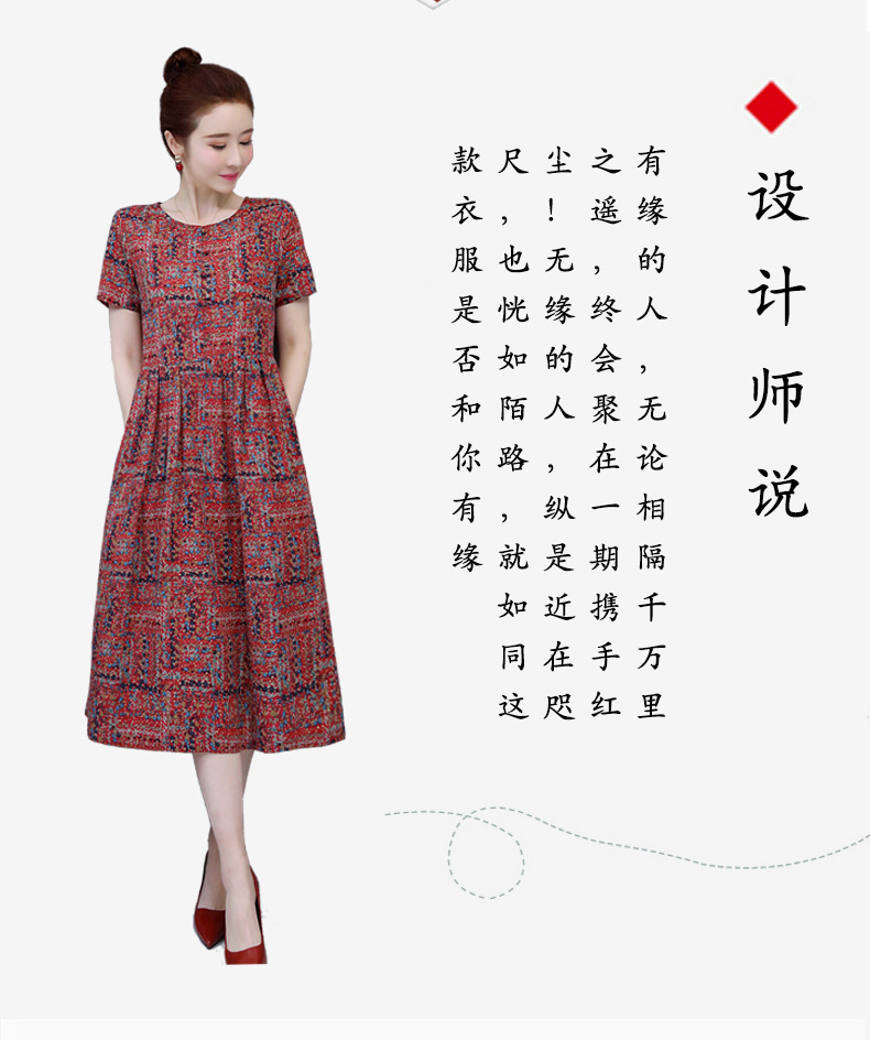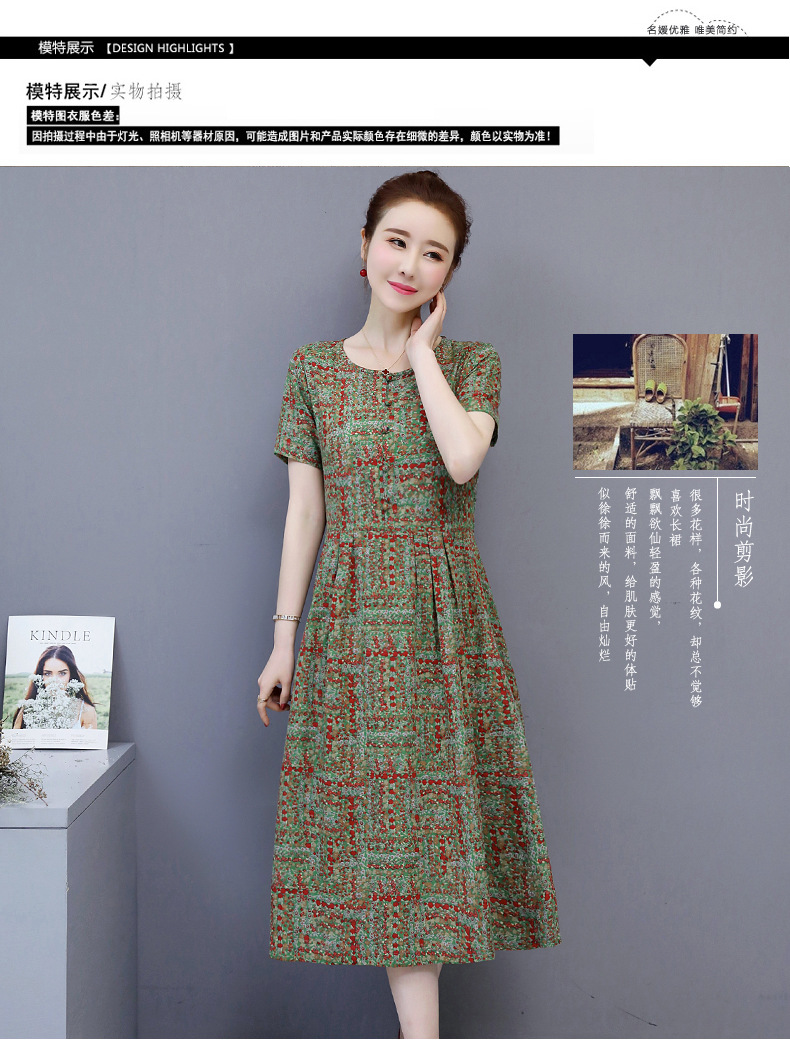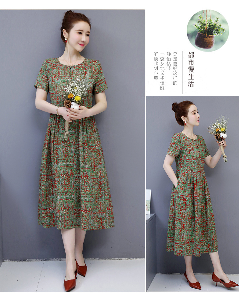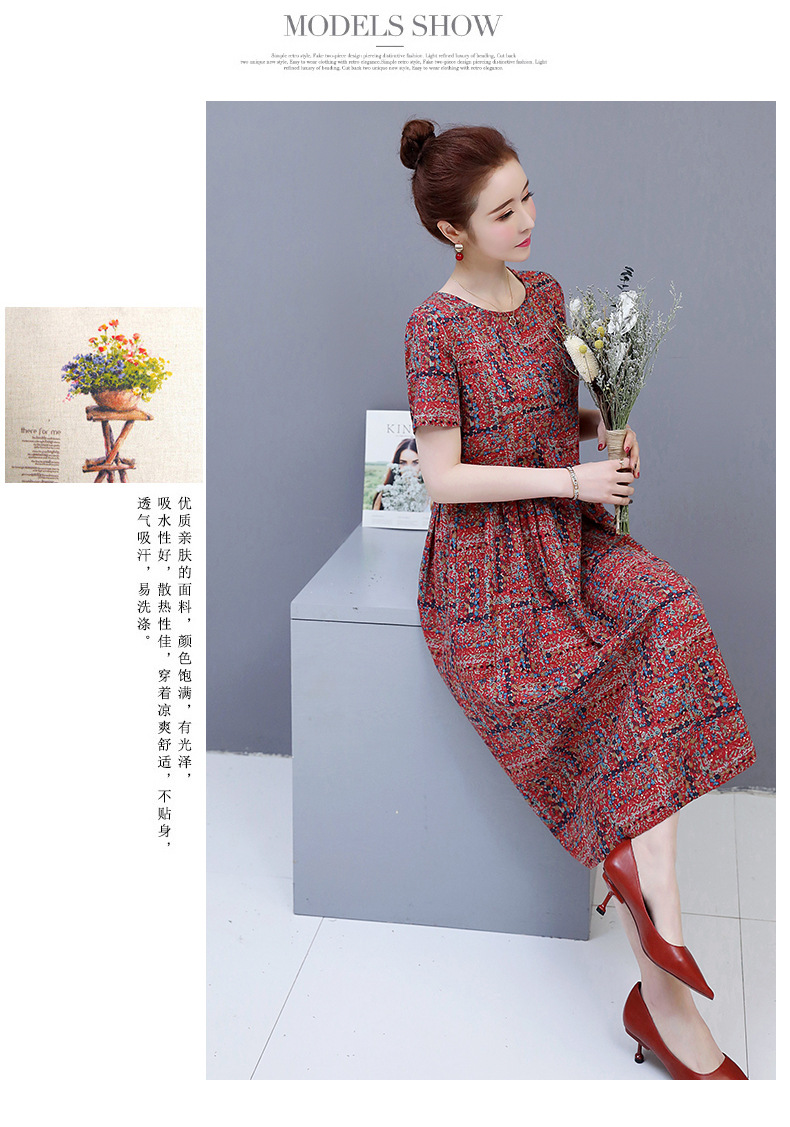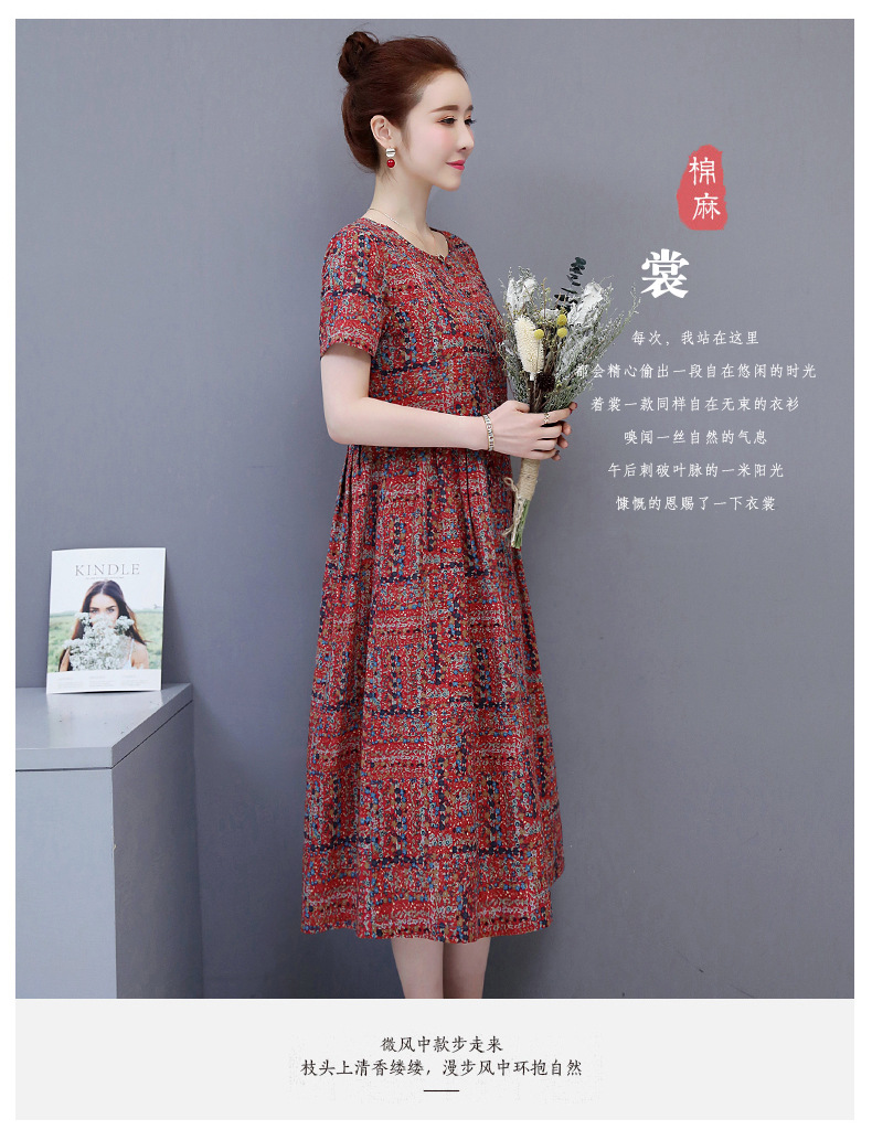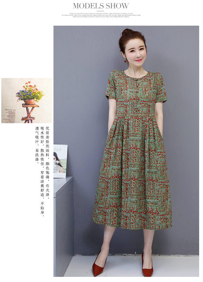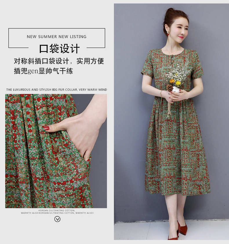 WZNH-NYMYZ621棉麻中长款气质亚麻碎花复古连衣裙