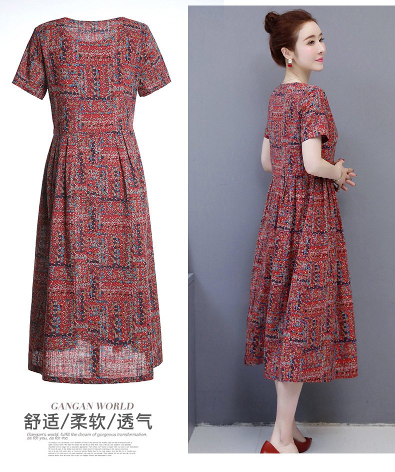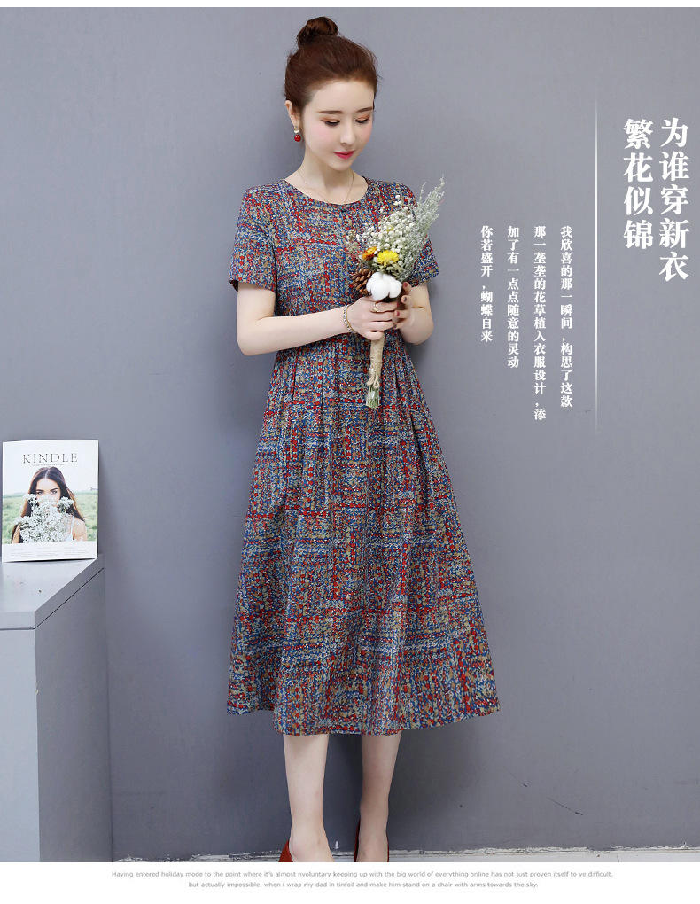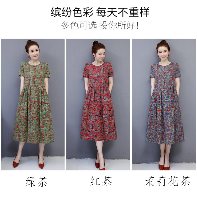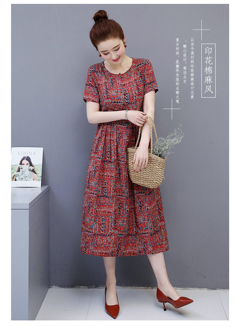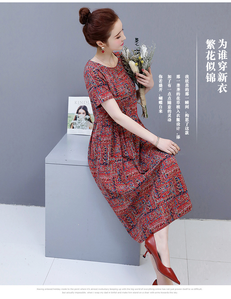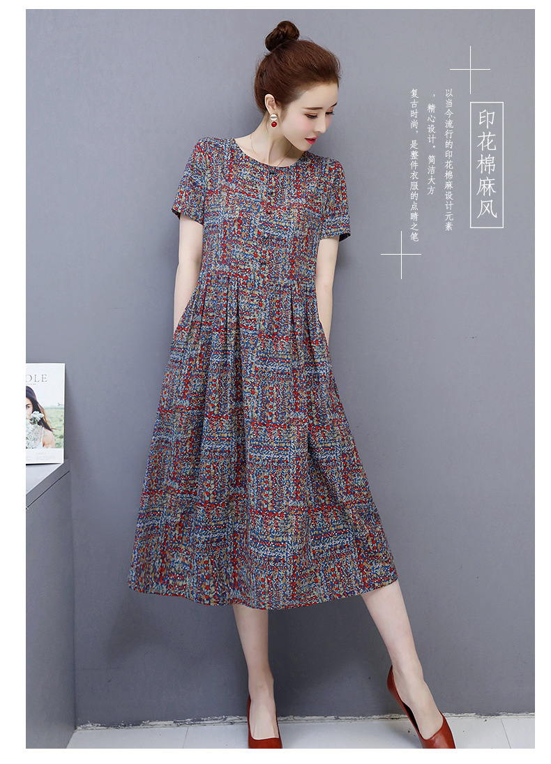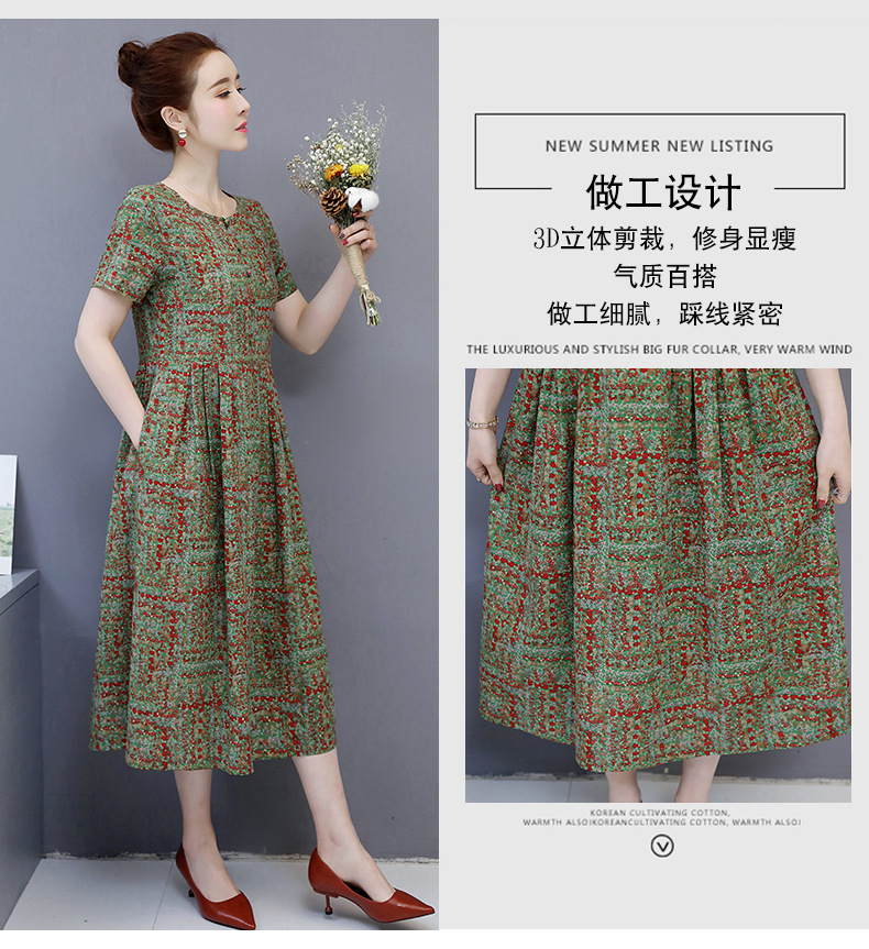 WZNH-NYMYZ621棉麻中长款气质亚麻碎花复古连衣裙