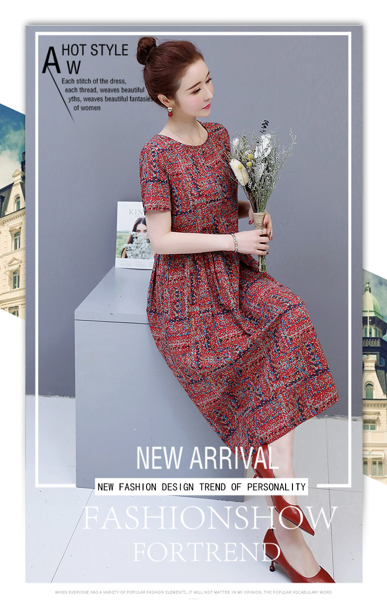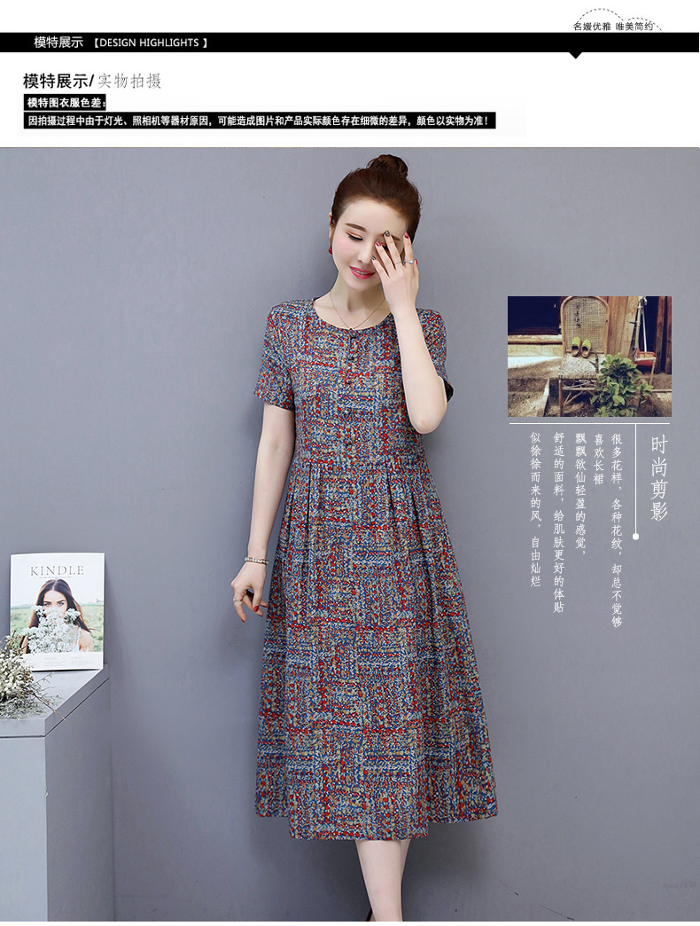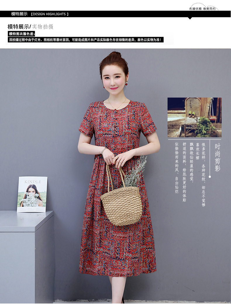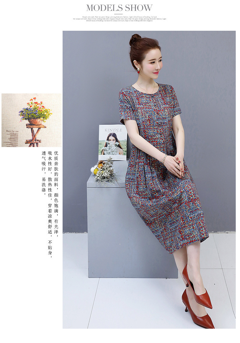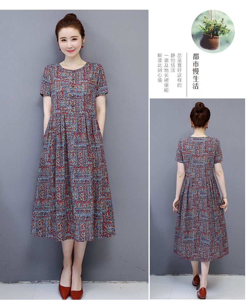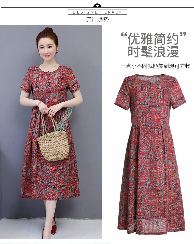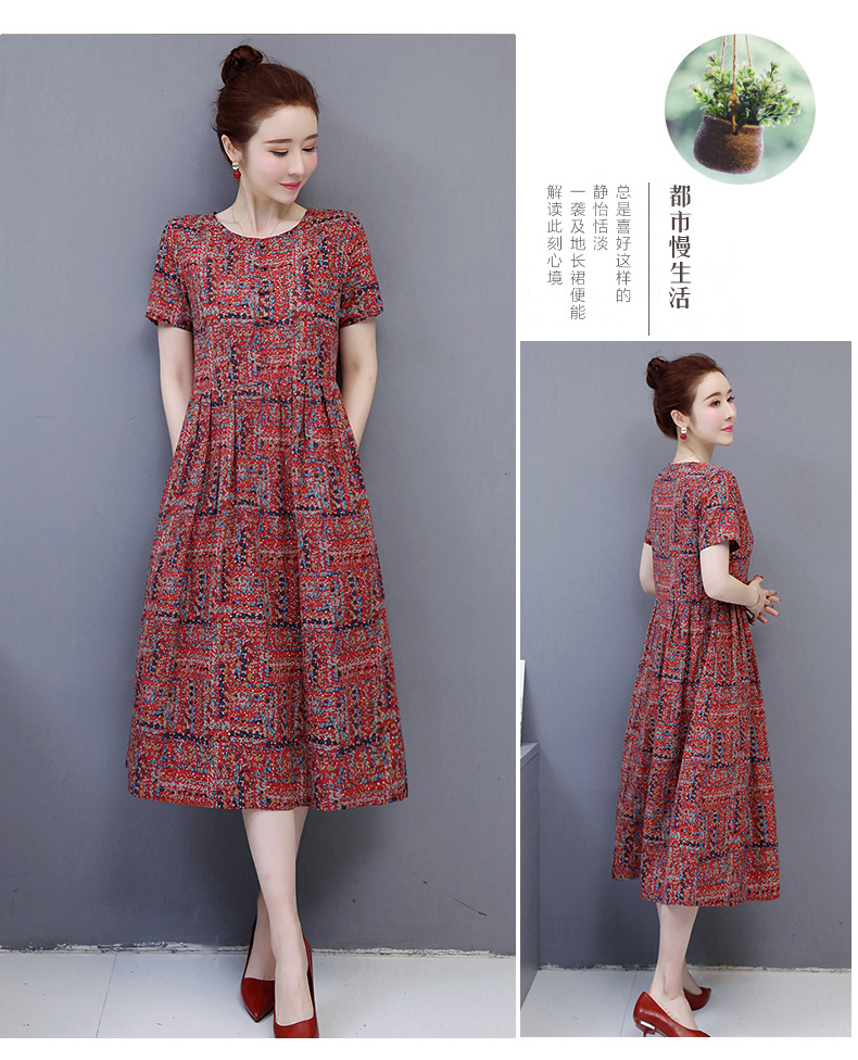 WZNH-NYMYZ621棉麻中长款气质亚麻碎花复古连衣裙
