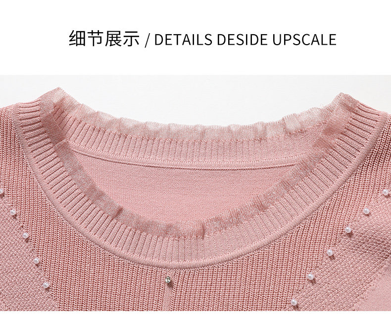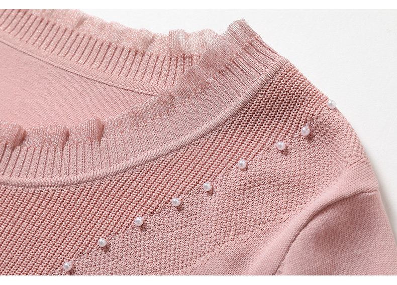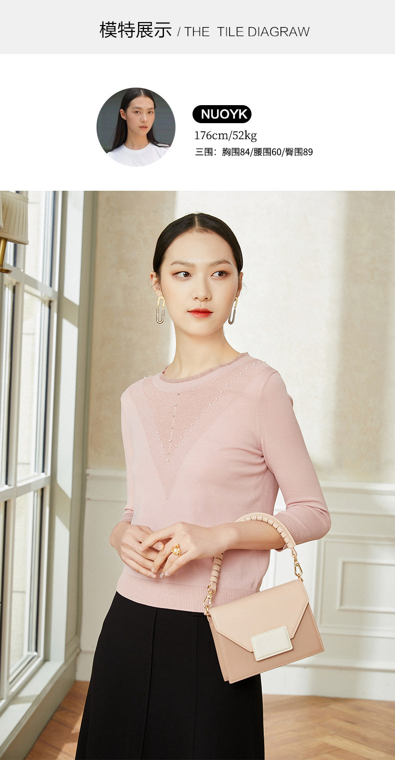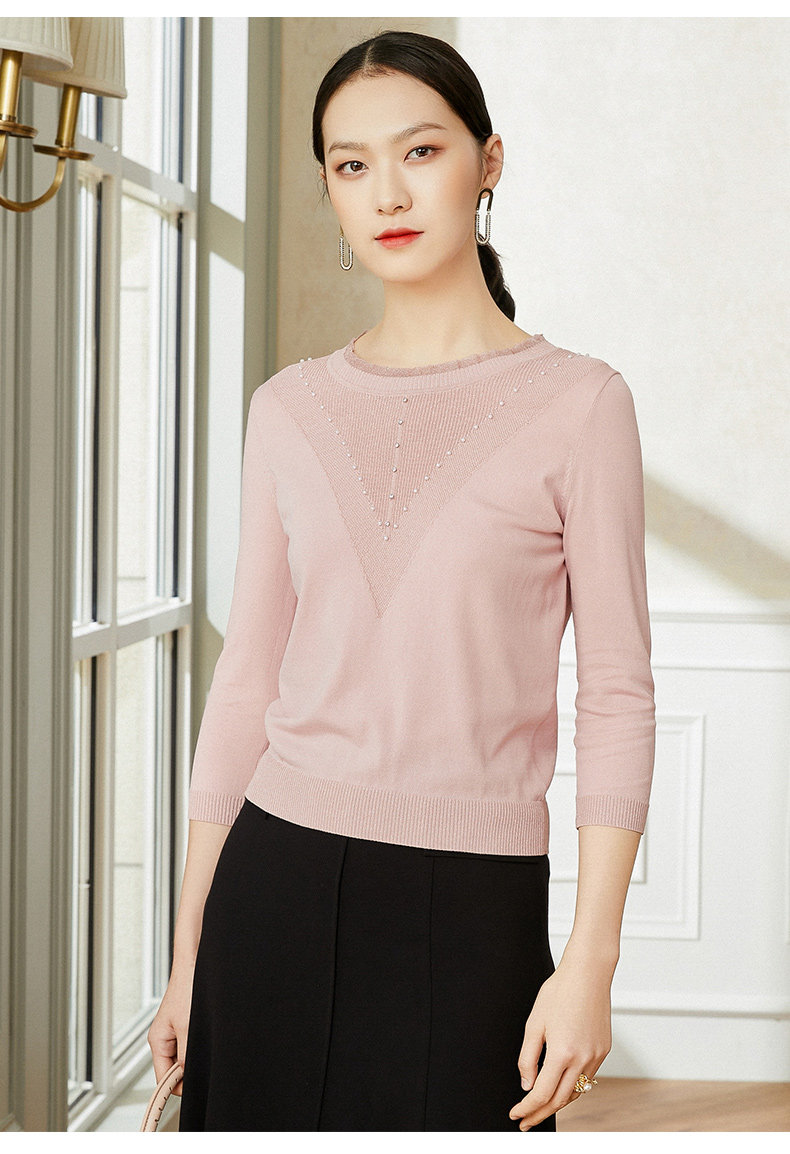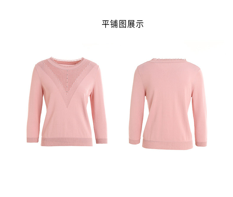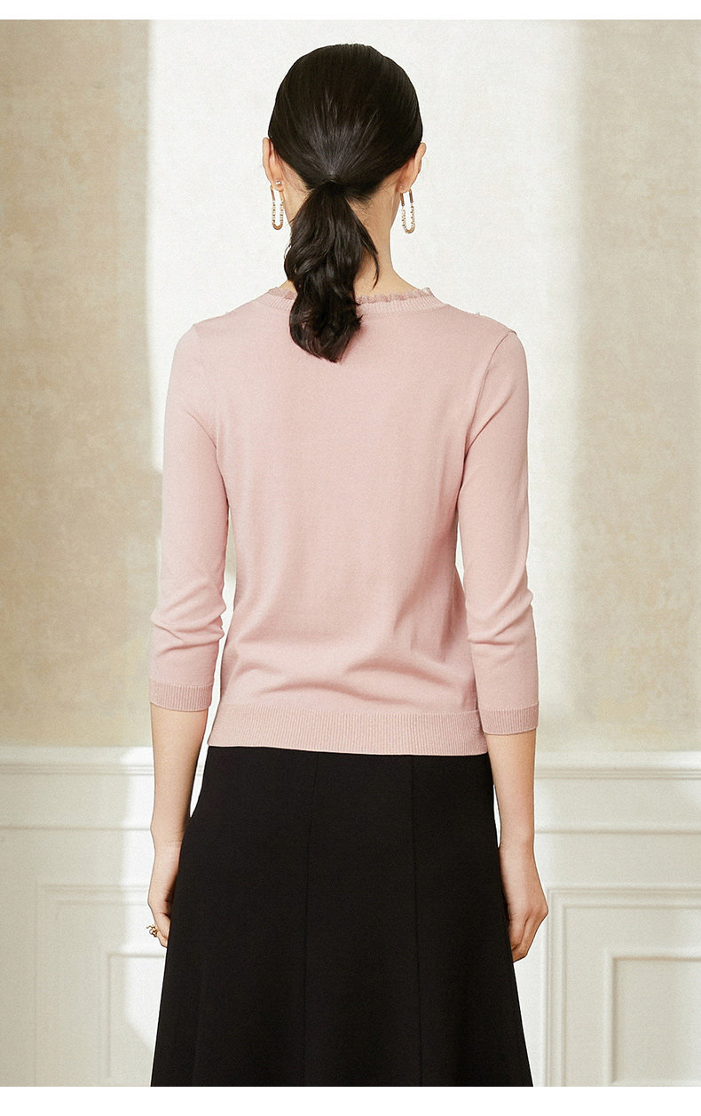 乔万尼冰丝针织衫女薄款小香风设计感圆领春款外套长袖粉色EI1M951