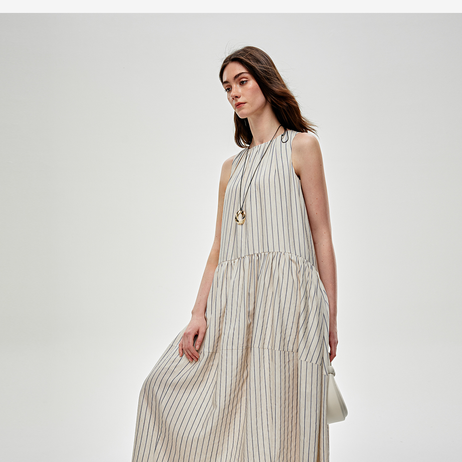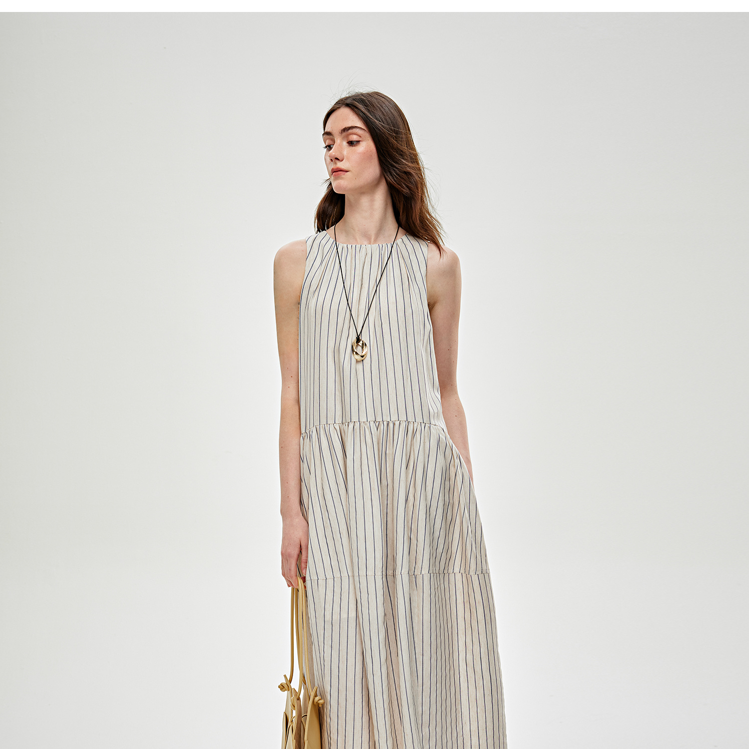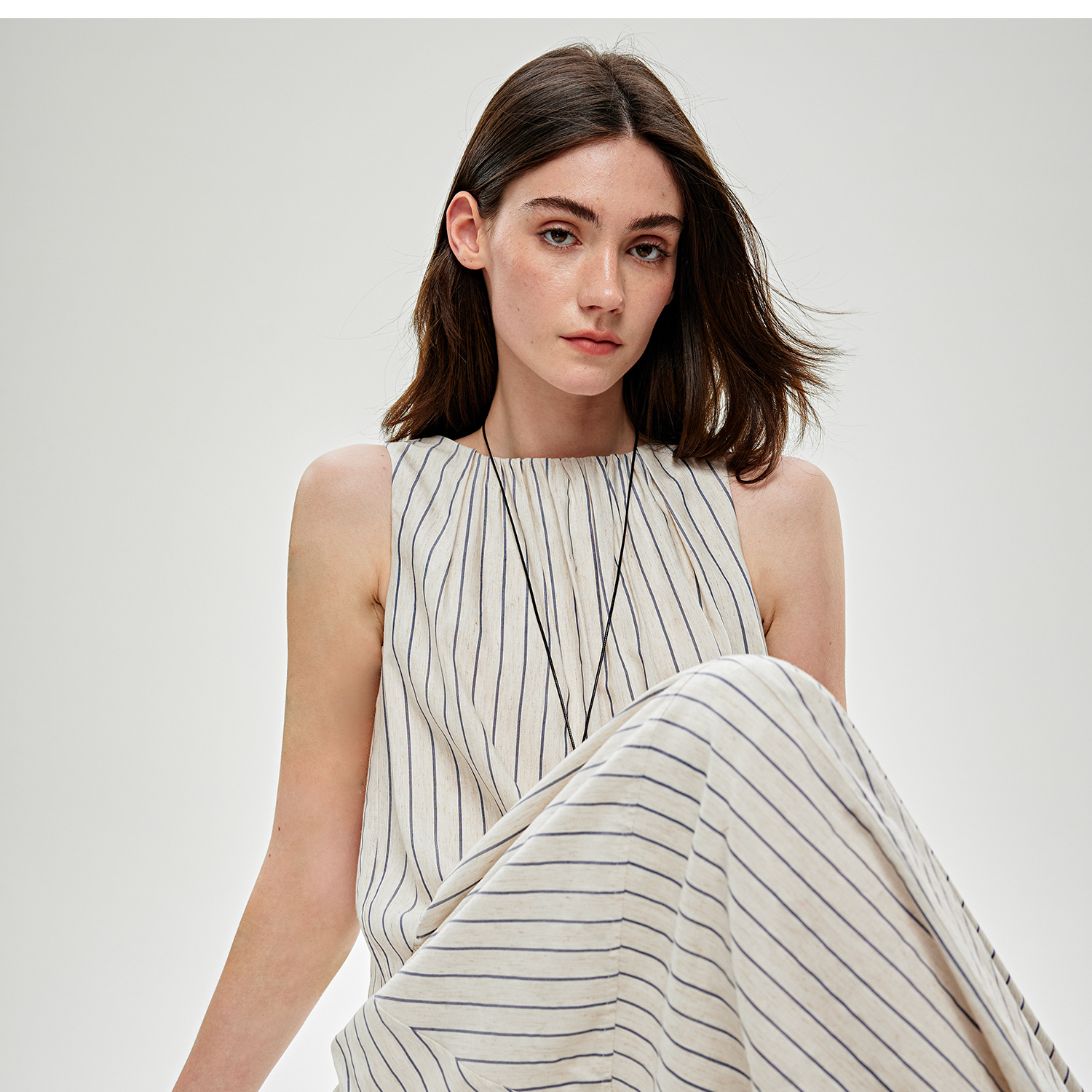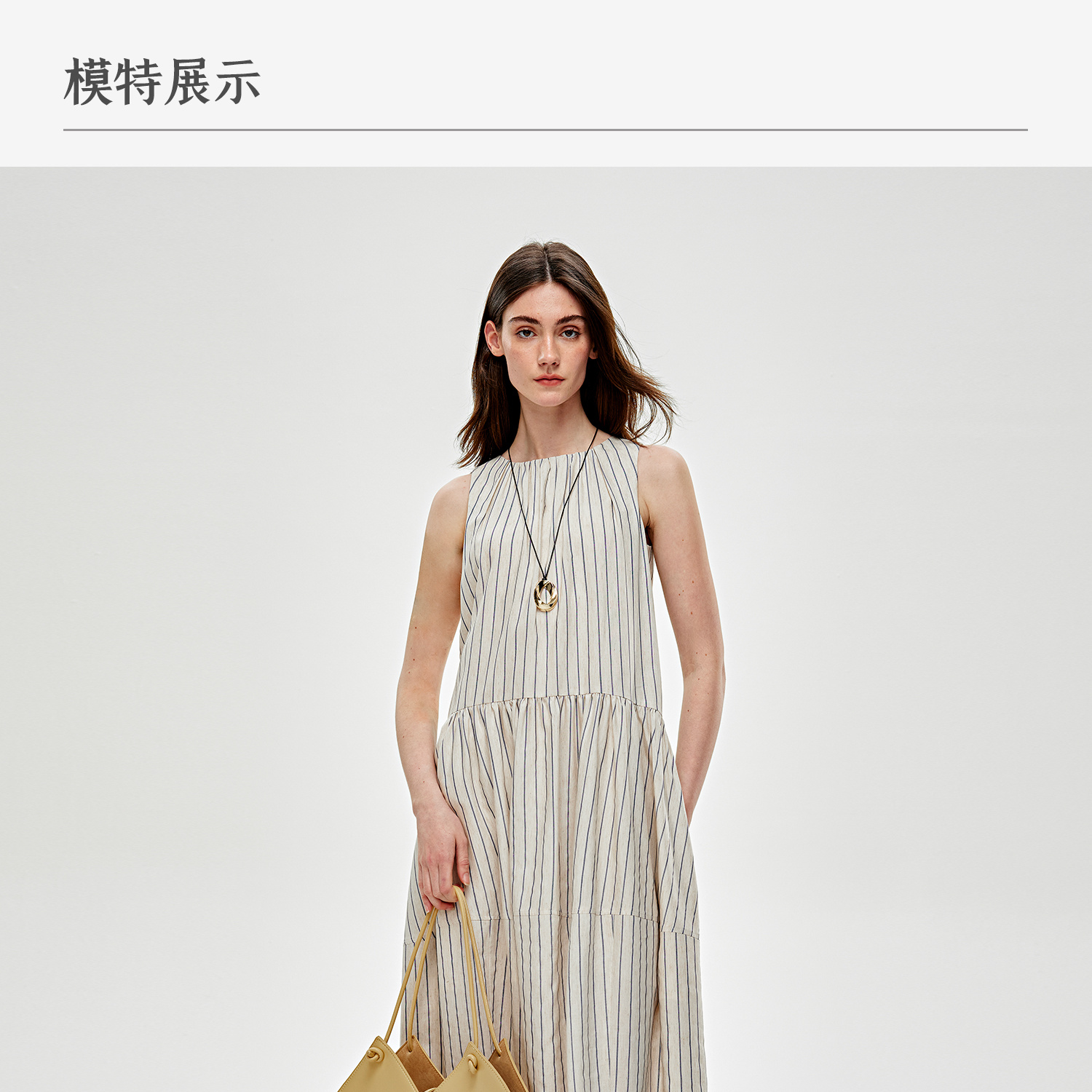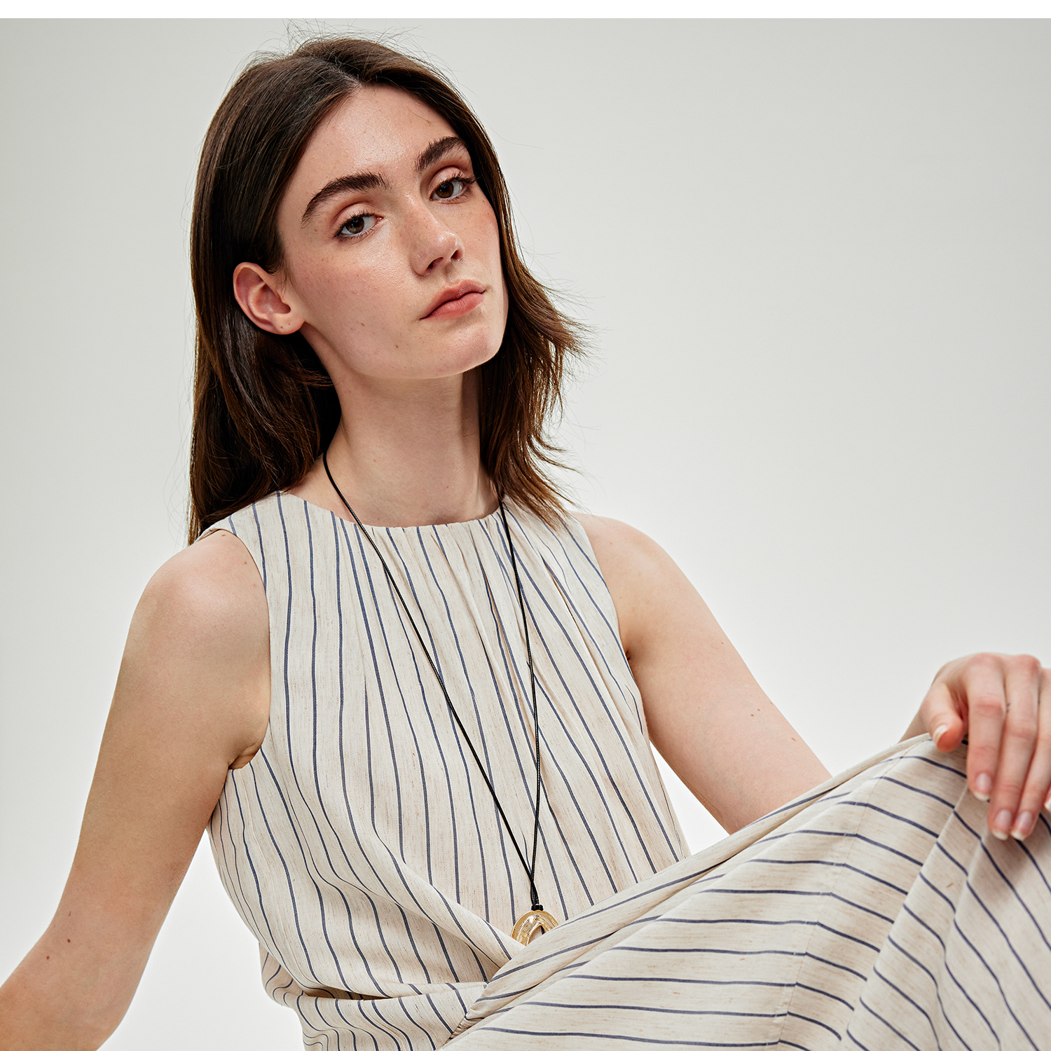C+IMPRESS/西嘉醋酸亚麻 松弛感老钱风无袖连衣裙女条纹廓形a字裙LYQ2502008